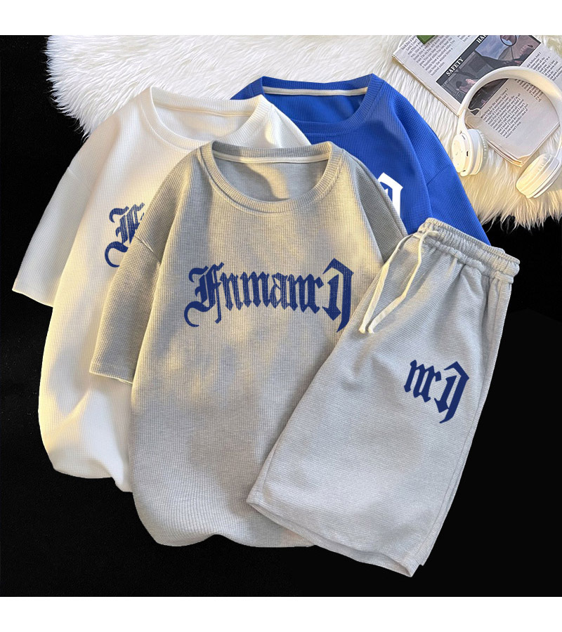 와플 캐주얼 세트 남성 여름 아이스 실크 반팔 티셔츠 남성 의류 세트 잘 생긴 패션 브랜드 스포츠 의류스토어 가기
