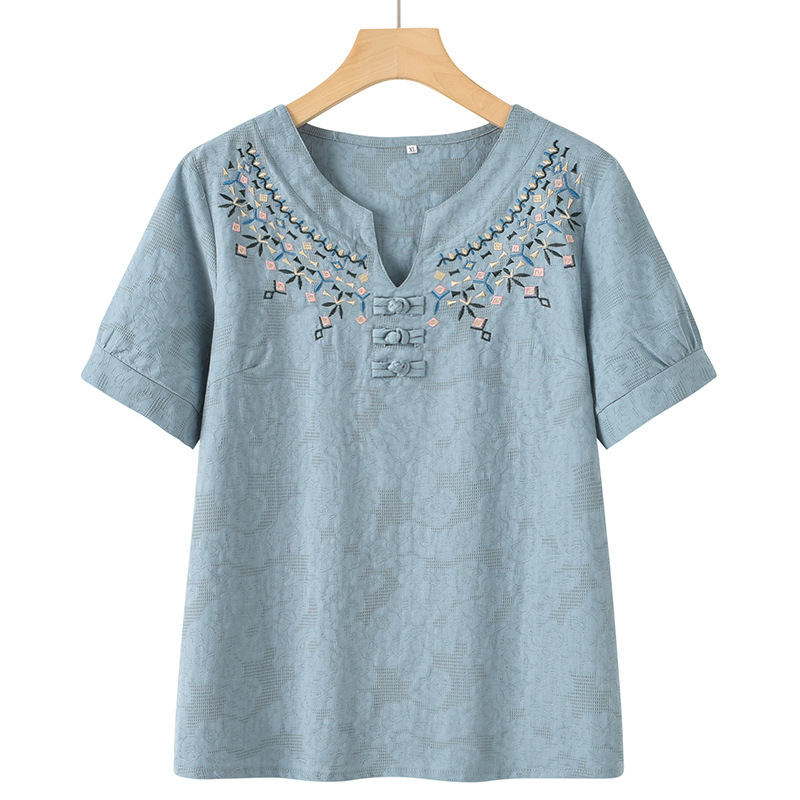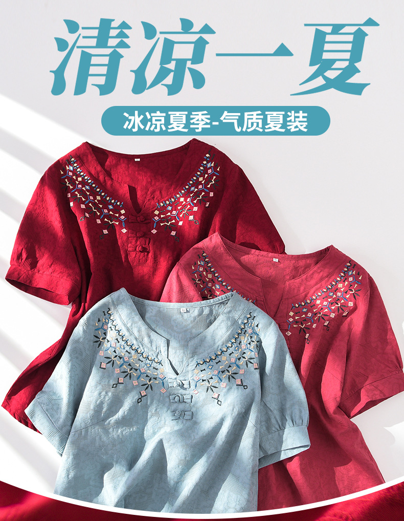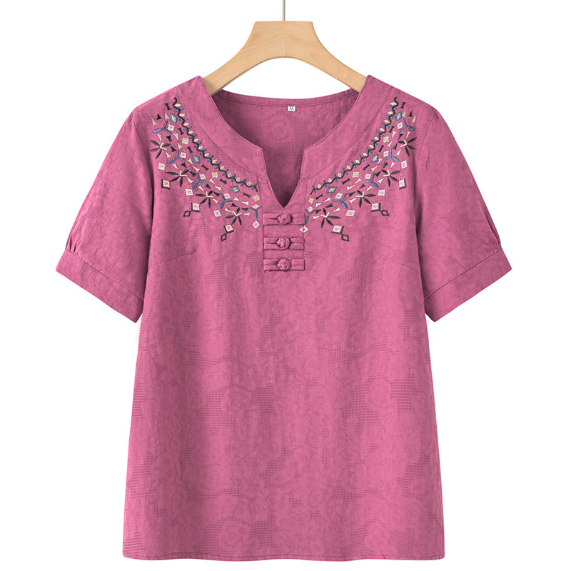 어머니 옷 세트 여름 면 린넨 반팔 티셔츠 느슨한 중년 및 노인 여성 노인 할머니 여름 옷스토어 가기