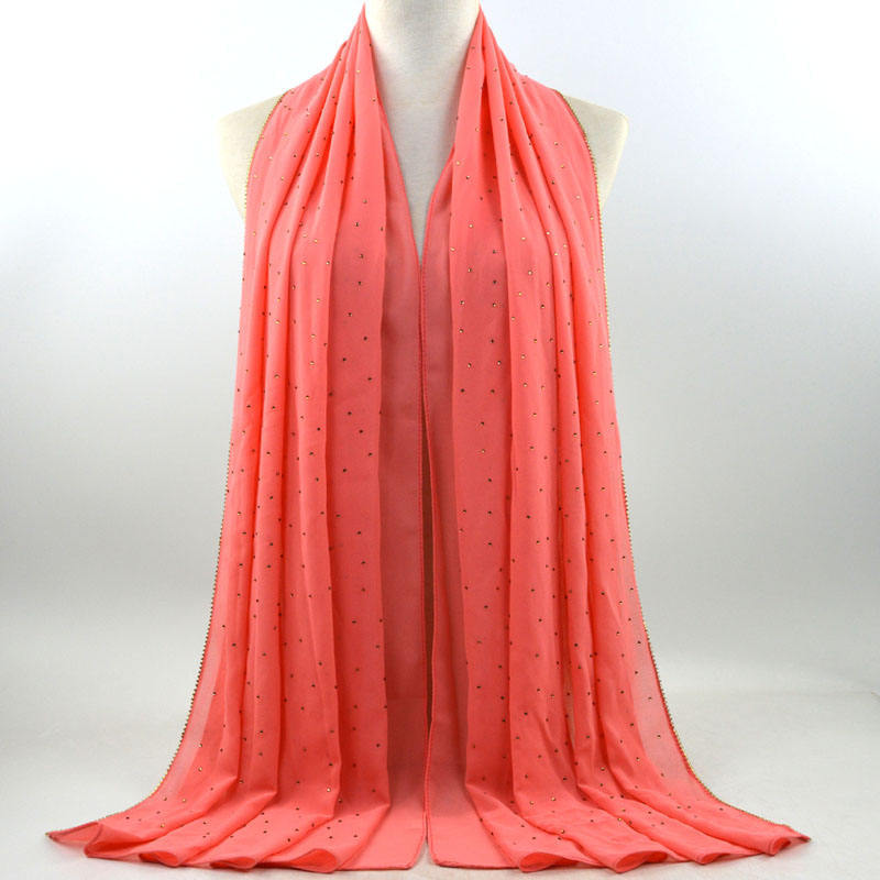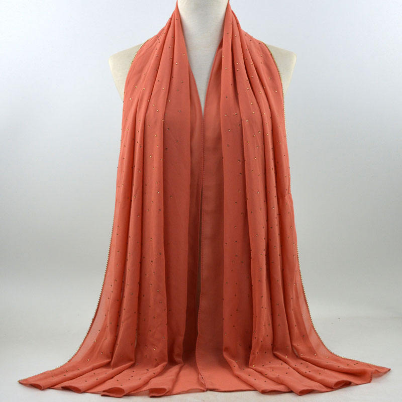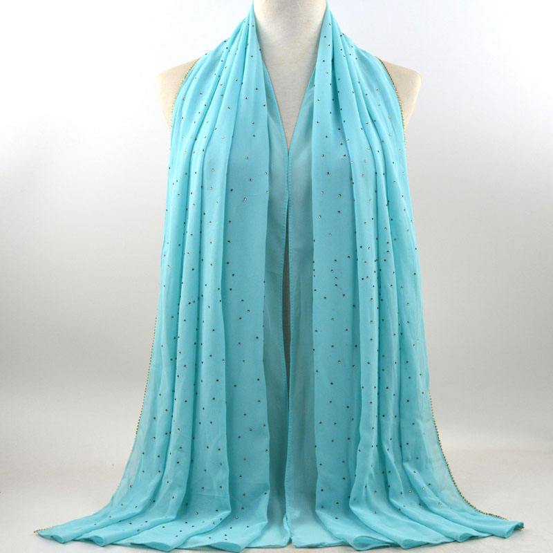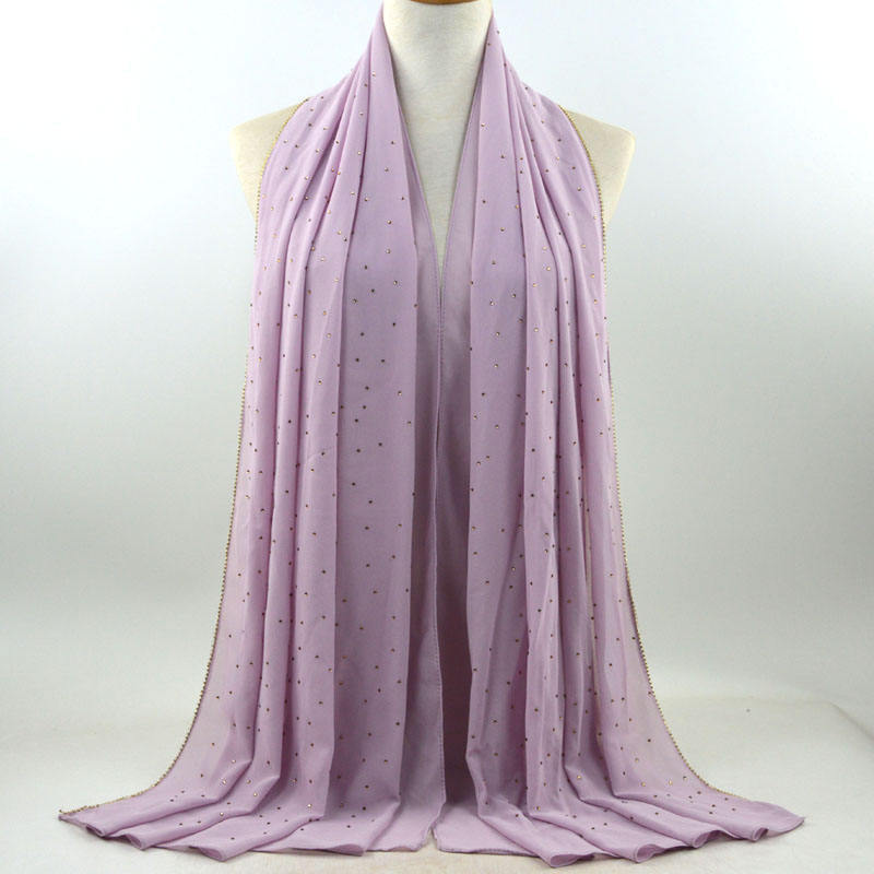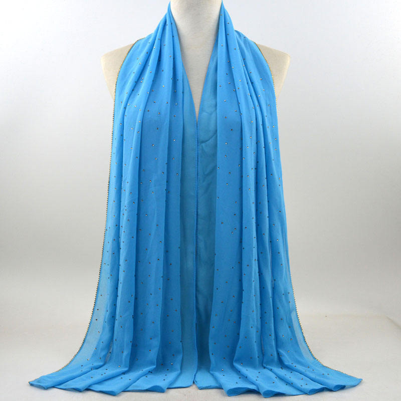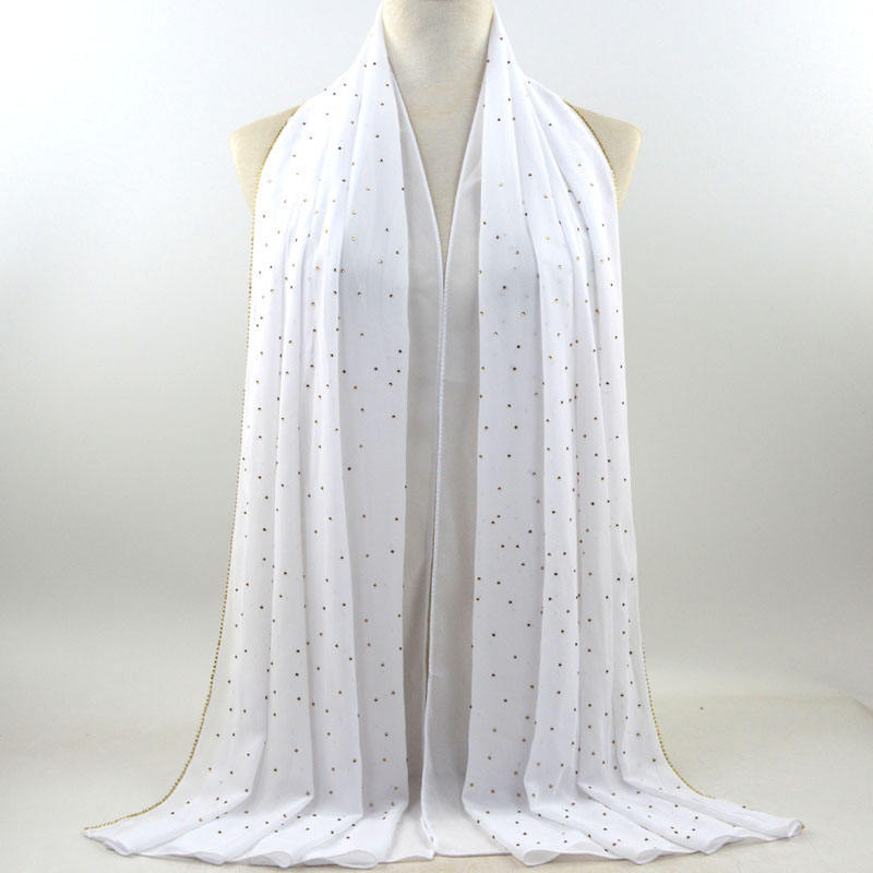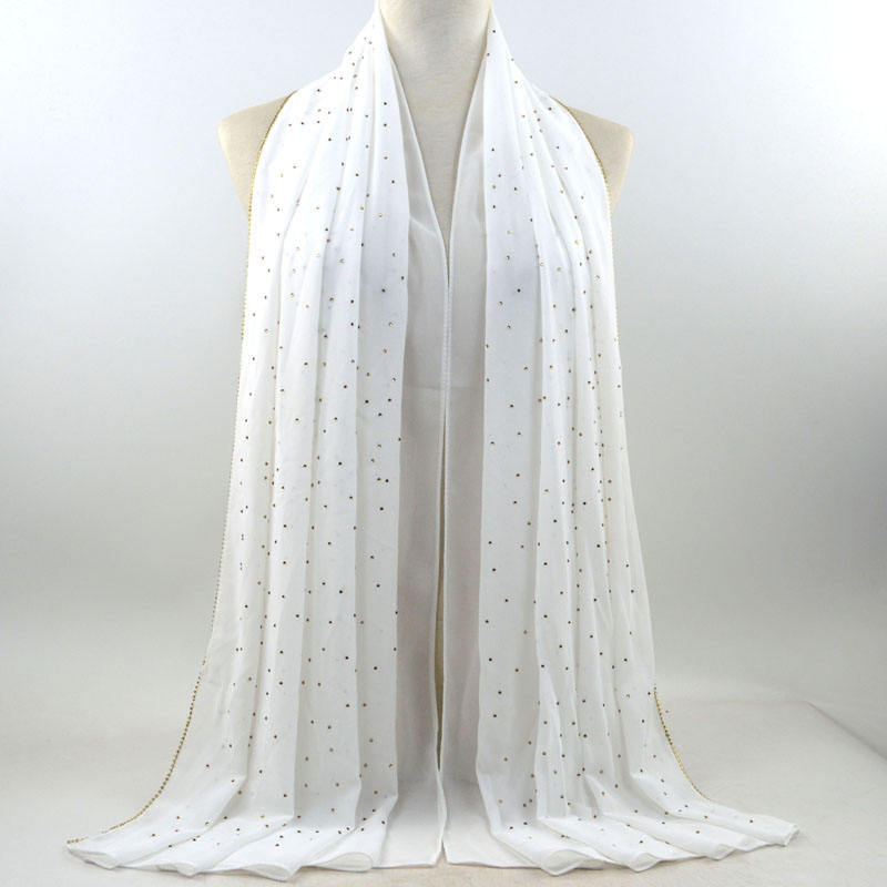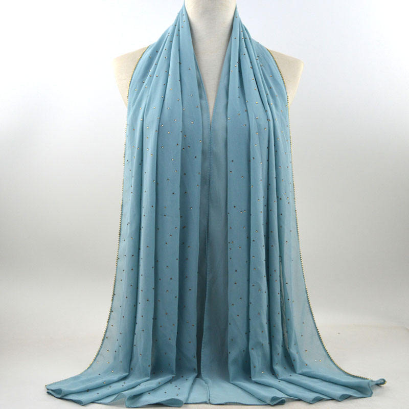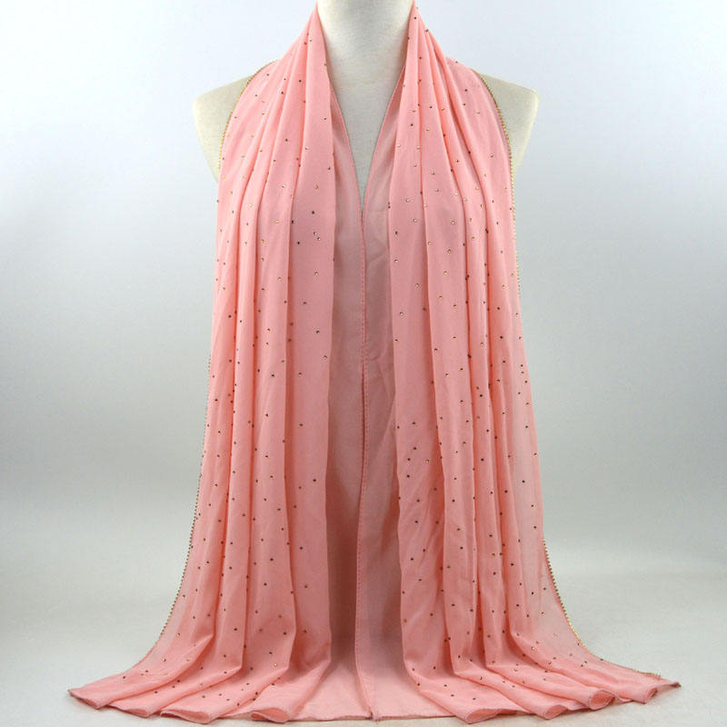 새로운 크로스 보더 진주 쉬폰 모조 다이아몬드 스카프 목도리 봄과 여름 긴 여성 히잡 스카프