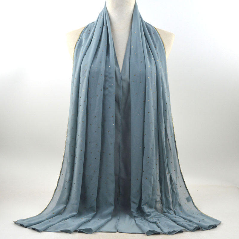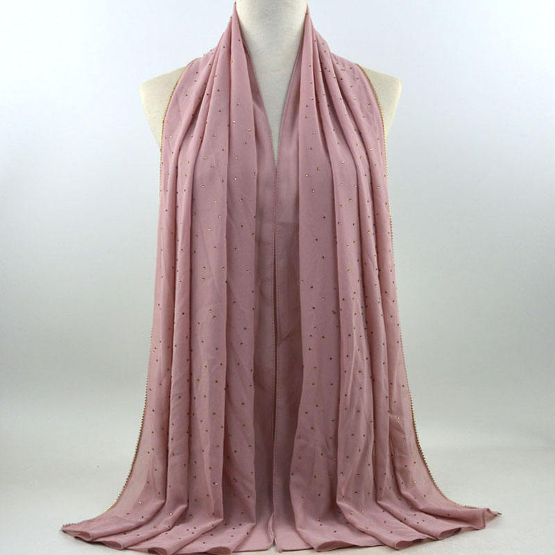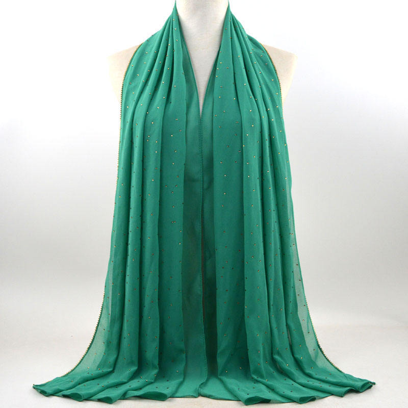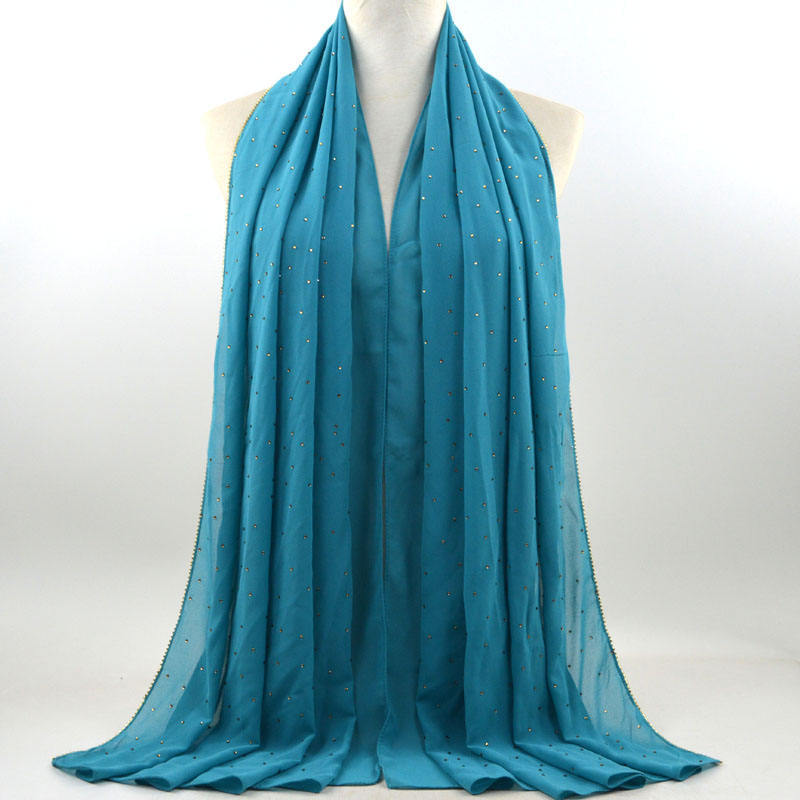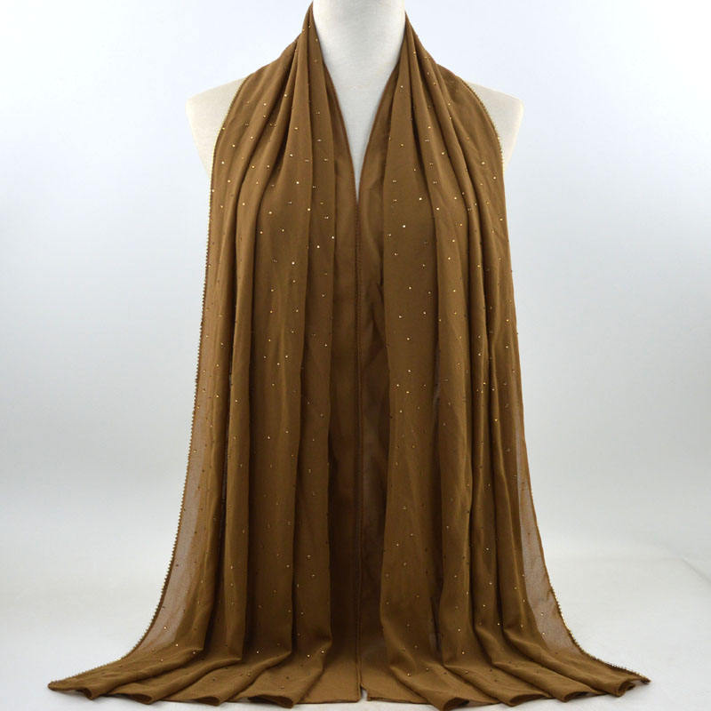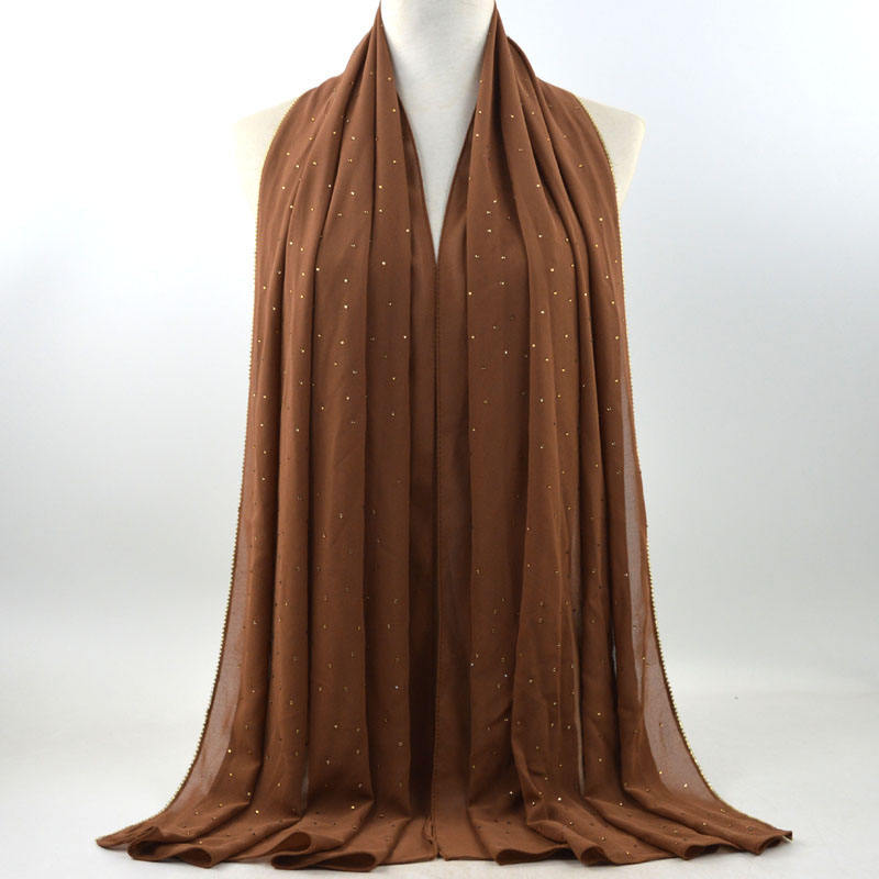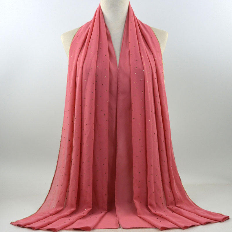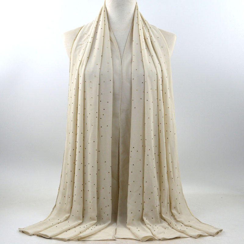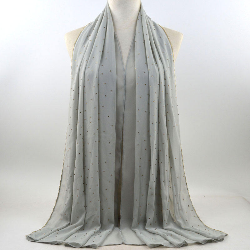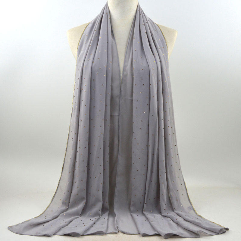 새로운 크로스 보더 진주 쉬폰 모조 다이아몬드 스카프 목도리 봄과 여름 긴 여성 히잡 스카프
