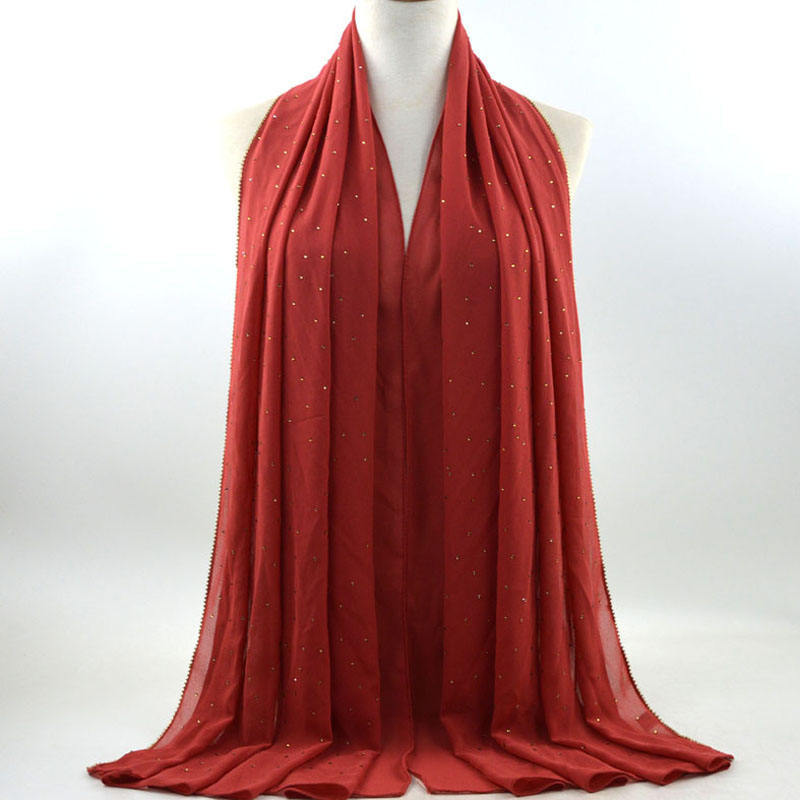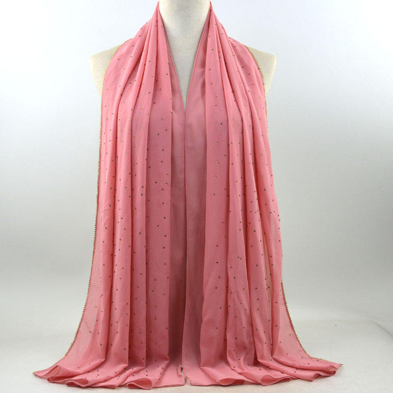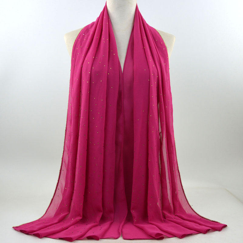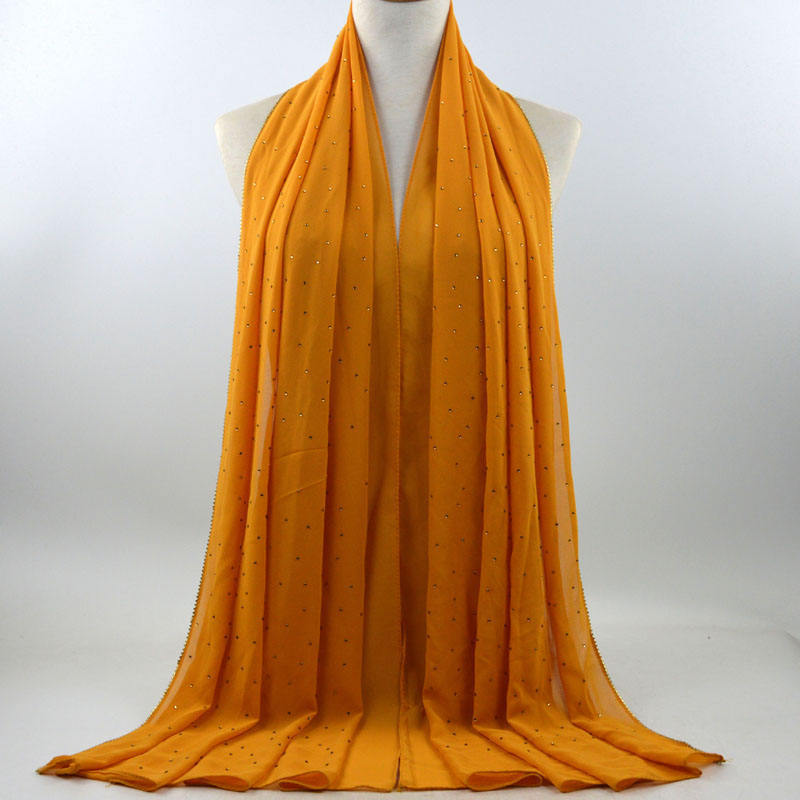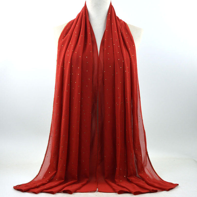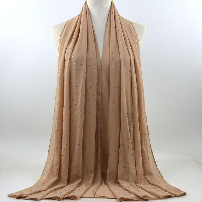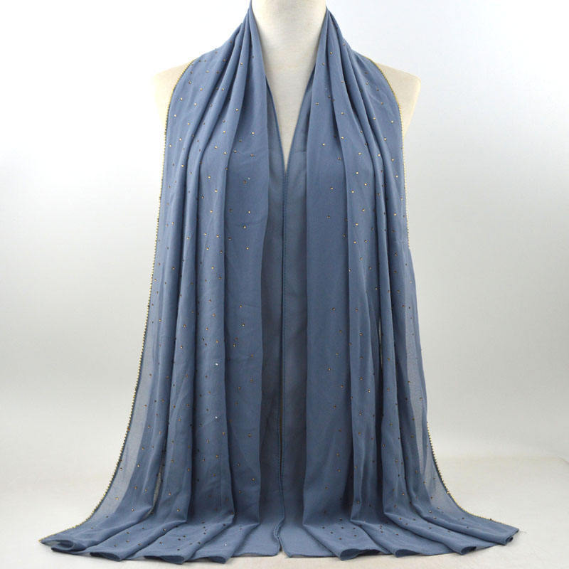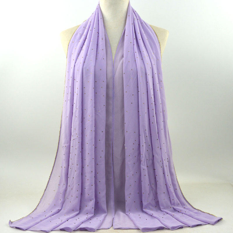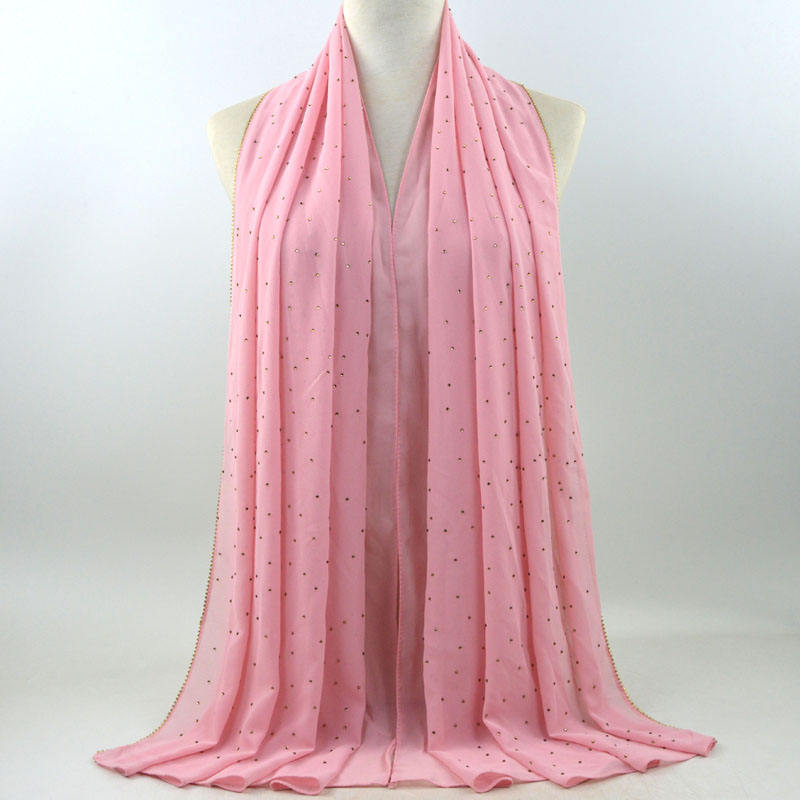 새로운 크로스 보더 진주 쉬폰 모조 다이아몬드 스카프 목도리 봄과 여름 긴 여성 히잡 스카프