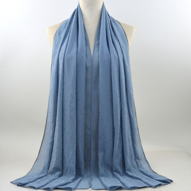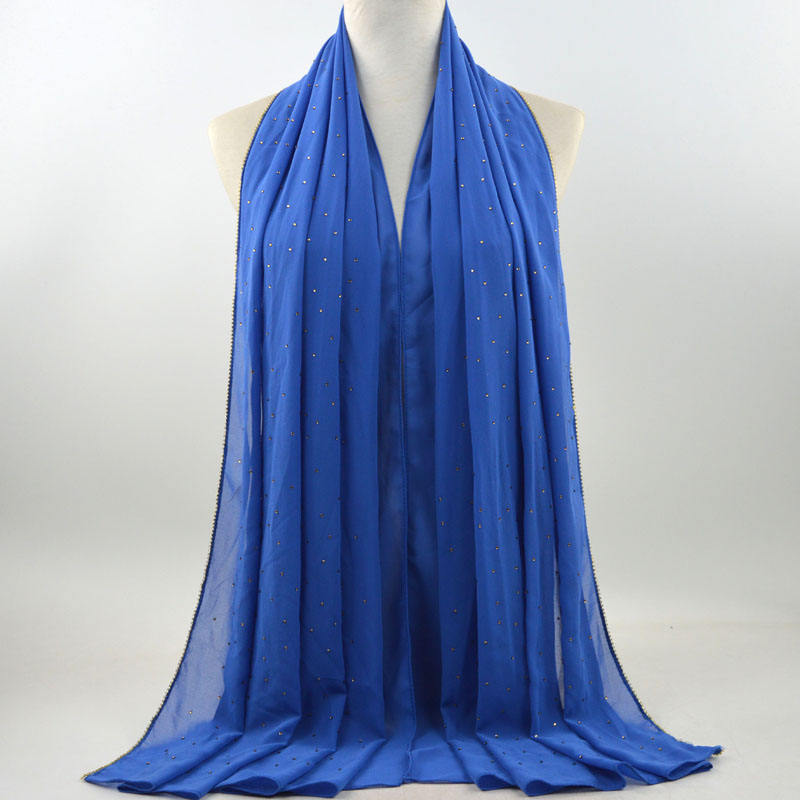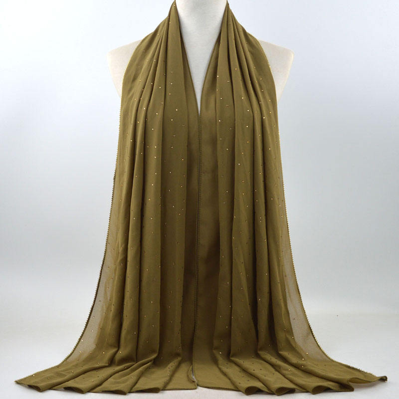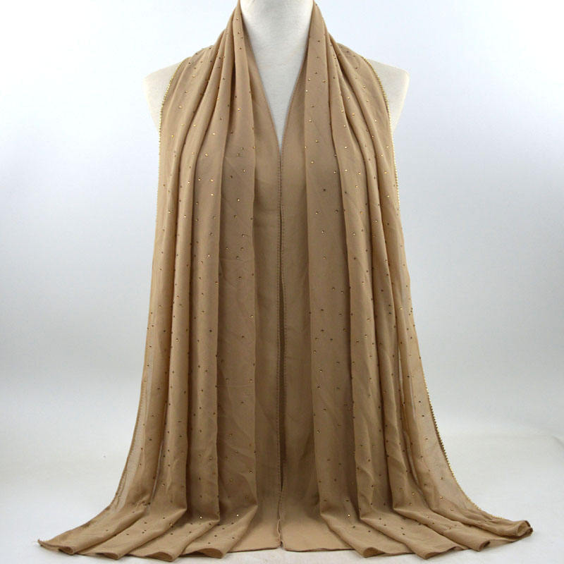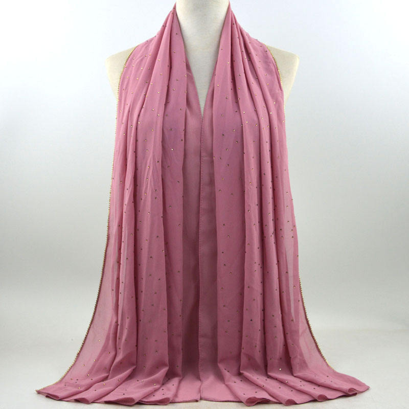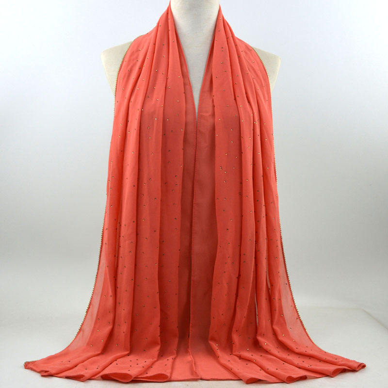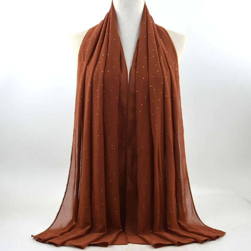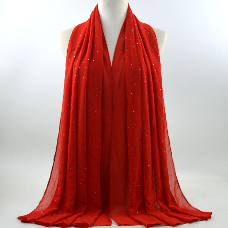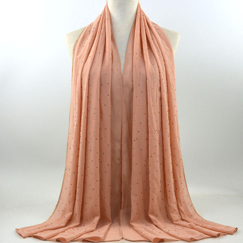 새로운 크로스 보더 진주 쉬폰 모조 다이아몬드 스카프 목도리 봄과 여름 긴 여성 히잡 스카프