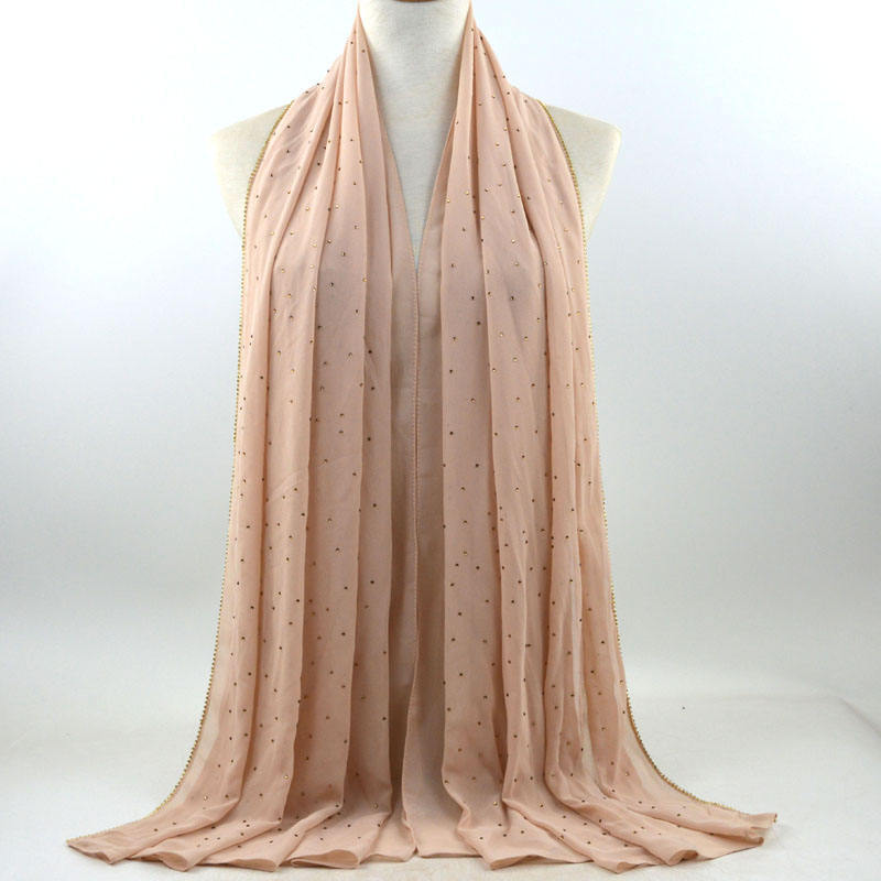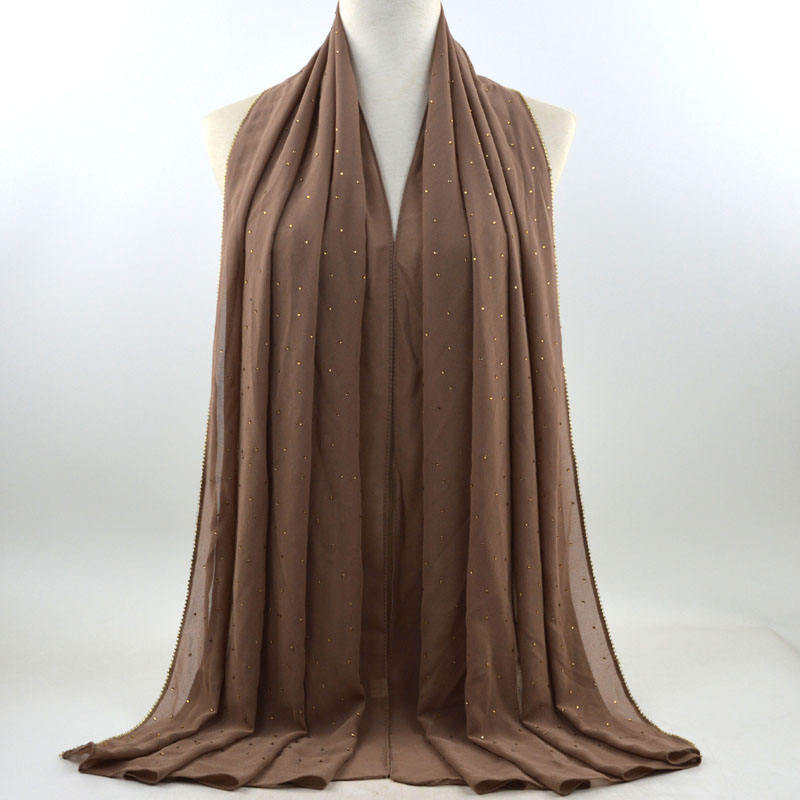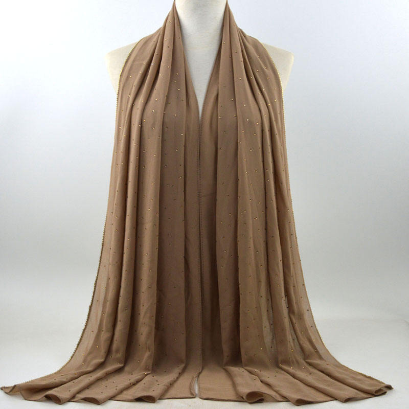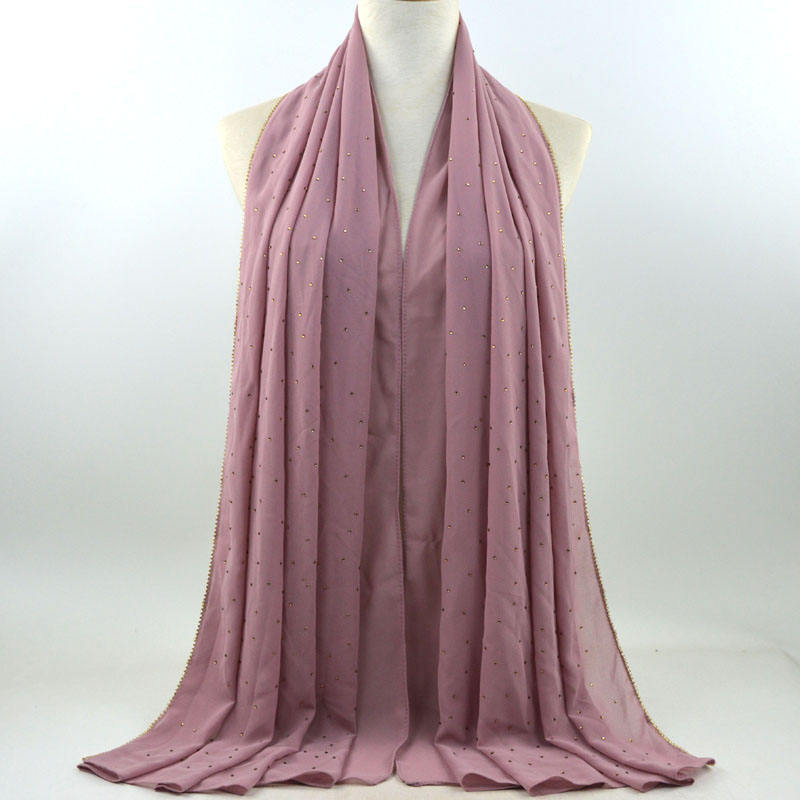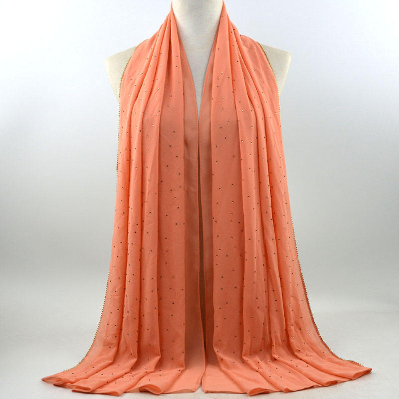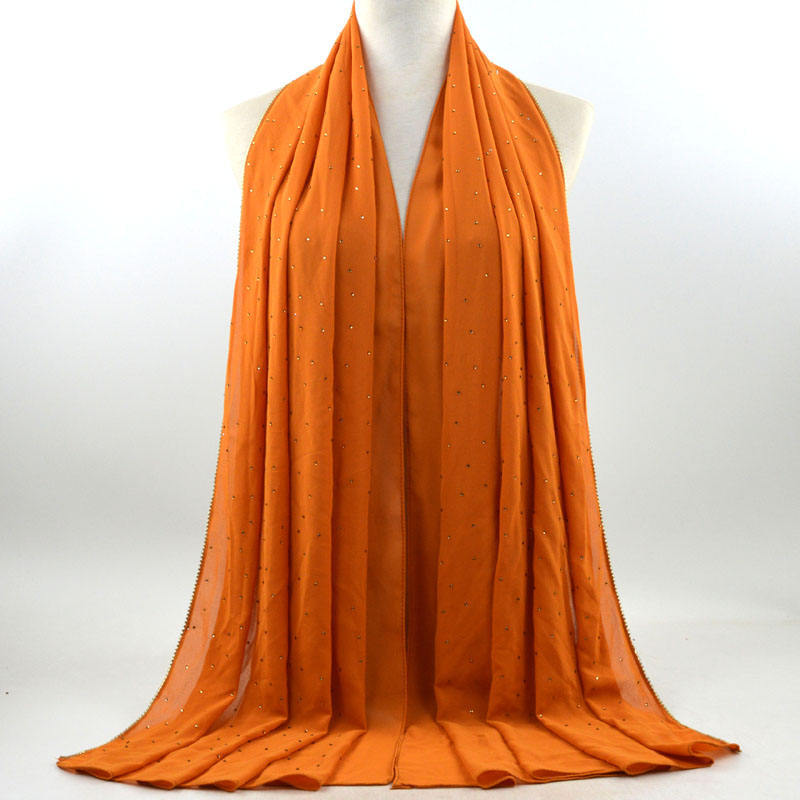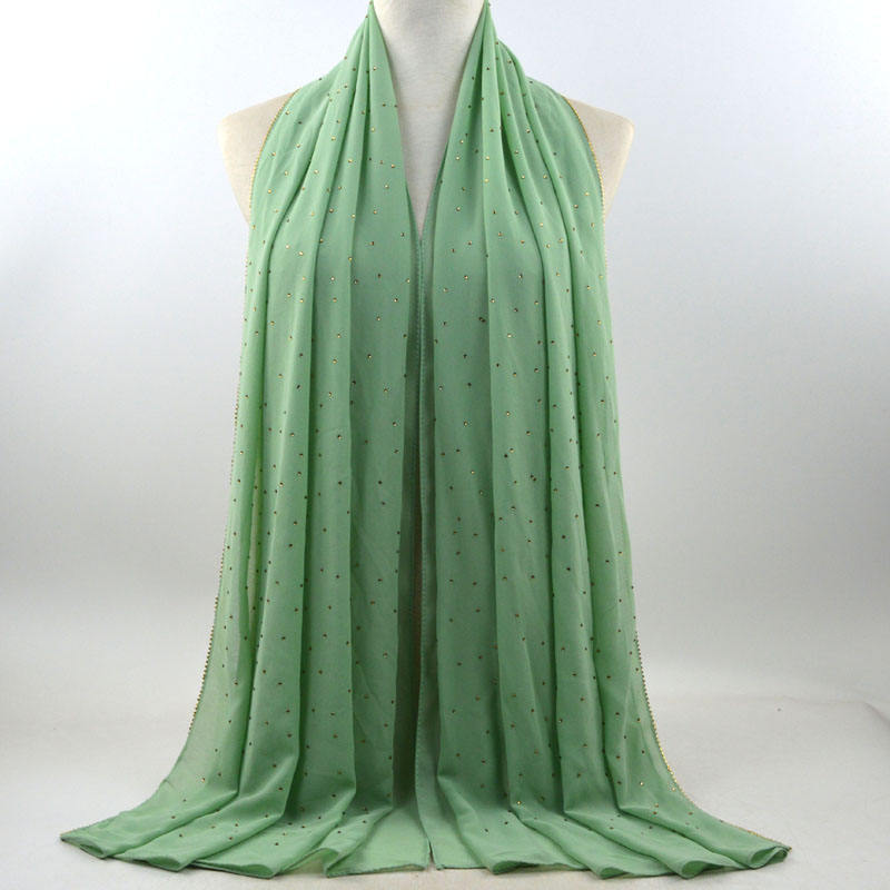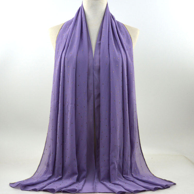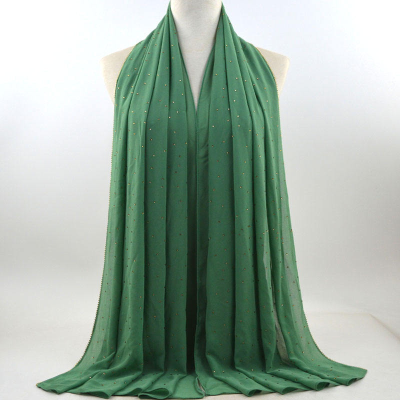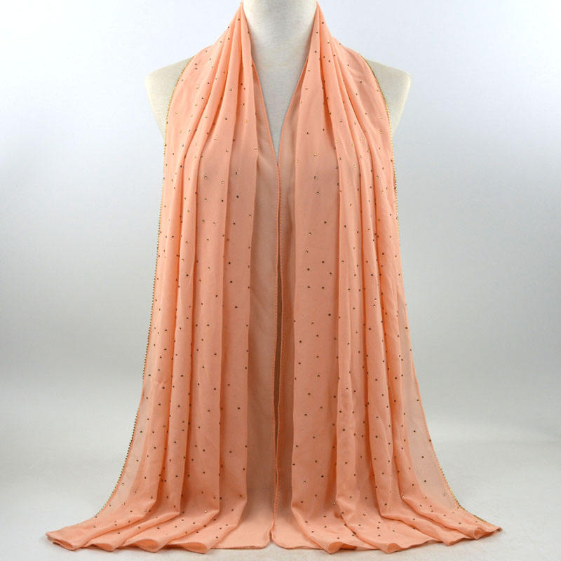 새로운 크로스 보더 진주 쉬폰 모조 다이아몬드 스카프 목도리 봄과 여름 긴 여성 히잡 스카프