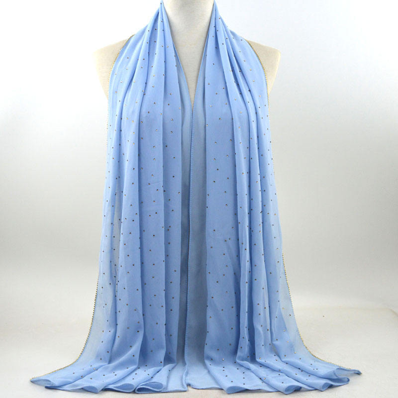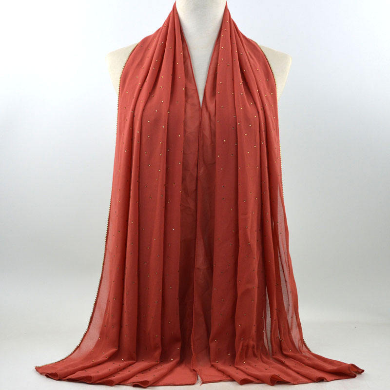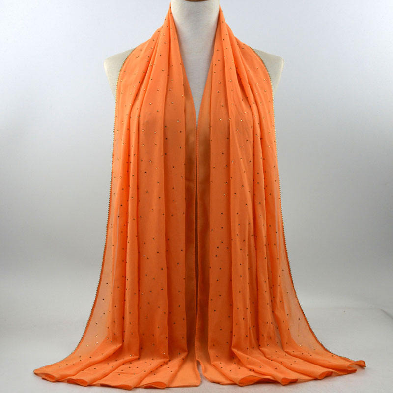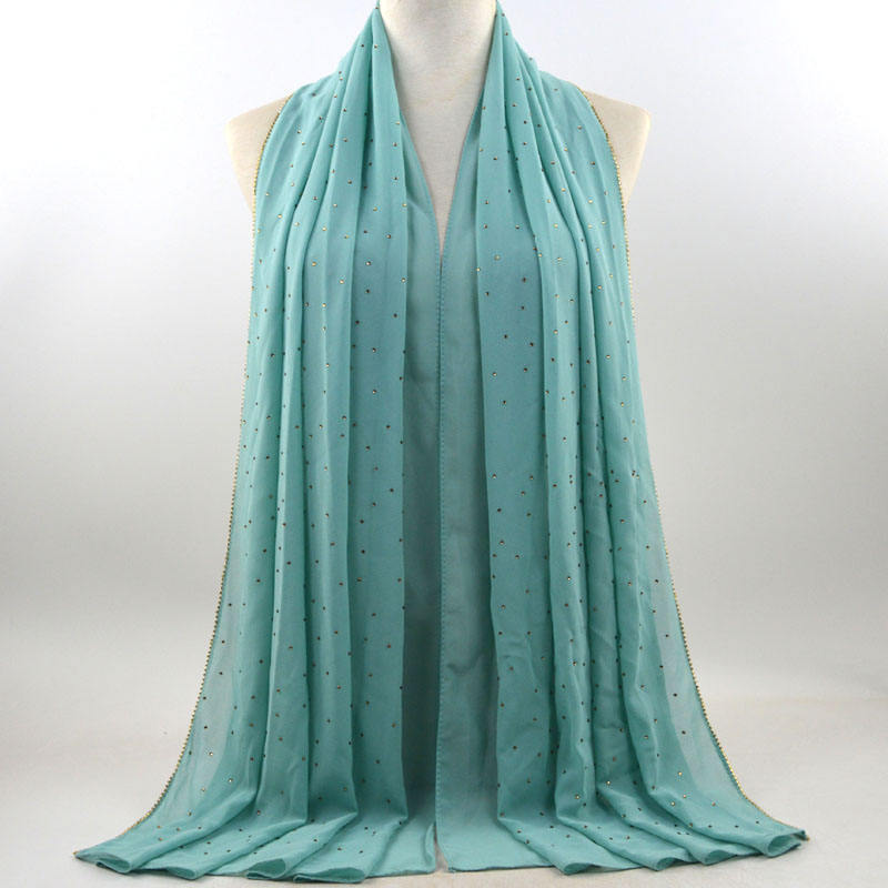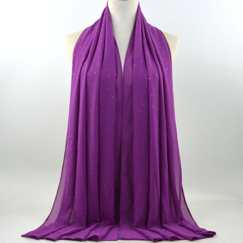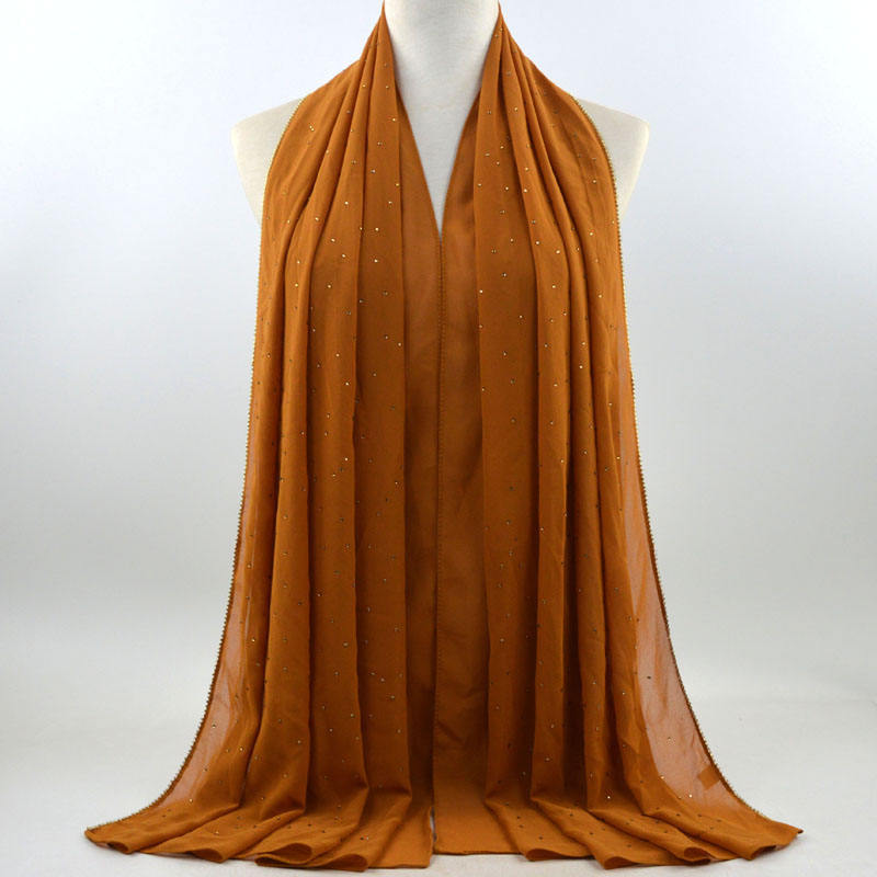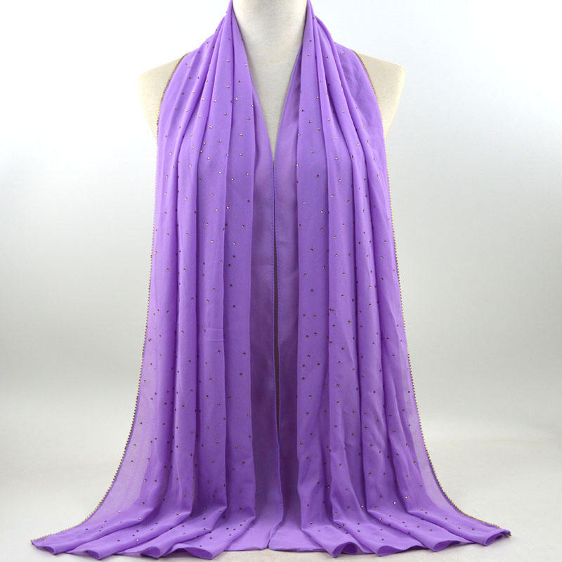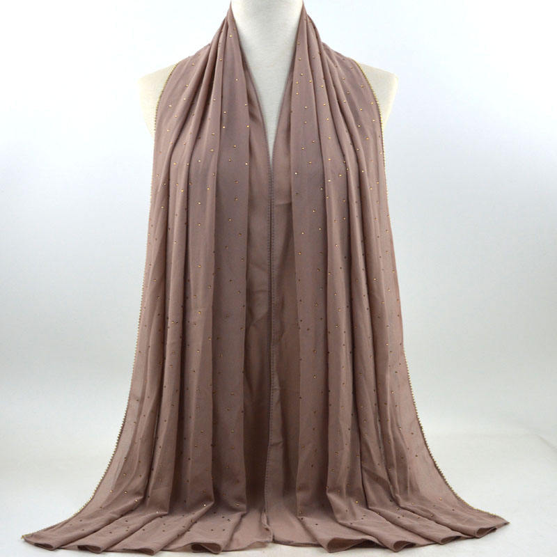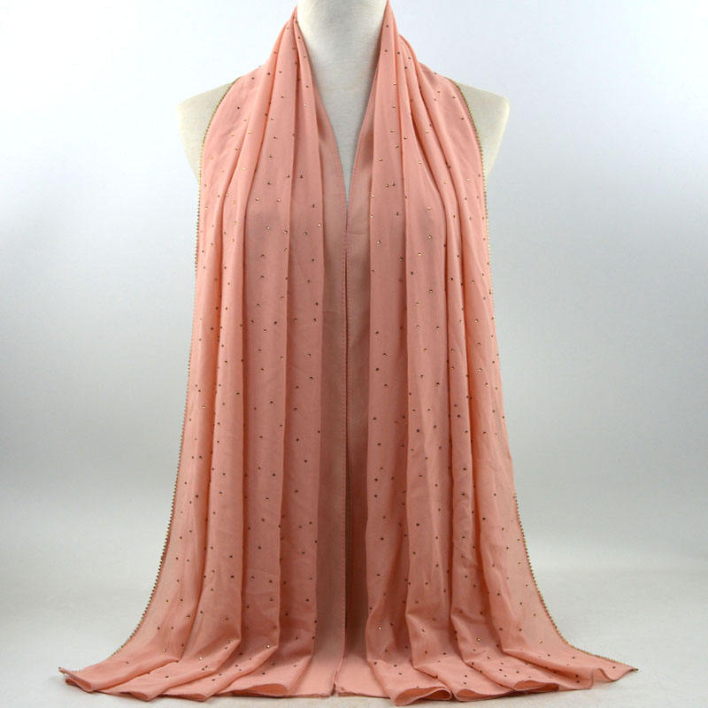 새로운 크로스 보더 진주 쉬폰 모조 다이아몬드 스카프 목도리 봄과 여름 긴 여성 히잡 스카프