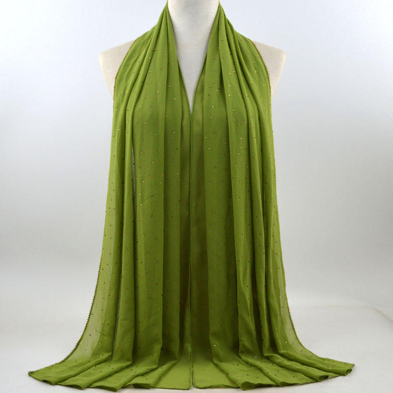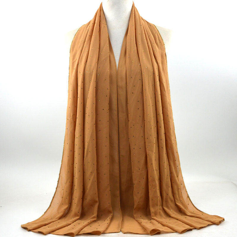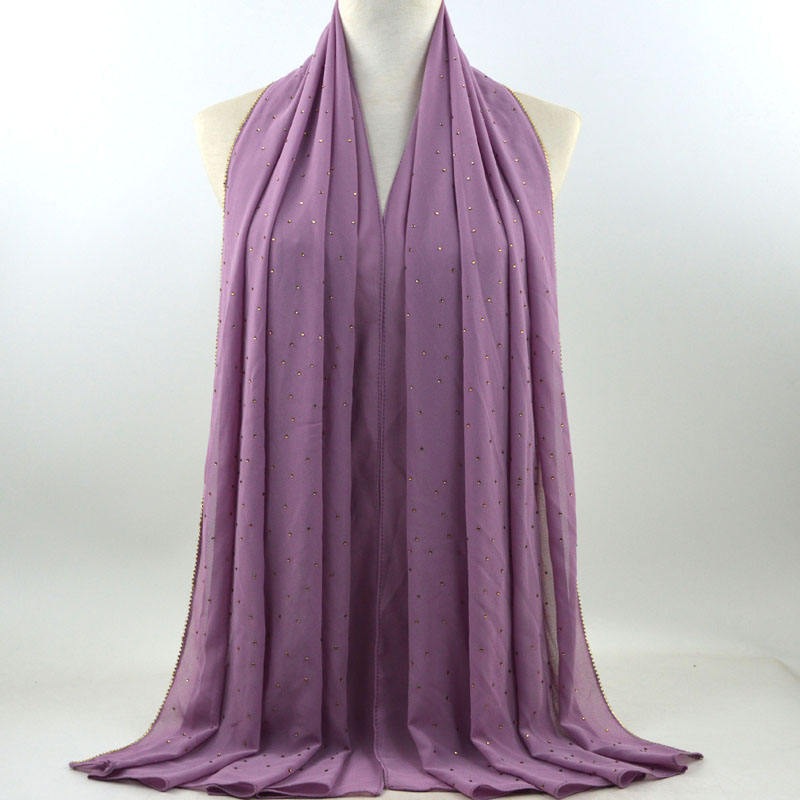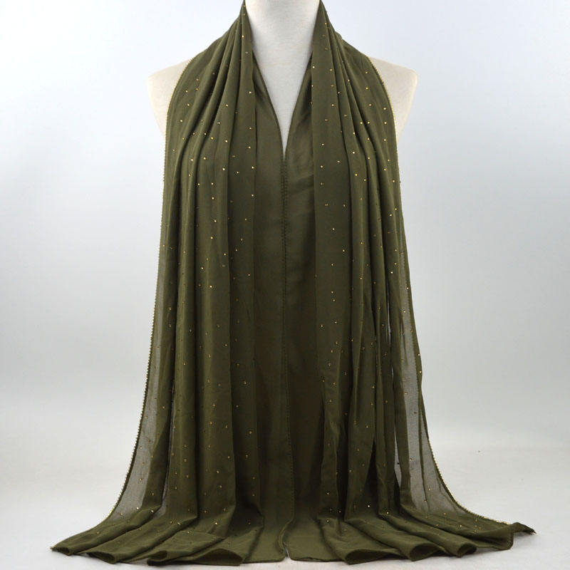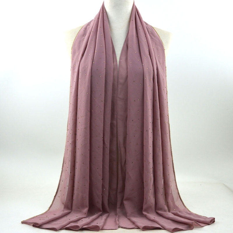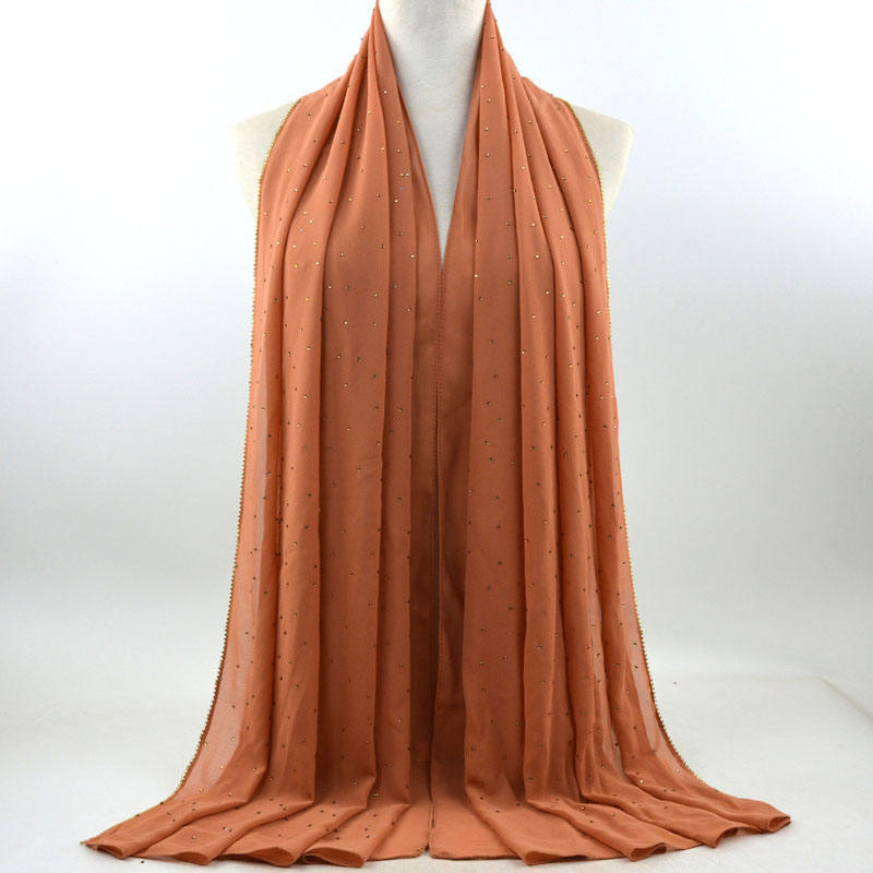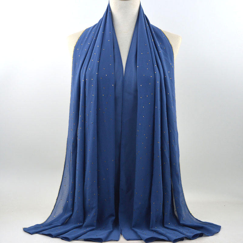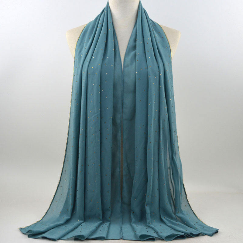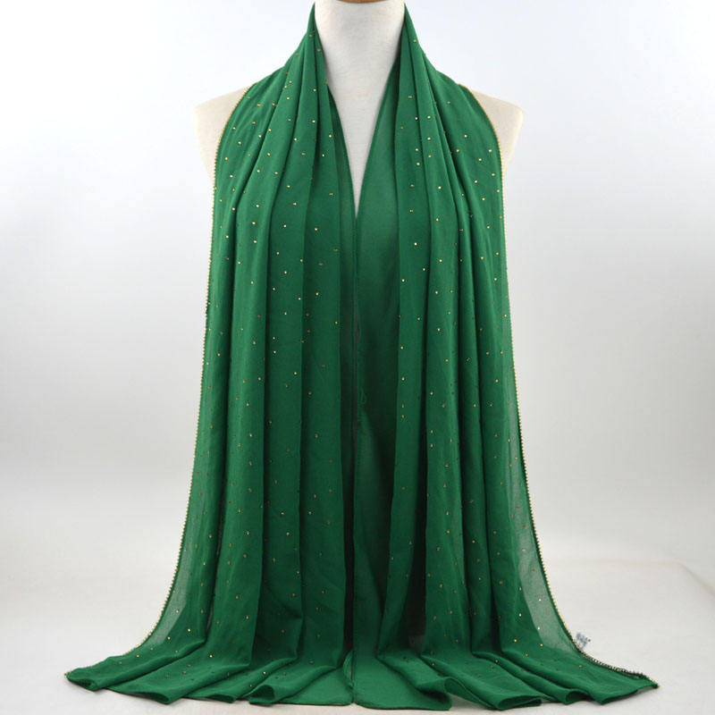 새로운 크로스 보더 진주 쉬폰 모조 다이아몬드 스카프 목도리 봄과 여름 긴 여성 히잡 스카프