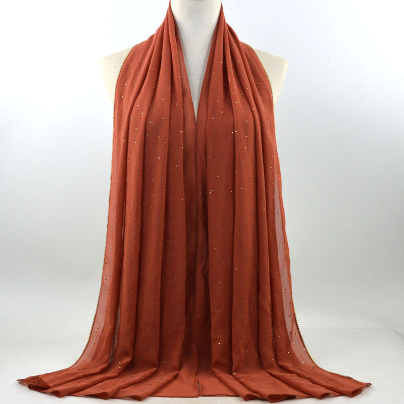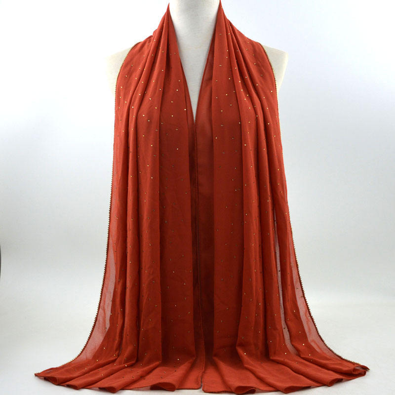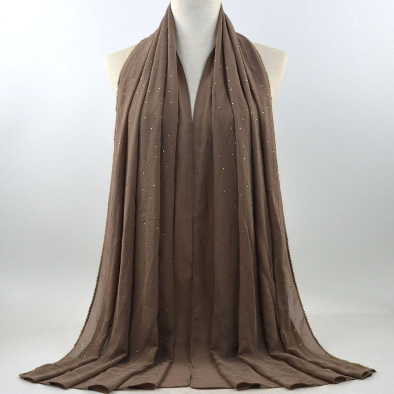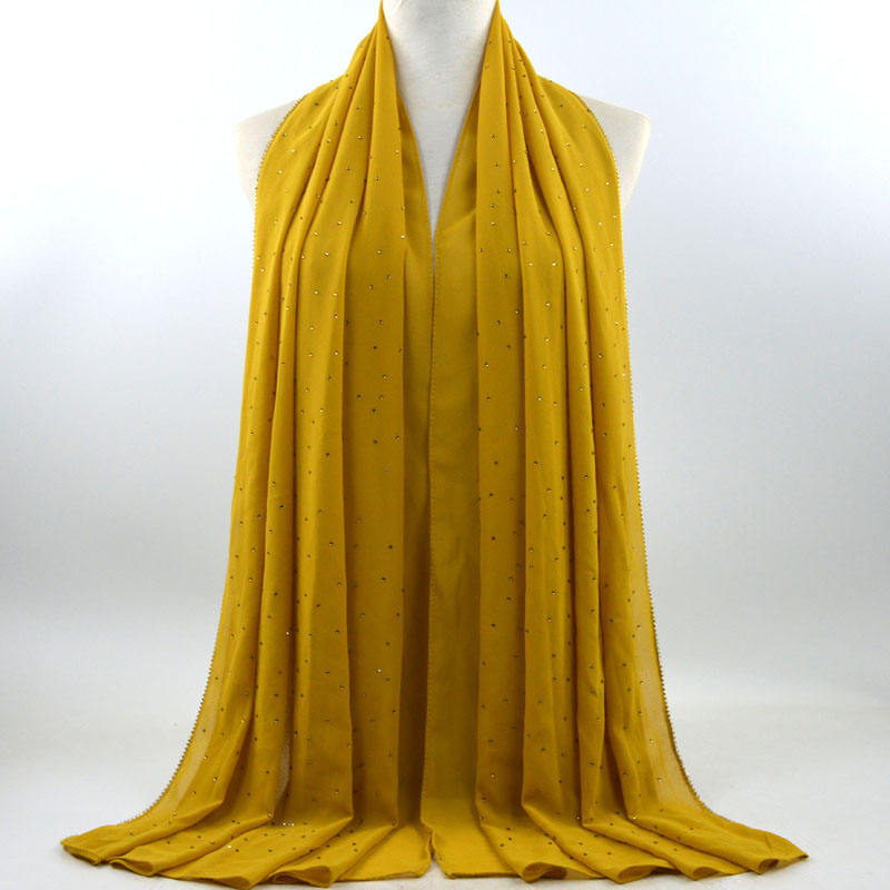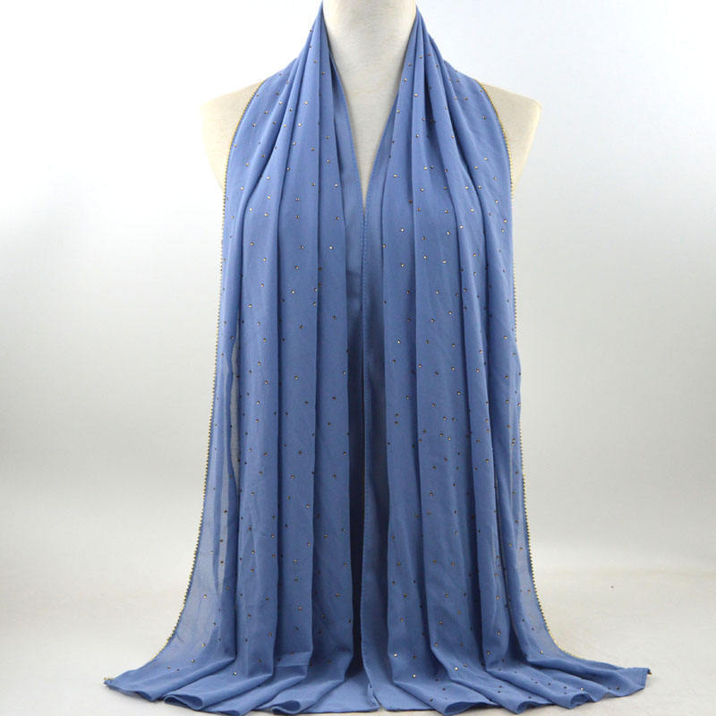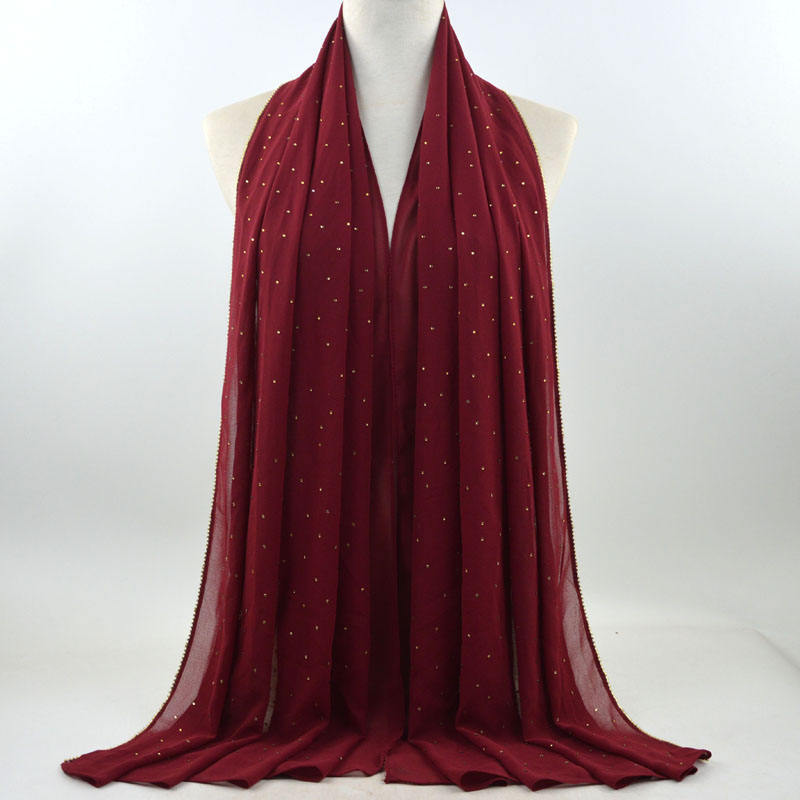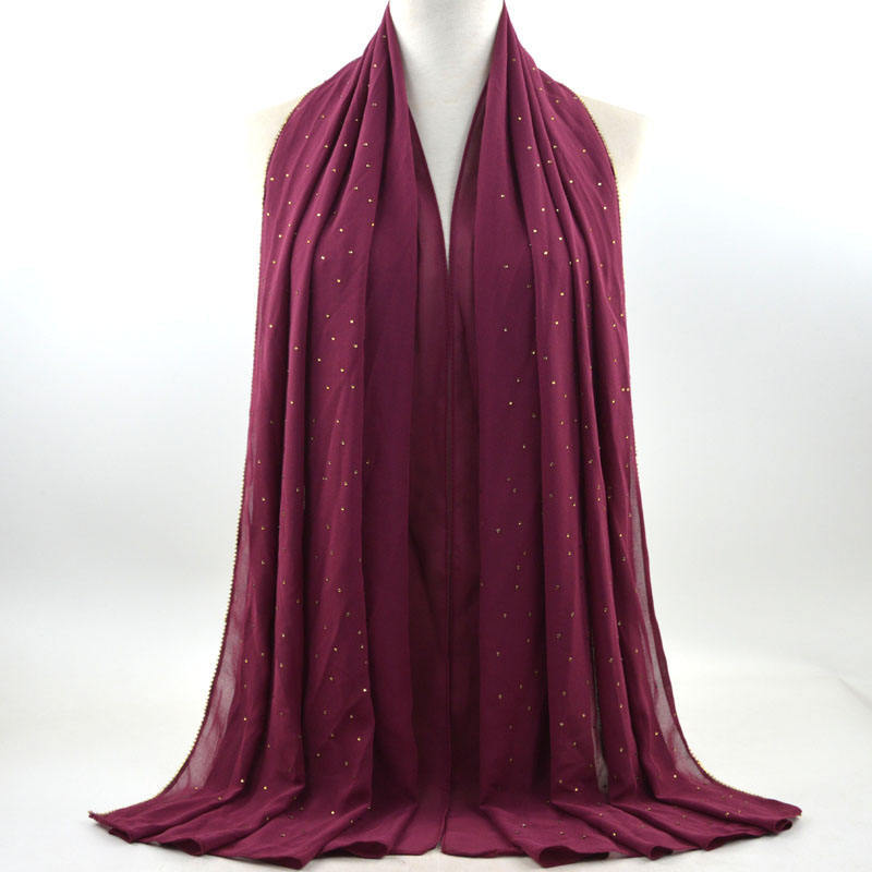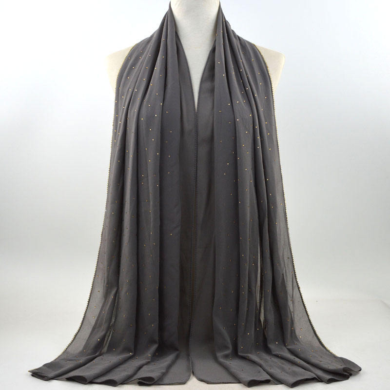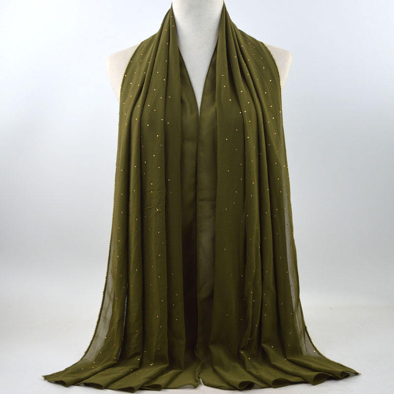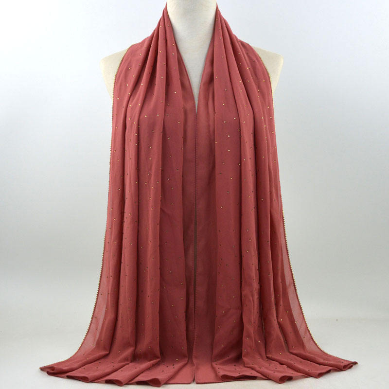 새로운 크로스 보더 진주 쉬폰 모조 다이아몬드 스카프 목도리 봄과 여름 긴 여성 히잡 스카프