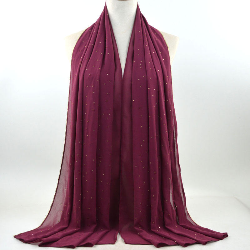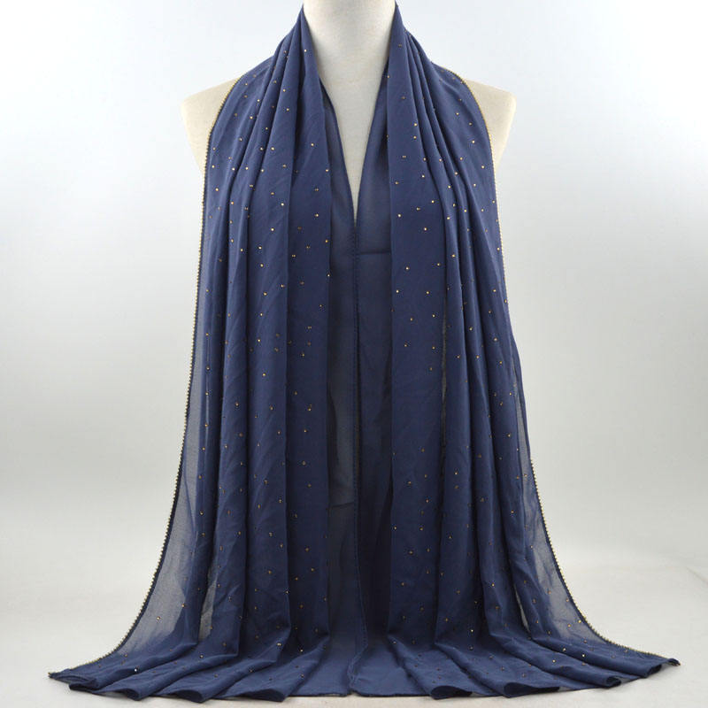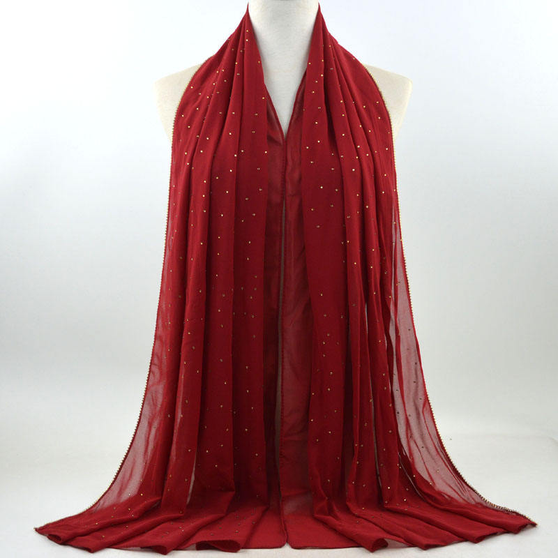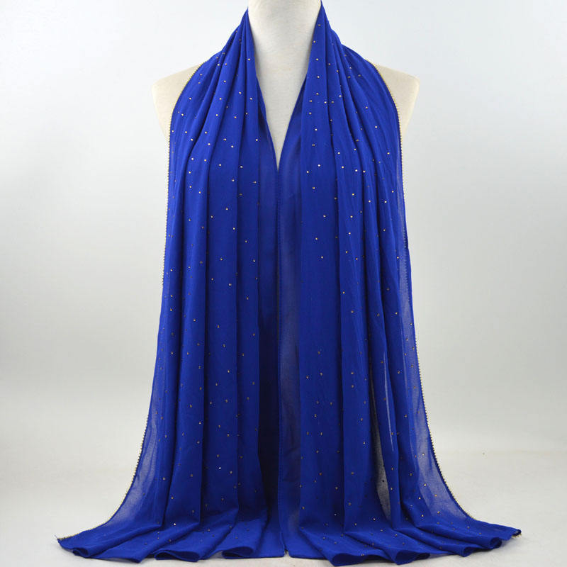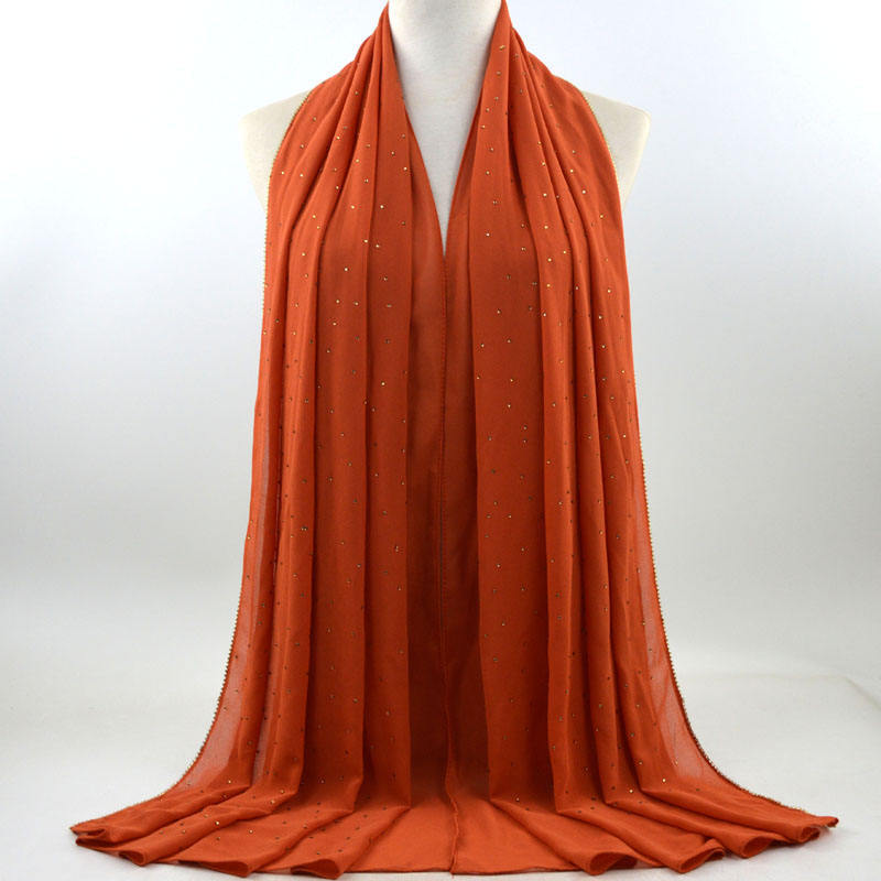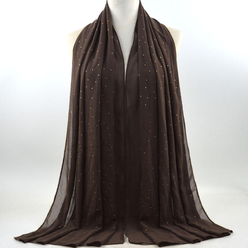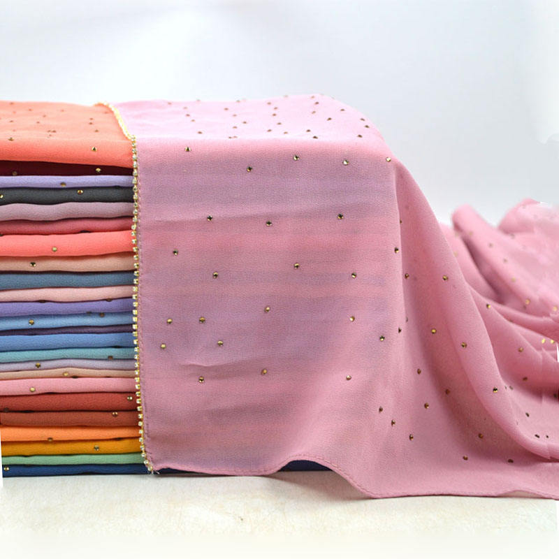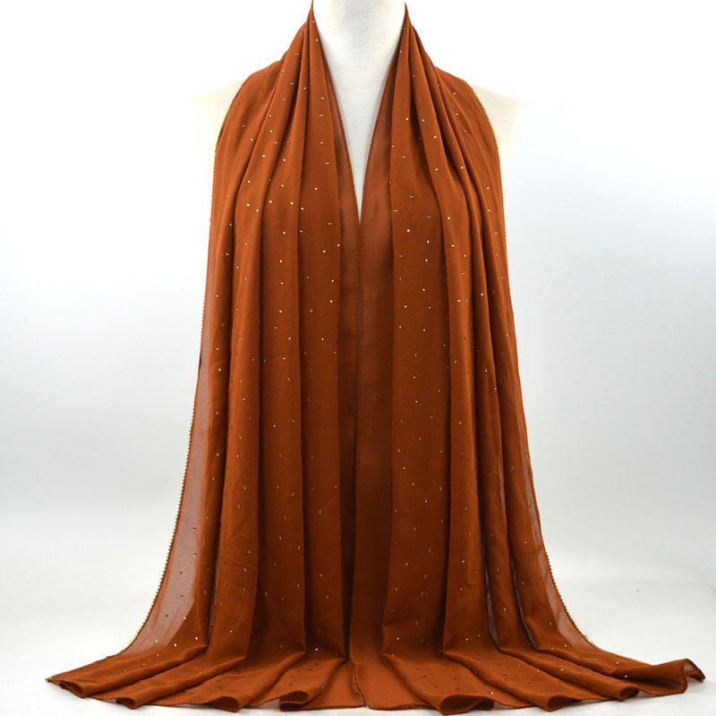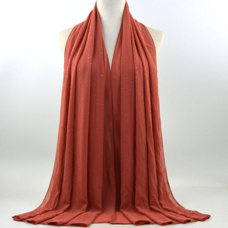새로운 크로스 보더 진주 쉬폰 모조 다이아몬드 스카프 목도리 봄과 여름 긴 여성 히잡 스카프