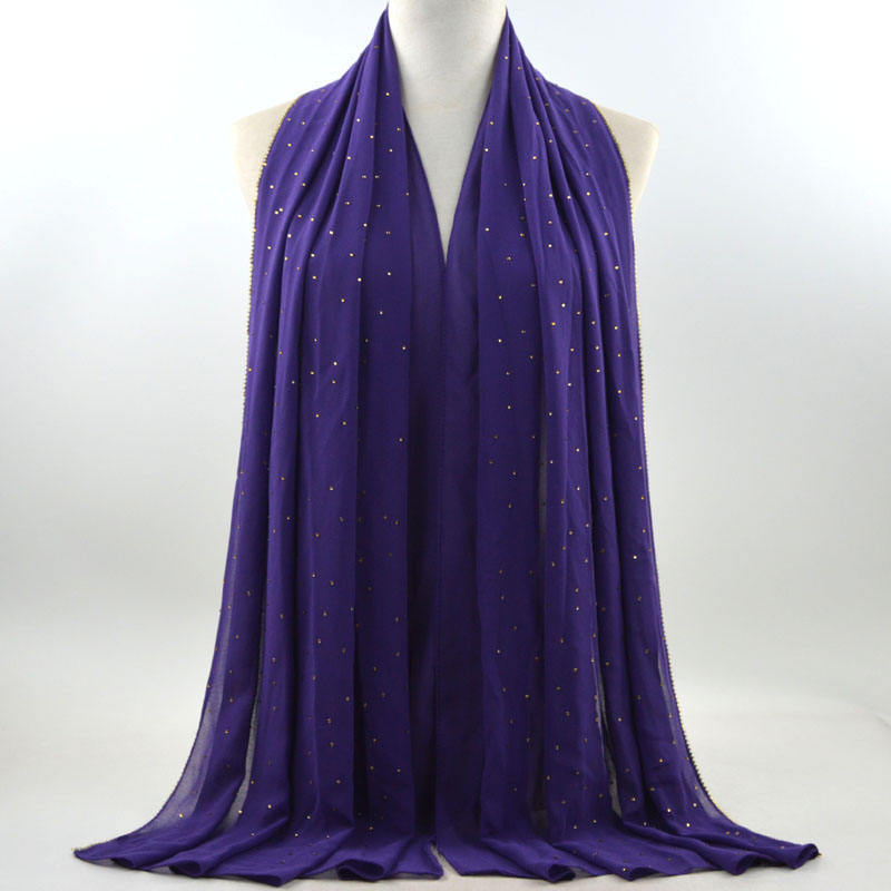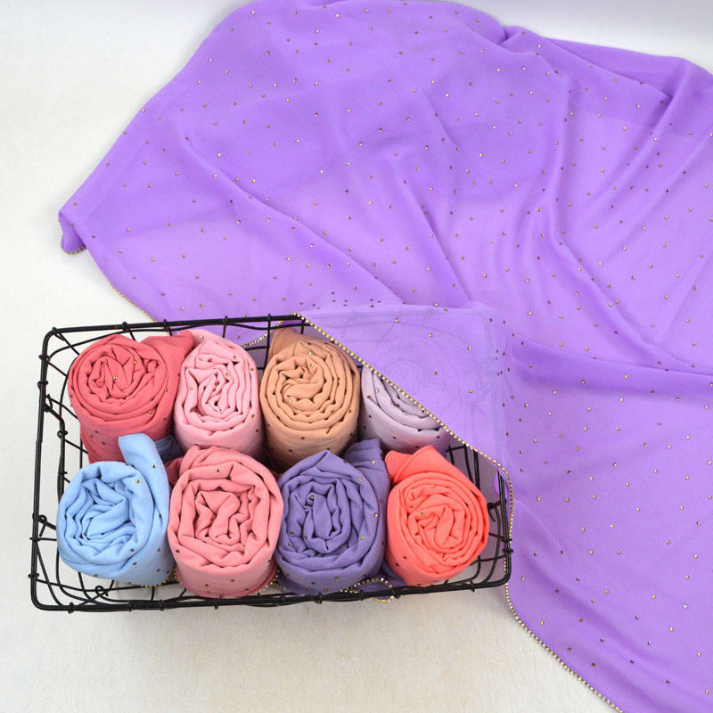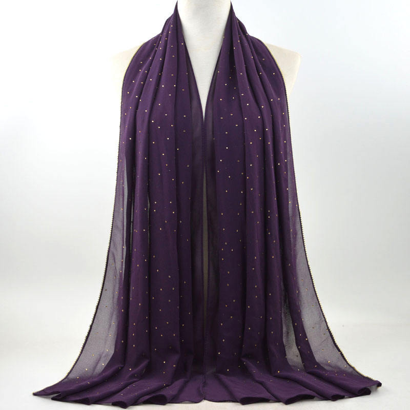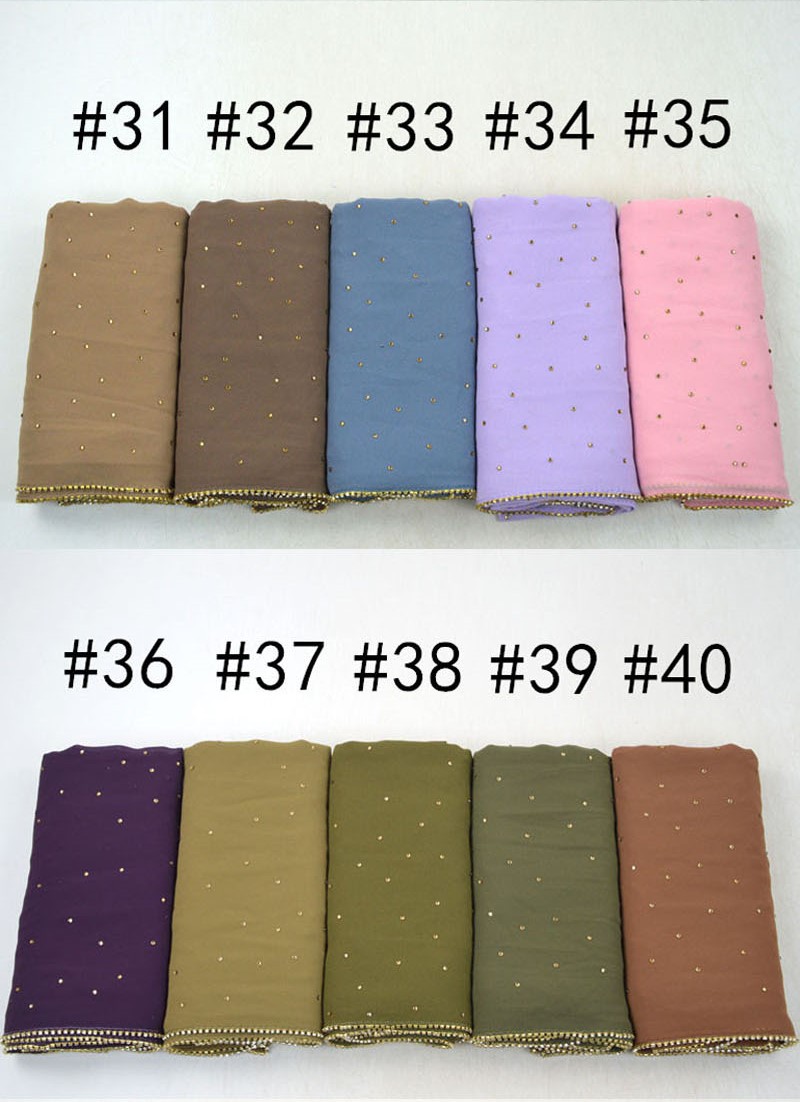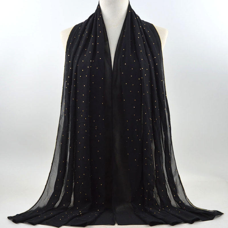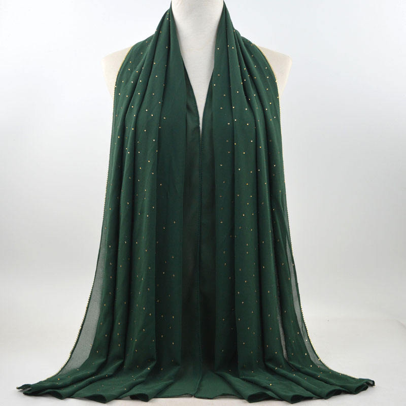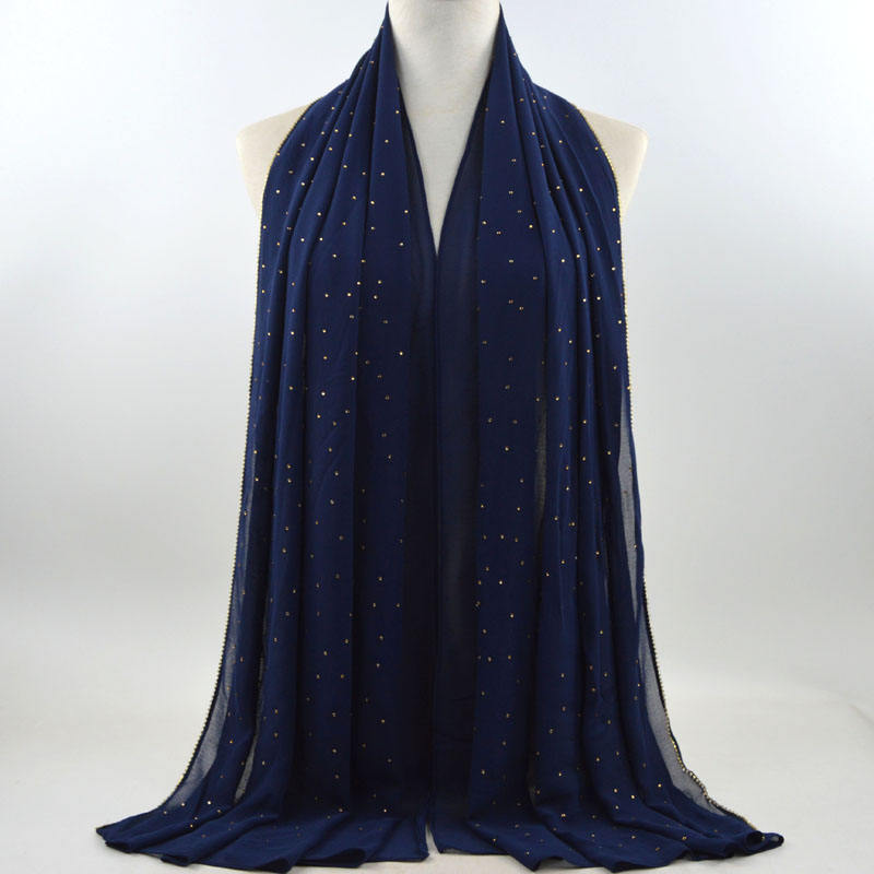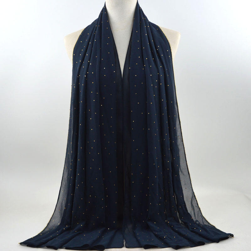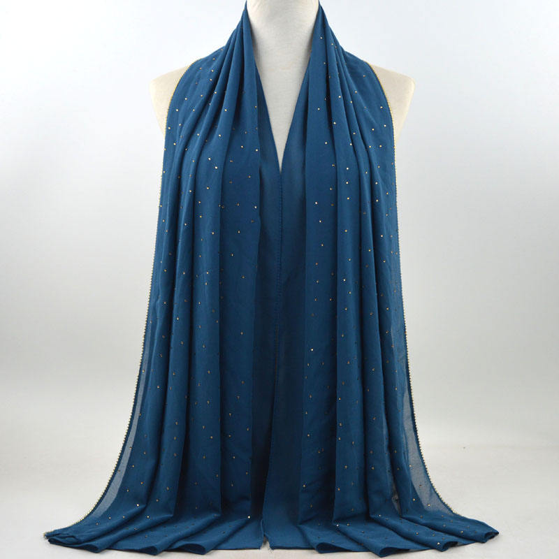 새로운 크로스 보더 진주 쉬폰 모조 다이아몬드 스카프 목도리 봄과 여름 긴 여성 히잡 스카프