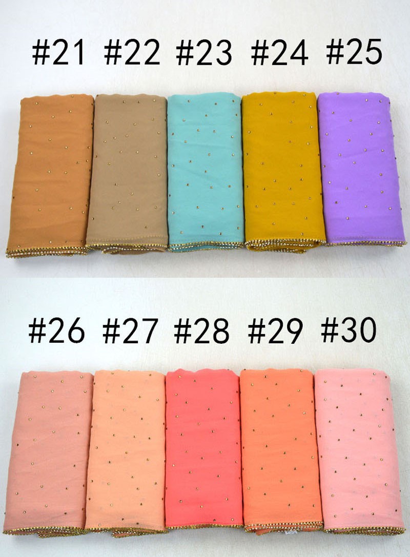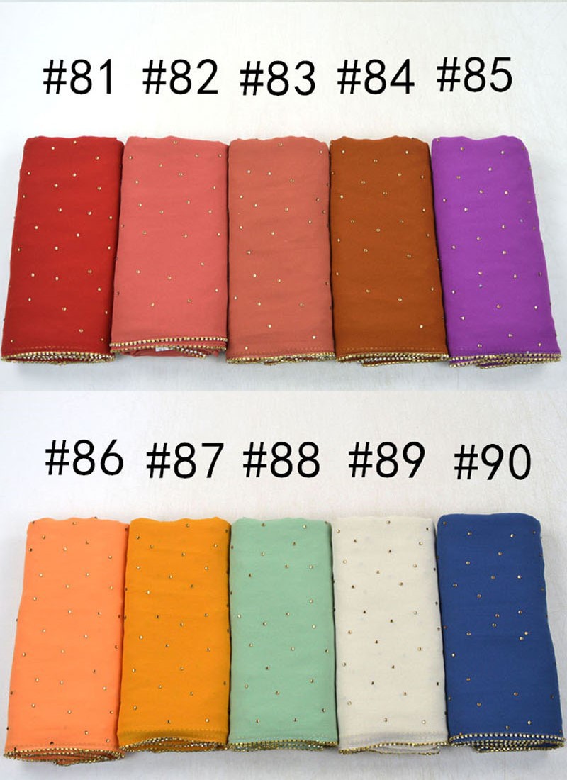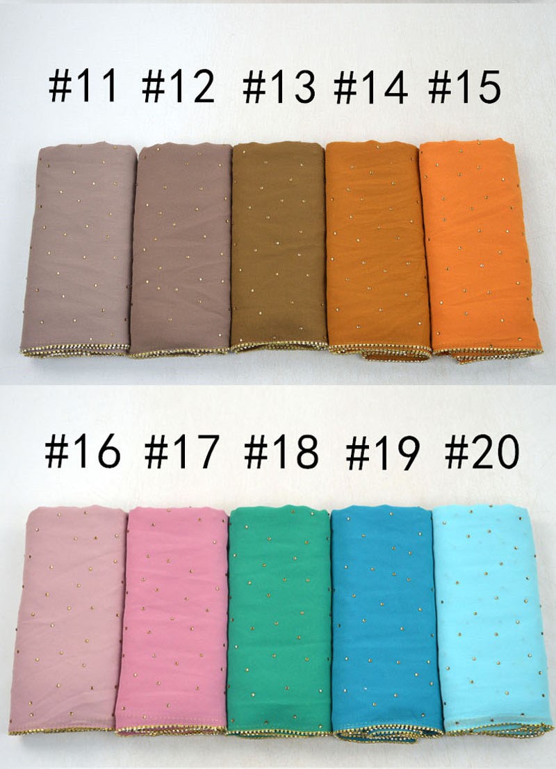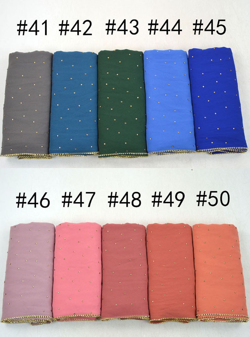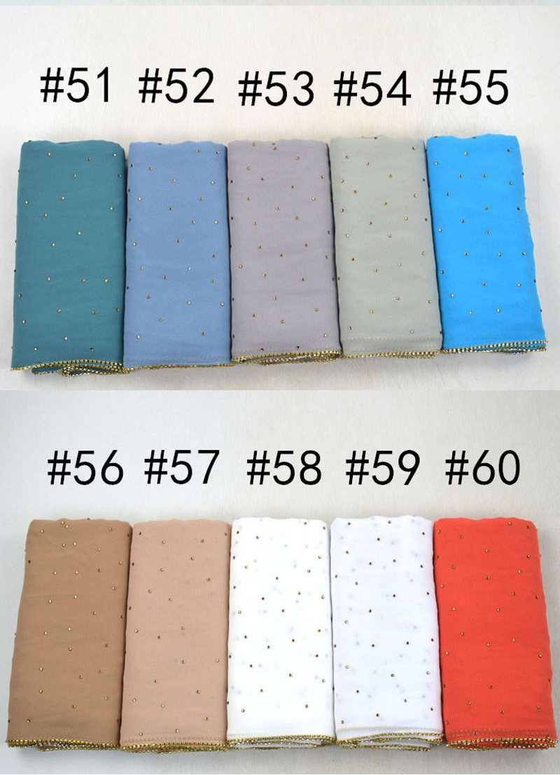 새로운 크로스 보더 진주 쉬폰 모조 다이아몬드 스카프 목도리 봄과 여름 긴 여성 히잡 스카프스토어 가기