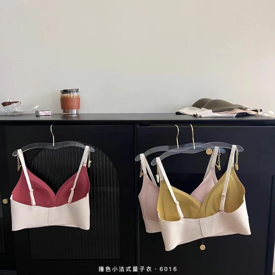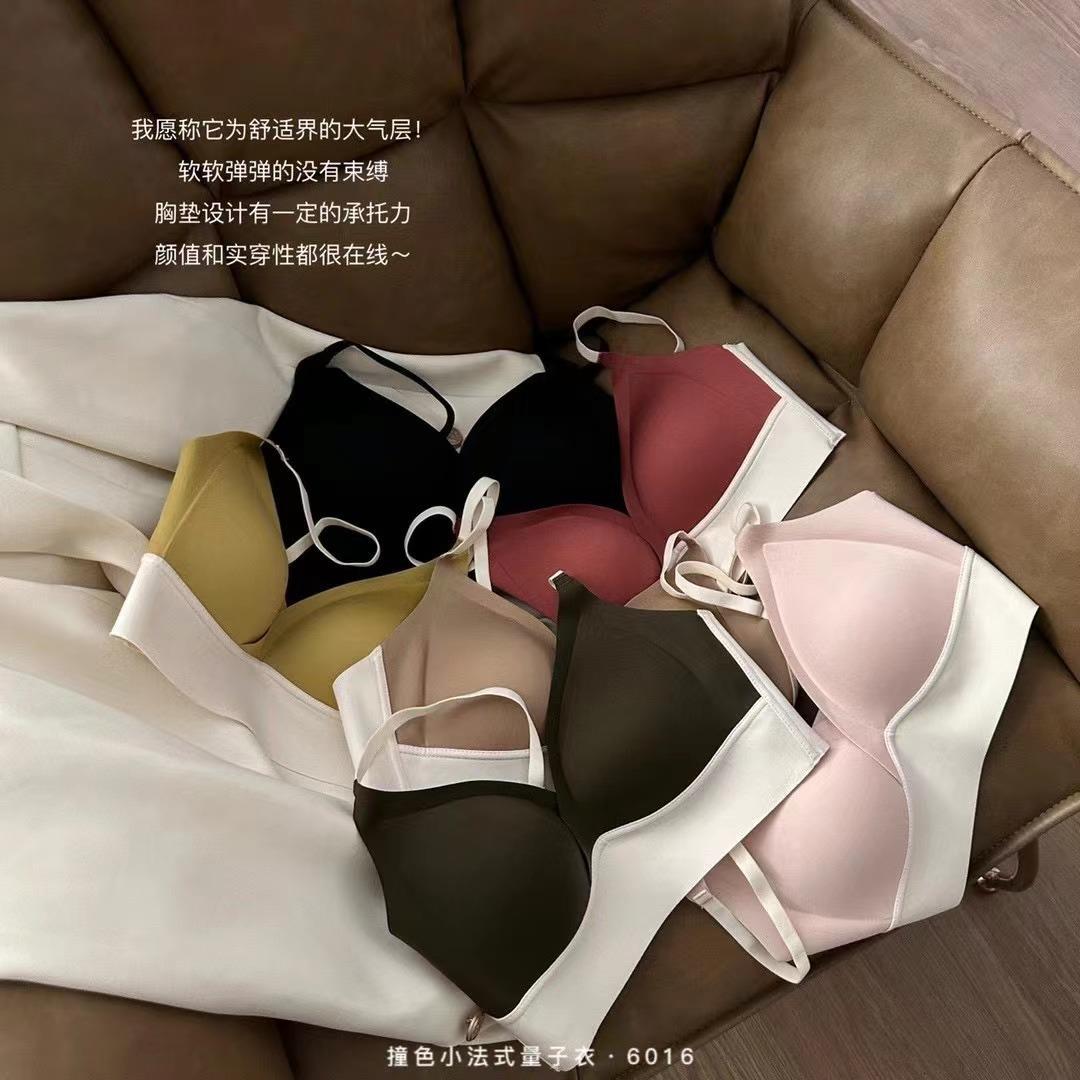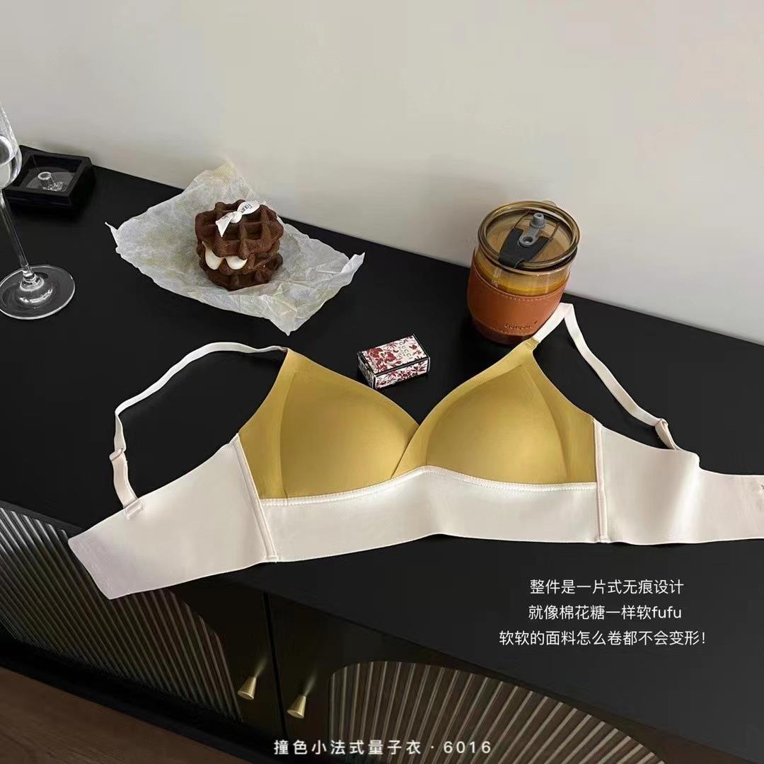 프랑스 스타일 얇은 작은 가슴 푸시 업 원활한 삼각형 컵 양자 옷 대비 색상 슬링 스틸 링 고정 컵 여성용 브래지어