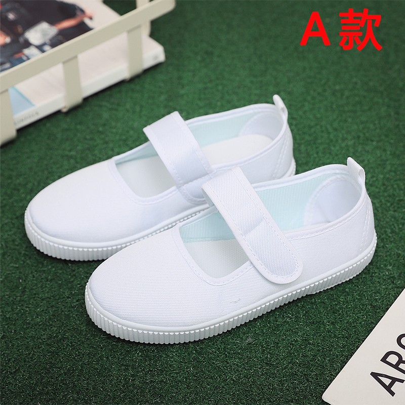 어린이 흰색 신발 소녀 흰색 천 신발 소년 캔버스 신발 초등 학생 흰색 운동화 유치원 실내 운동화