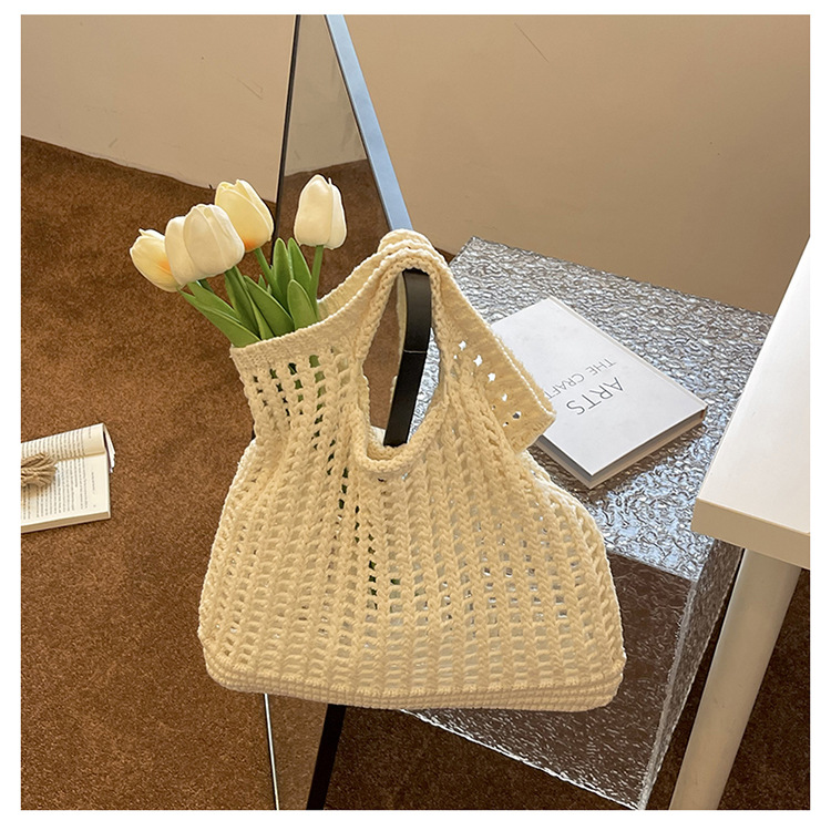 2023 새로운 크로스 보더 백 일본과 한국 토트백 단색 가방 니트 가방 중공 가방 숄더백 짠 가방스토어 가기