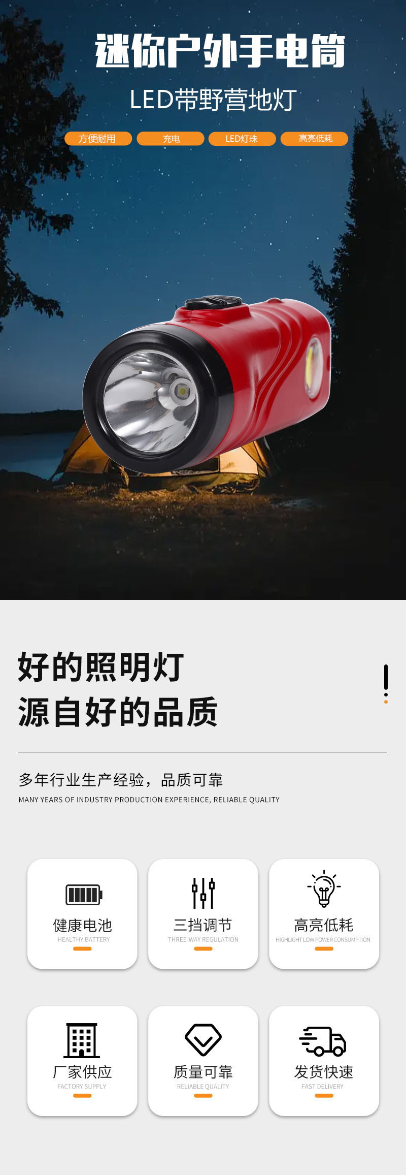 공장 도매 야외 조명 손전등 1W 충전식 휴대용 램프 충전식 휴대용 비상 조명