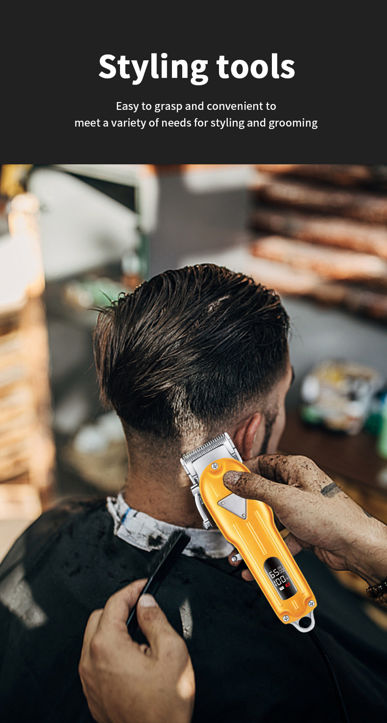 크로스 보더 올 메탈 전기 클리퍼 LCD 디지털 디스플레이 남성용 헤어 클리퍼 헤어 살롱 강력한 파워 조각 오일 헤드 전기 클리퍼스토어 가기