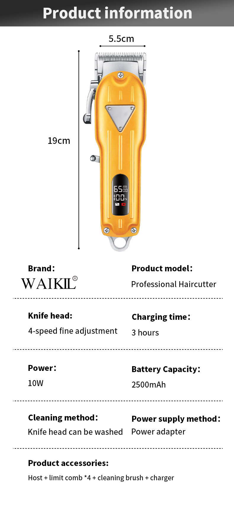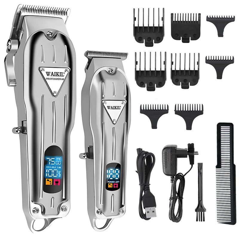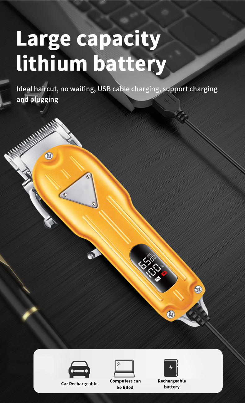 크로스 보더 올 메탈 전기 클리퍼 LCD 디지털 디스플레이 남성용 헤어 클리퍼 헤어 살롱 강력한 파워 조각 오일 헤드 전기 클리퍼