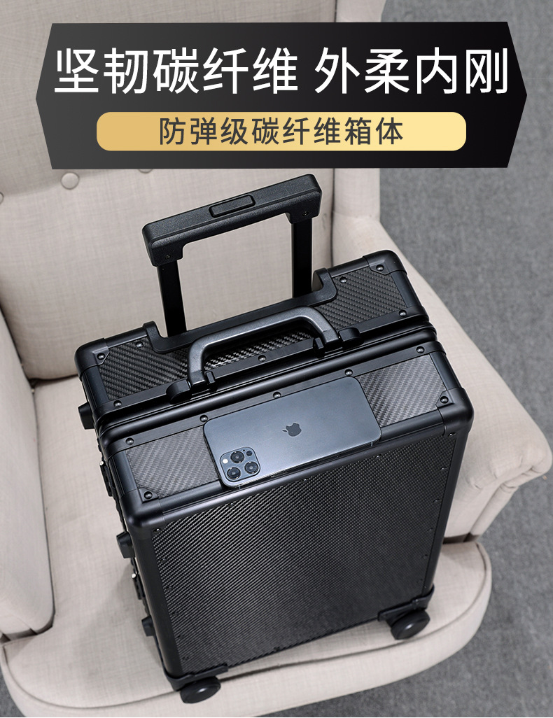 고급 풀 카본 파이버 수하물 케이스 유니버설 휠 여성용 알루미늄 프레임 트롤리 케이스 남성용 탑승 케이스 비즈니스 가방 20 인치스토어 가기