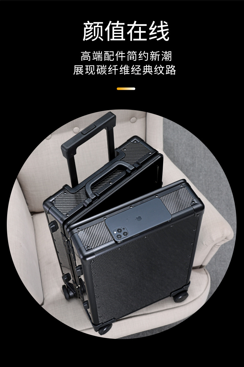 고급 풀 카본 파이버 수하물 케이스 유니버설 휠 여성용 알루미늄 프레임 트롤리 케이스 남성용 탑승 케이스 비즈니스 가방 20 인치