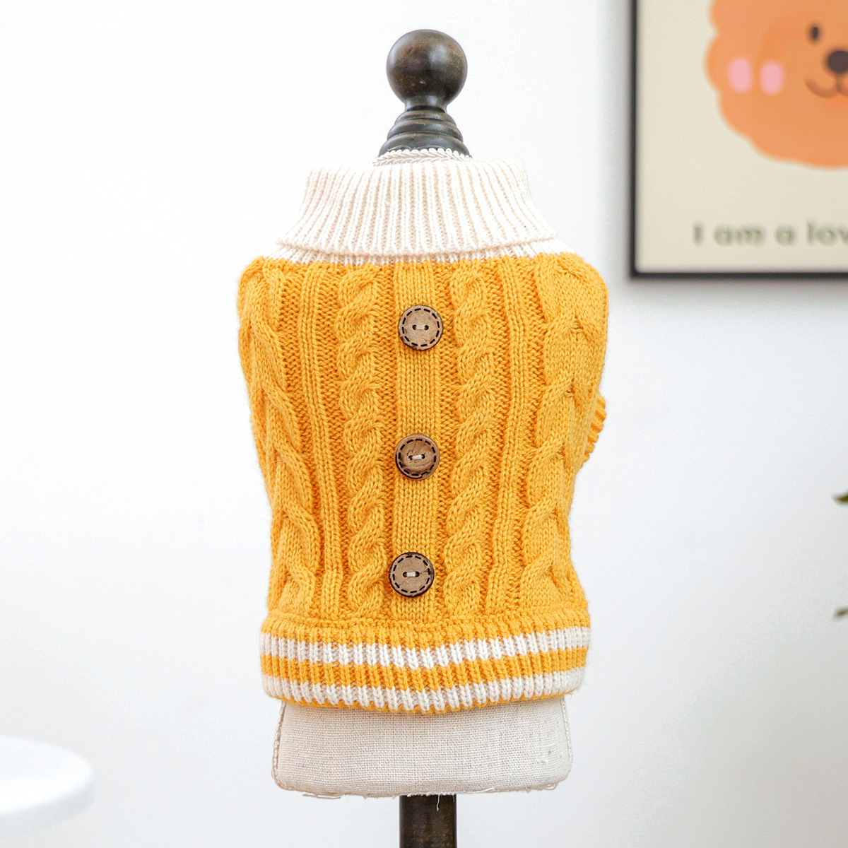 • 새로운 꽈배기 단추 니트 - 옐로우