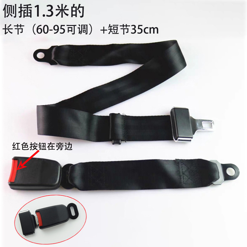侧插安全带有有总长1.4米 1.3米的 长节调到最长约97cm 短节有45cm 35cm 25cm三种规格 默认发35cm 黑色的 如有长短要求的或者别的颜色的可联系客服