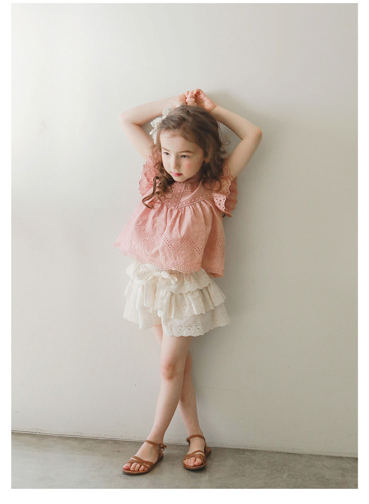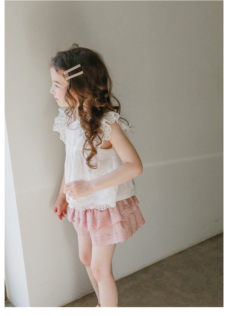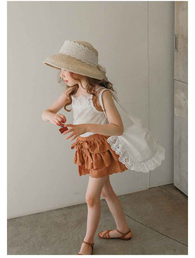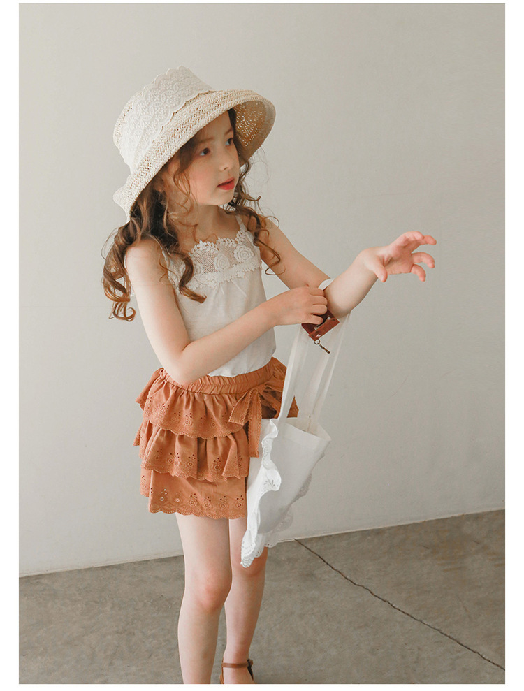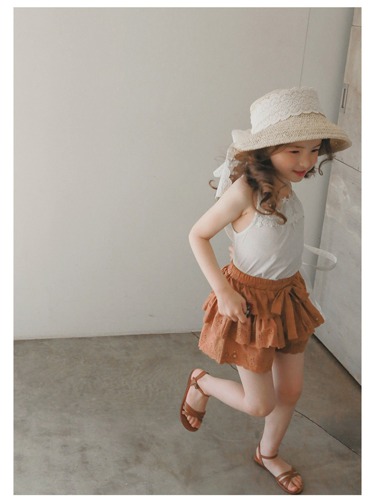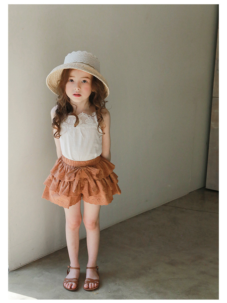 어린이용 레이스 반바지, 여름용 얇은 공주풍 스커트 팬츠, 3-10세 여아용 순면 케이크 스커트 팬츠, 크로스보더 경량 팬츠