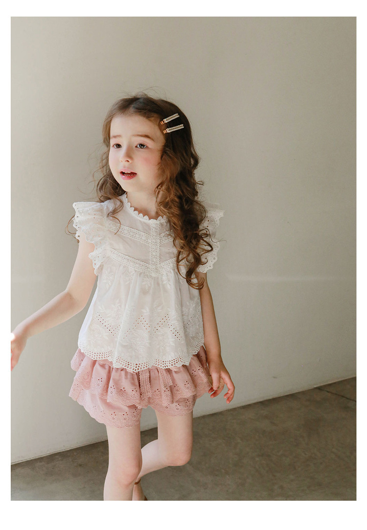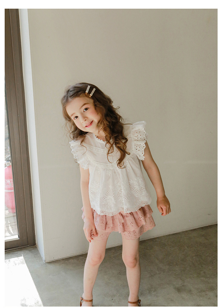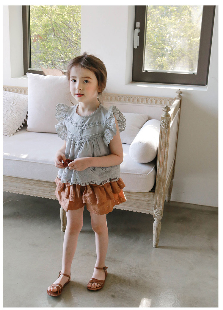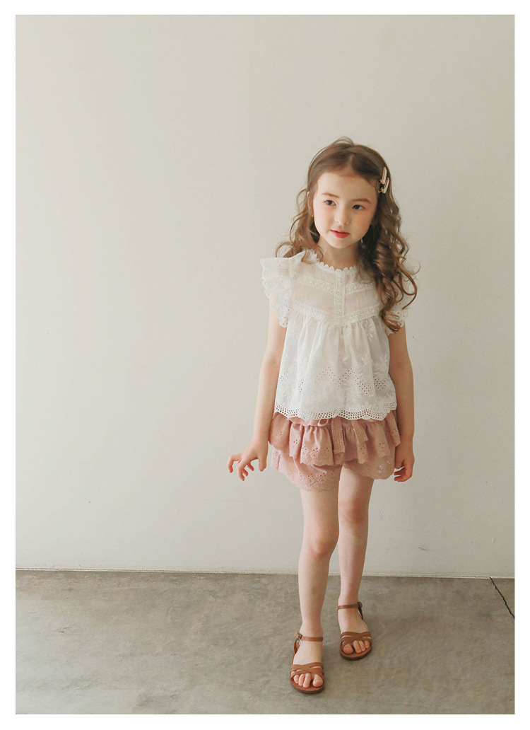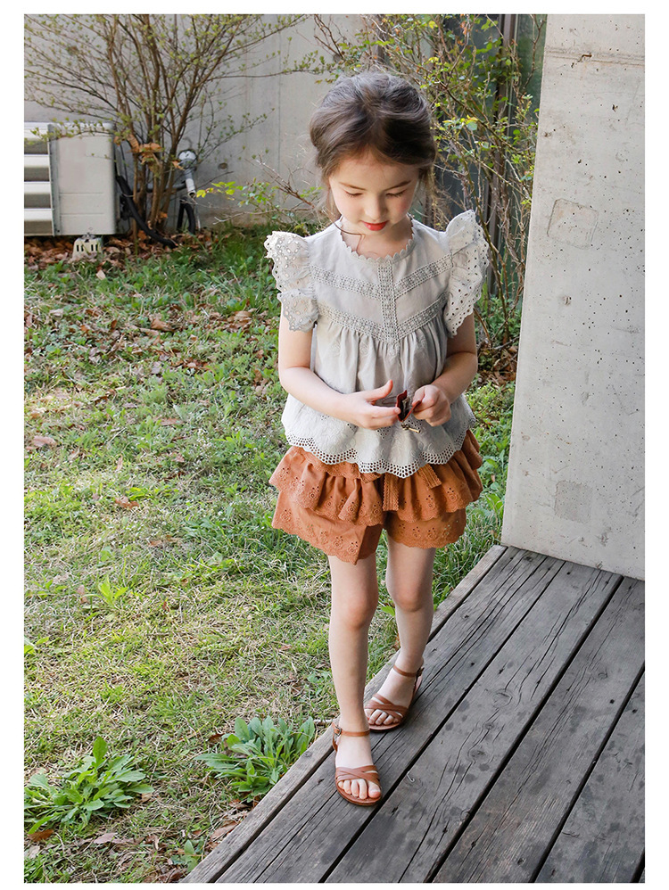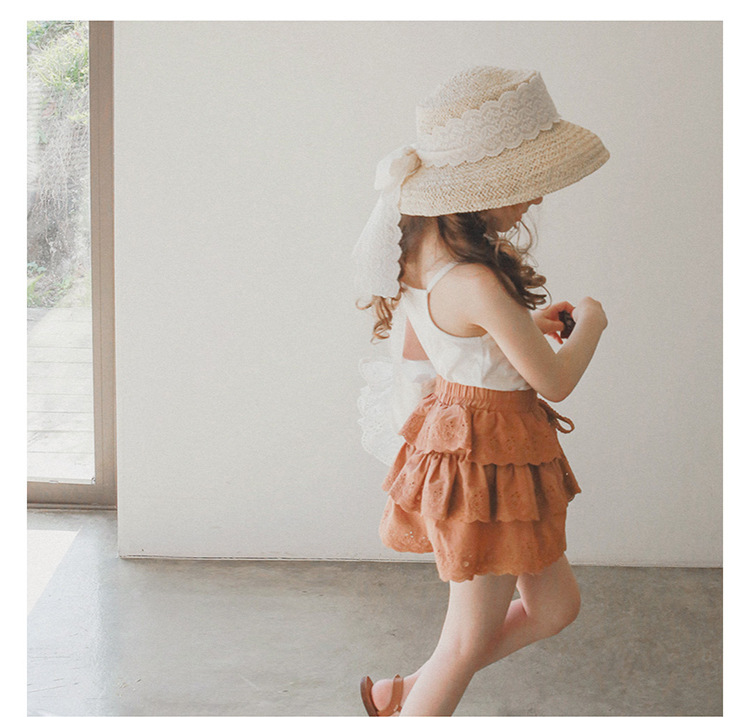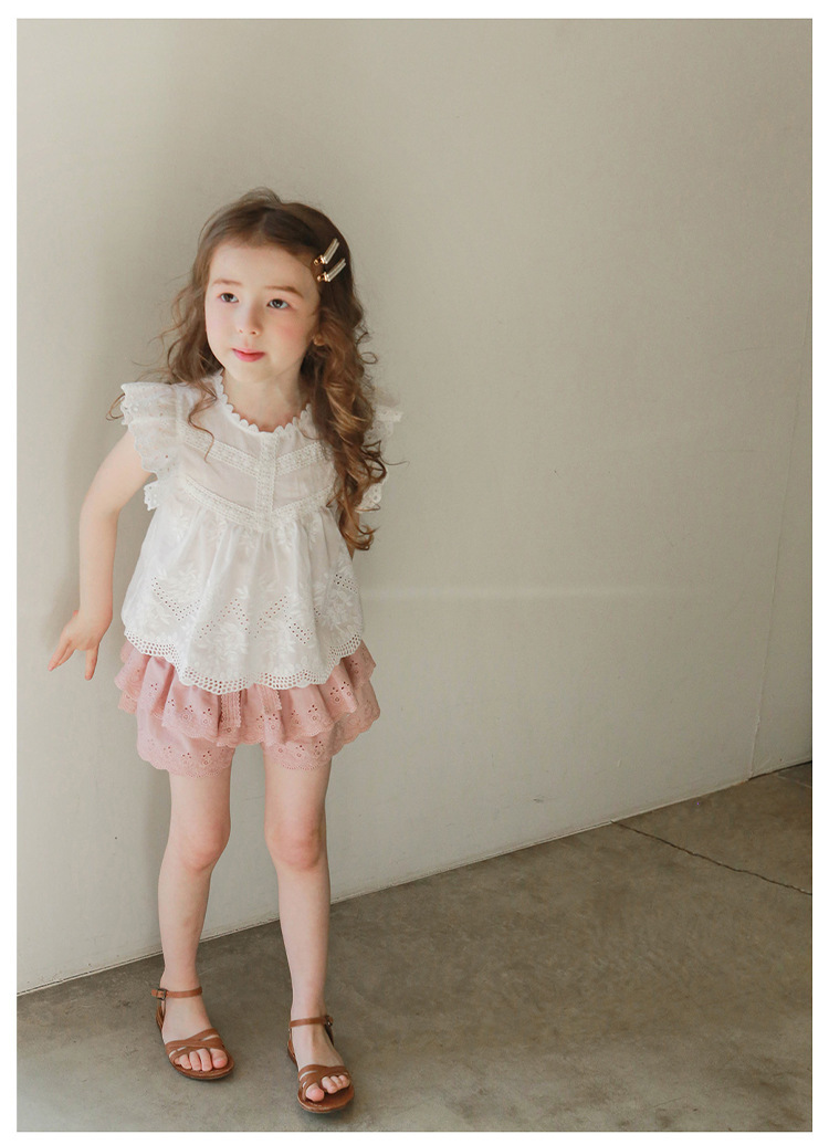 어린이용 레이스 반바지, 여름용 얇은 공주풍 스커트 팬츠, 3-10세 여아용 순면 케이크 스커트 팬츠, 크로스보더 경량 팬츠