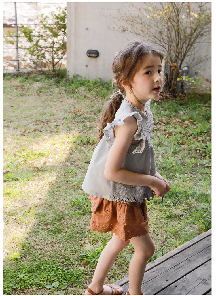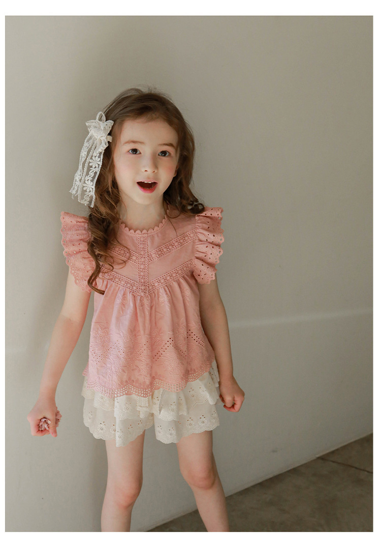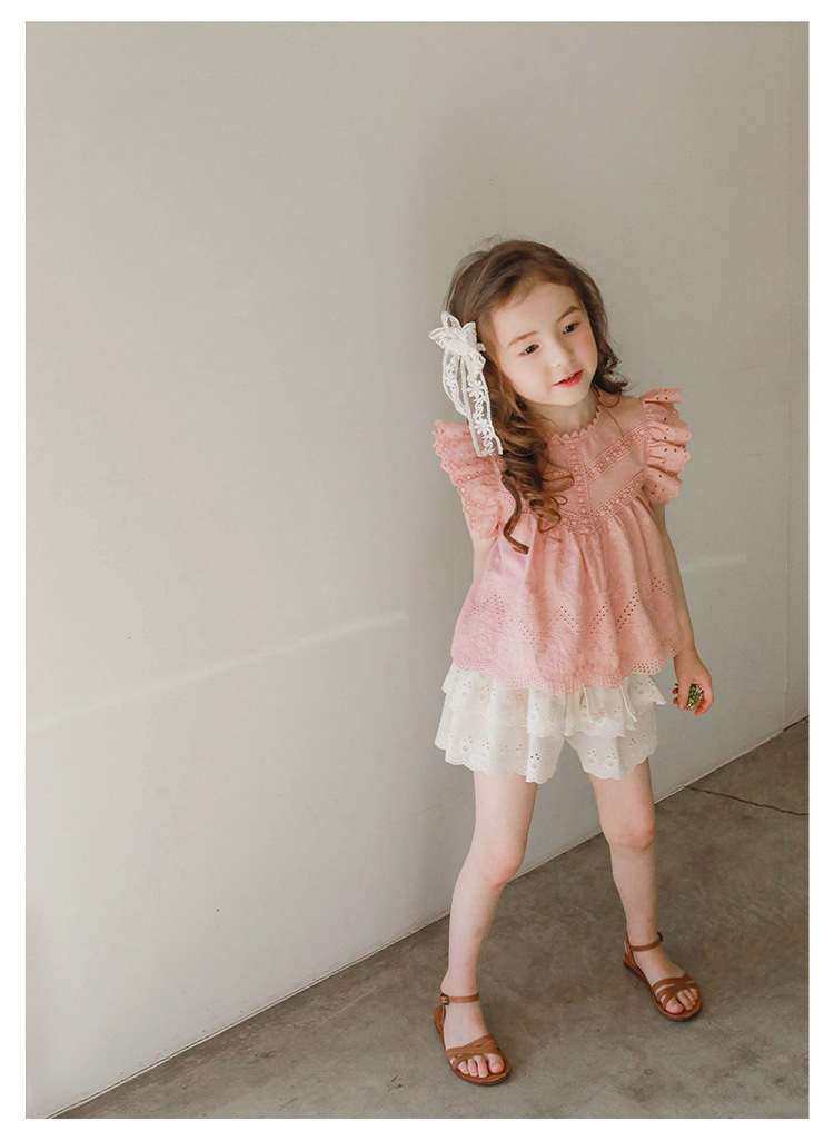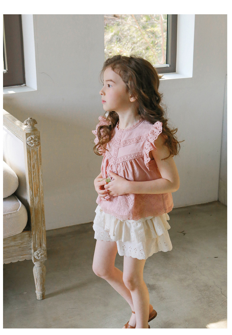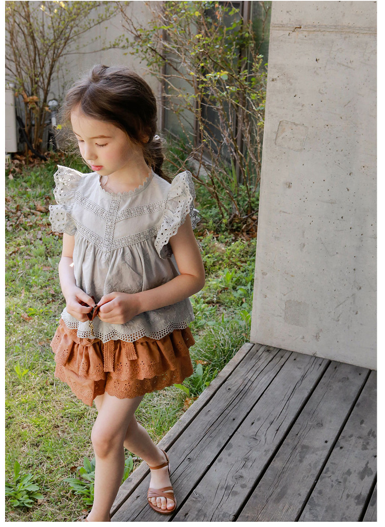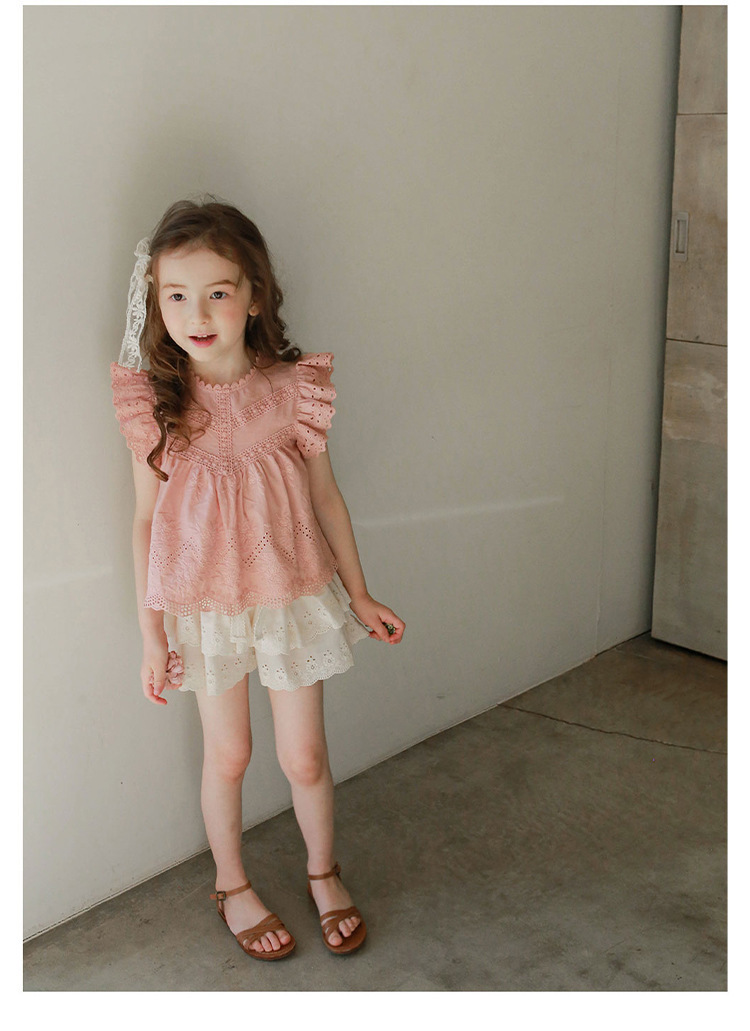 어린이용 레이스 반바지, 여름용 얇은 공주풍 스커트 팬츠, 3-10세 여아용 순면 케이크 스커트 팬츠, 크로스보더 경량 팬츠