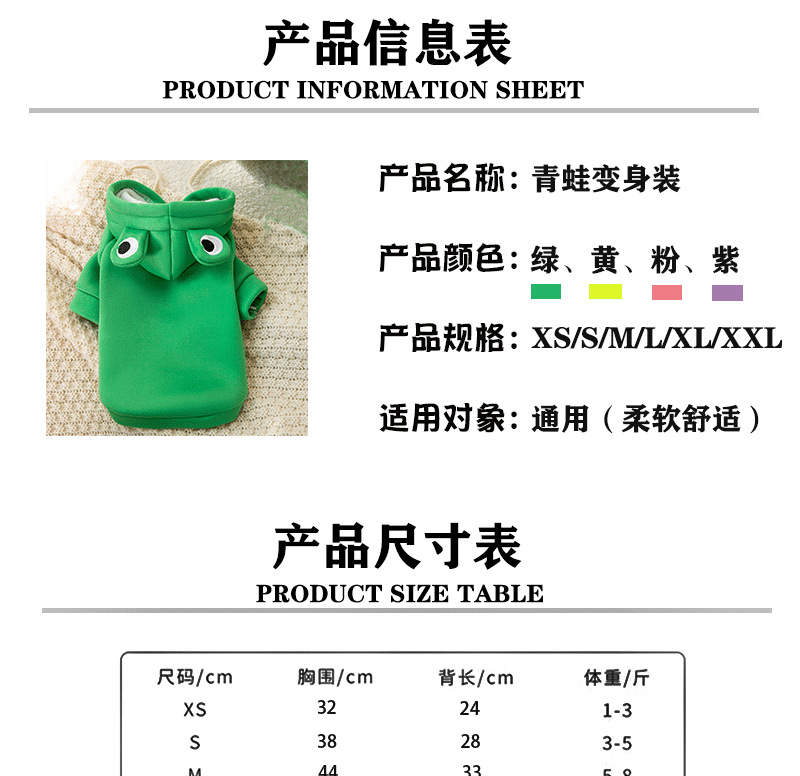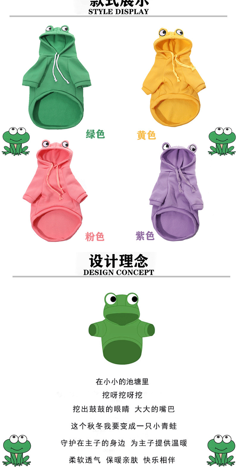 애완 동물 옷 개구리 변형 후드 조끼 개 고양이 가을과 겨울 따뜻한 중소 개 공장 직접 공급스토어 가기