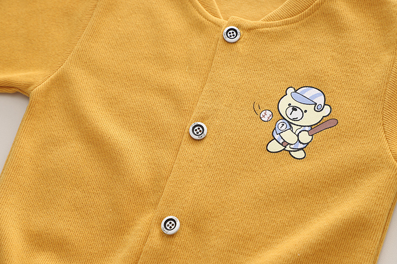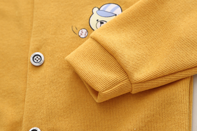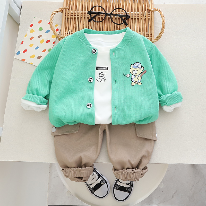 가을 아이들의 새로운 3 피스 편안한 카디건 만화 곰 인쇄 긴 소매 코트 남자의 세트 제조 업체 도매