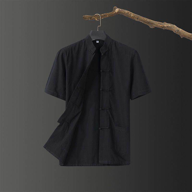 중국 스타일 긴 소매 셔츠 남자의 면 린넨 플러스 사이즈 캐주얼 스탠드 칼라 셔츠 복고풍 스타일 중국 당나라 세트 린넨 남성 의류스토어 가기