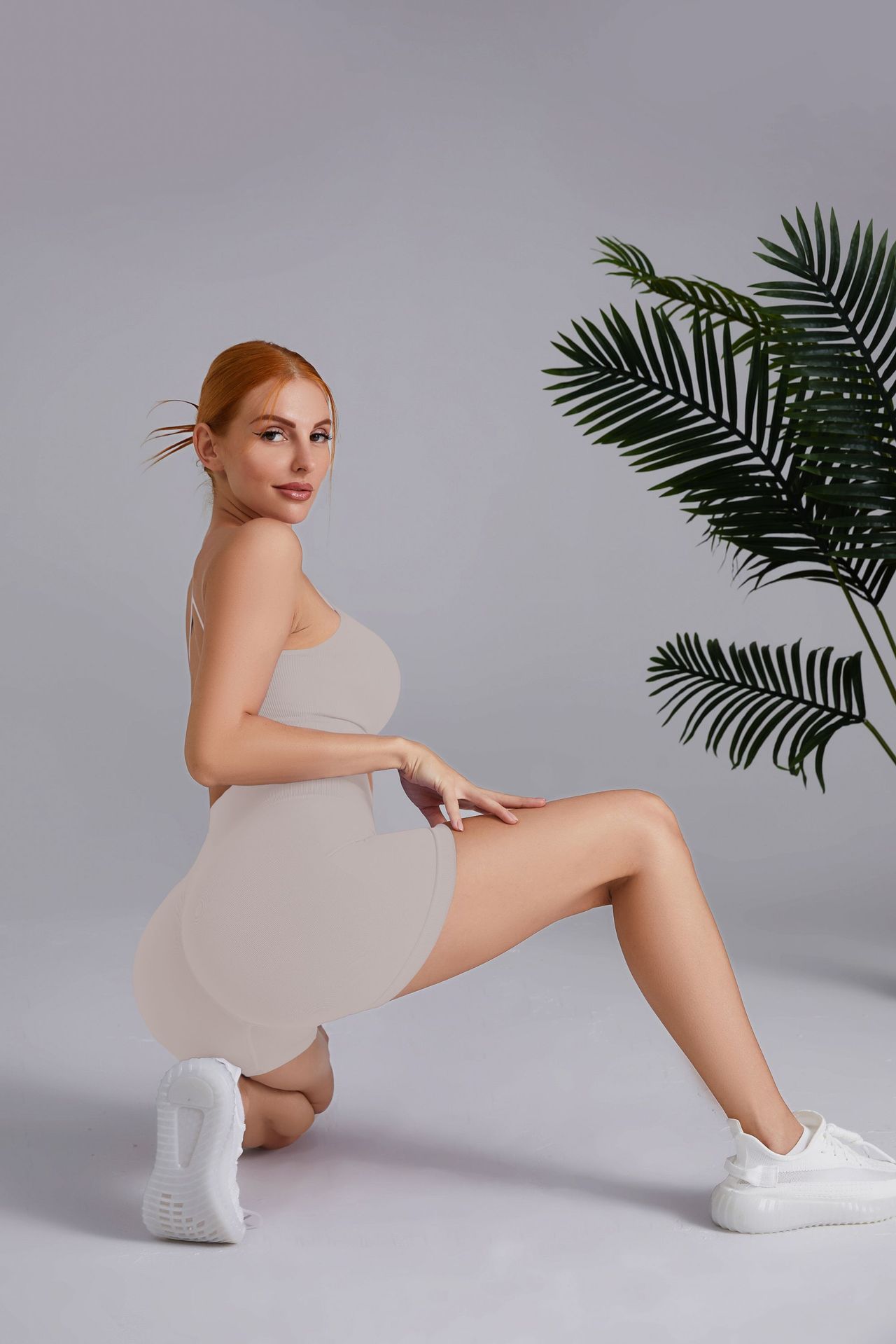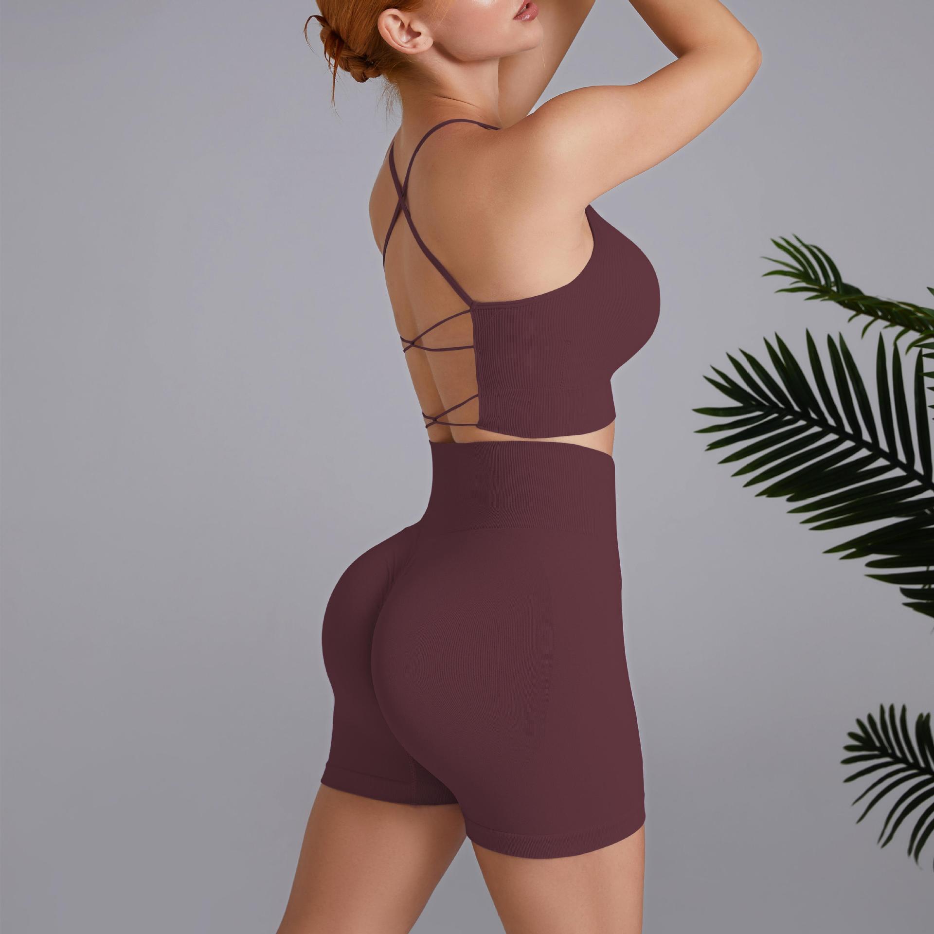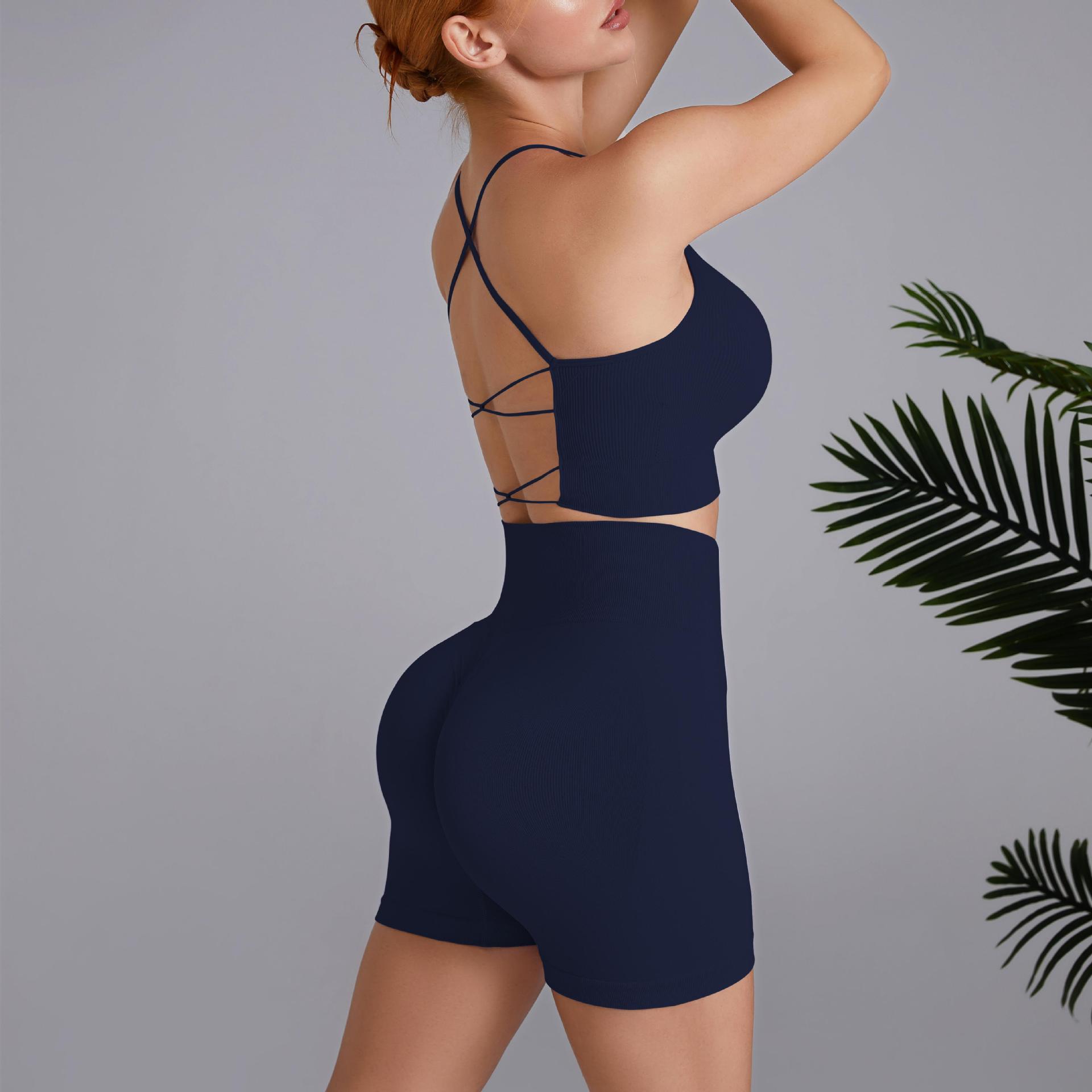 새로운 크로스 뷰티 백 여자의 여름 요가 조끼 세트 얇은 어깨 스트랩 스포츠 브라 하이 웨이스트 배꼽 꽉 요가 반바지스토어 가기