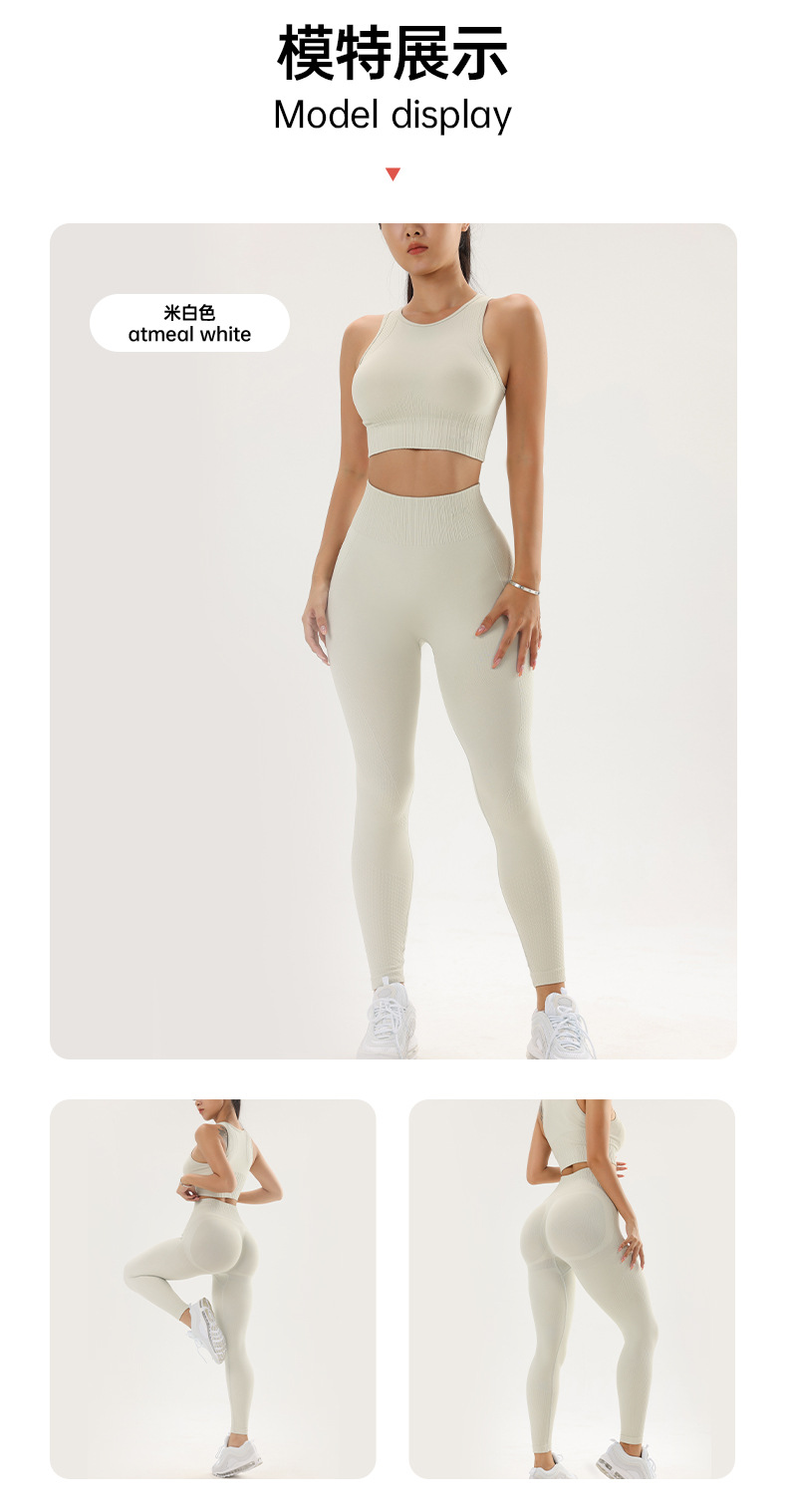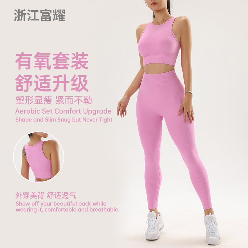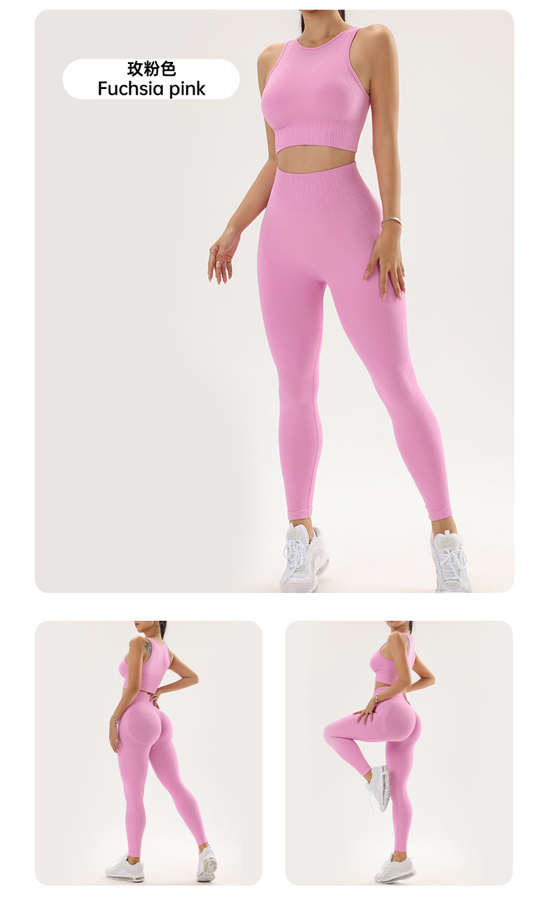 스포츠 야외 피트니스 요가 세트 러닝 브라 복숭아색 아우터웨어 슬림핏 9부 팬츠 여성용 루 하이엘라스틱