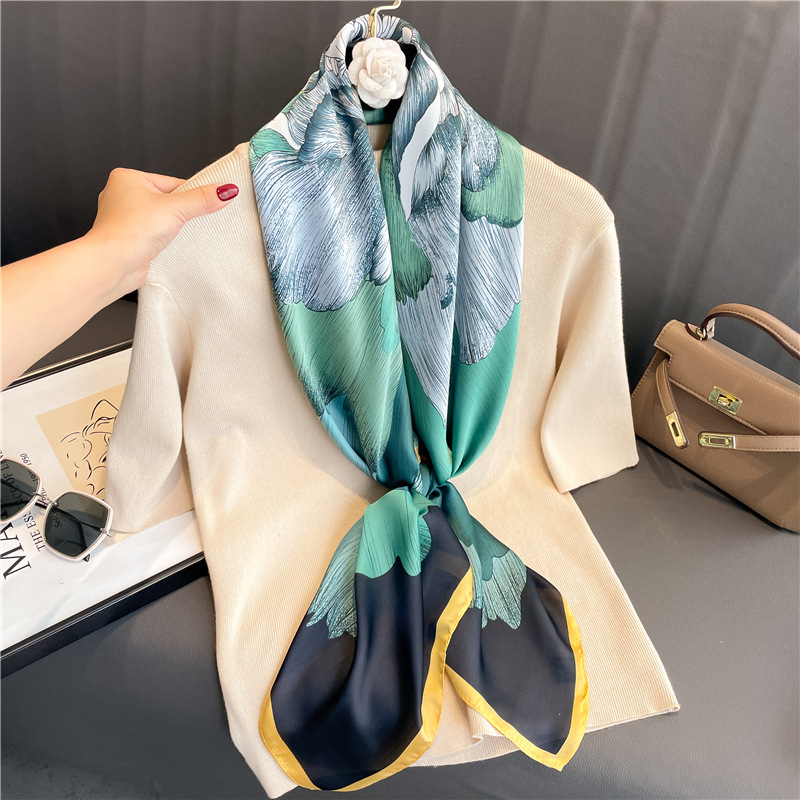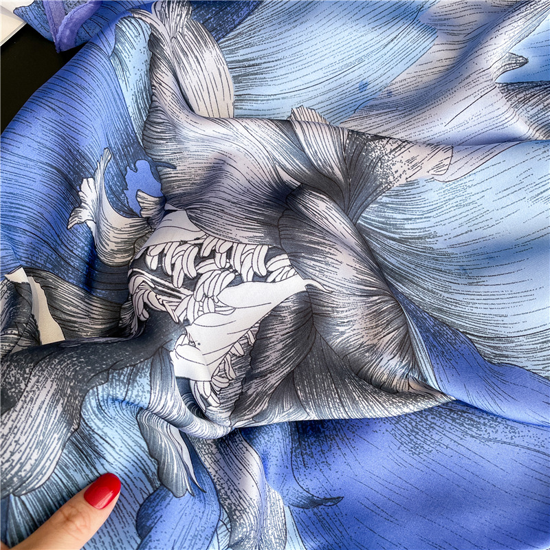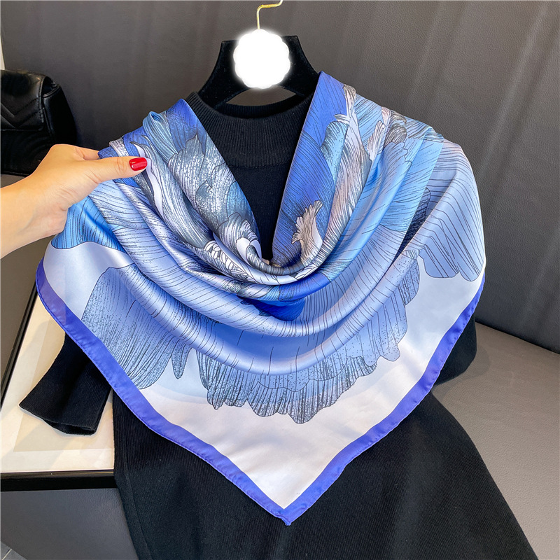 110cm 시뮬레이션 실크 스카프 우아한 로맨틱 실크 스카프 플라워 레이크 블루 밝은 숄 스카프 이중 사용 스퀘어 스카프스토어 가기