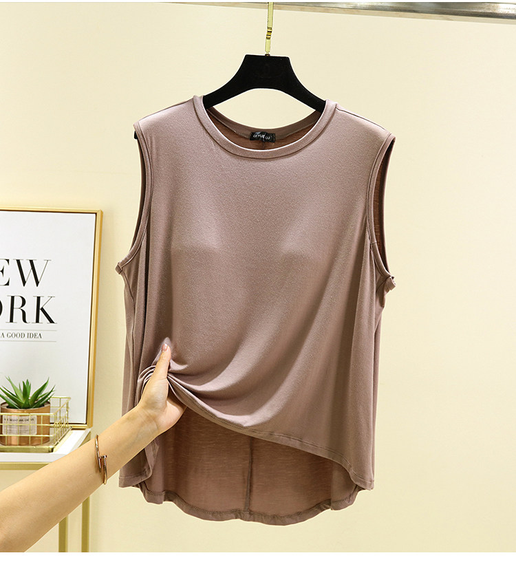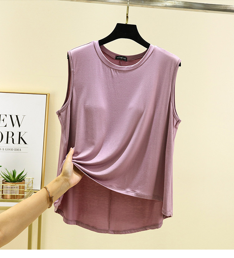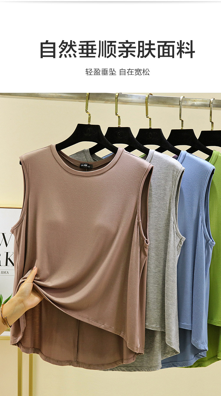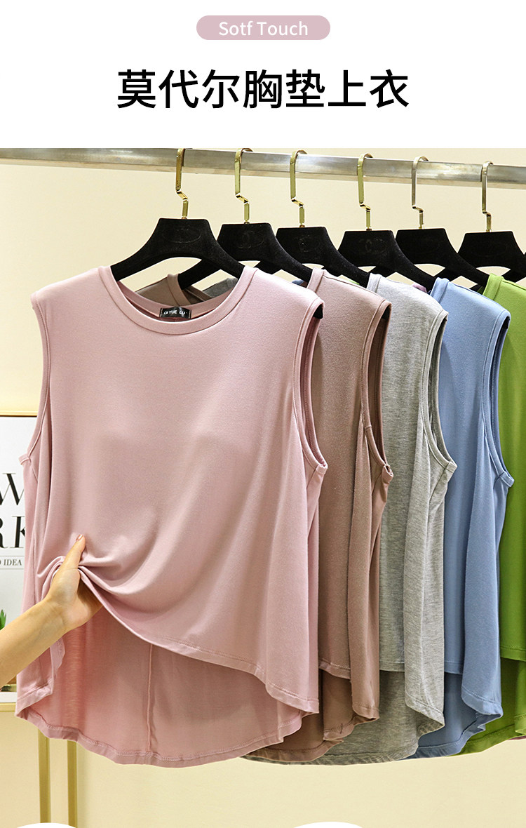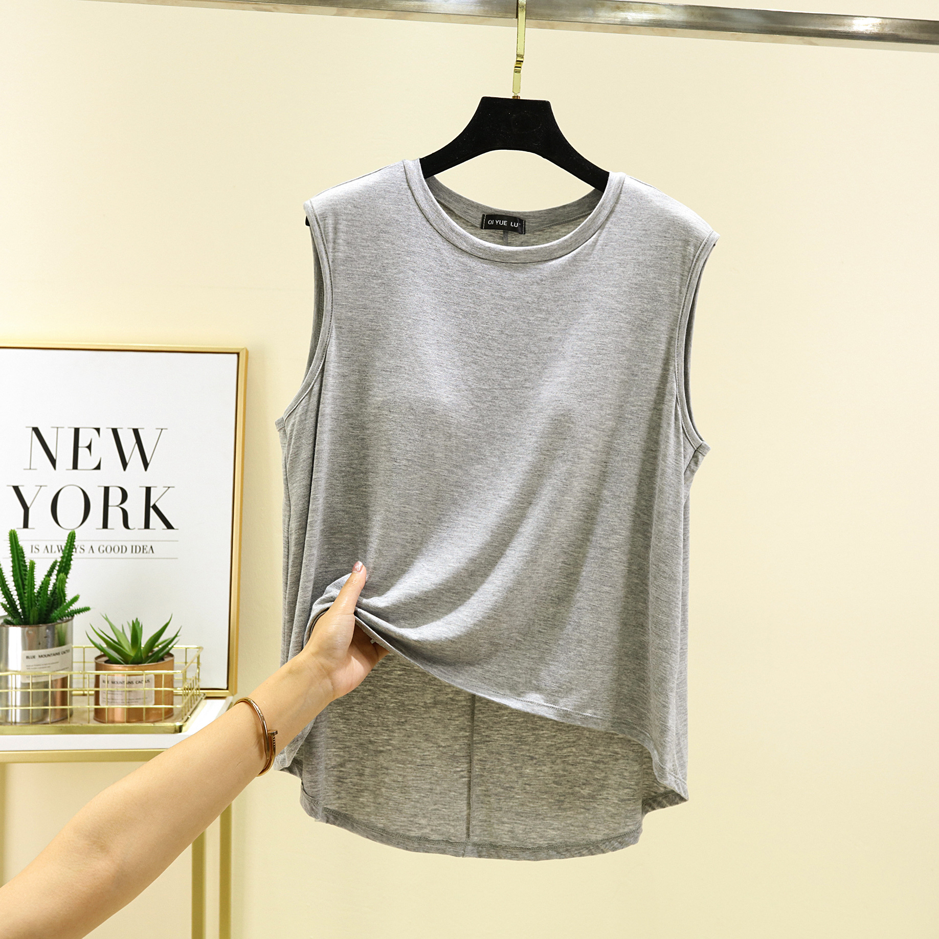 가슴 패드가있는 모달 조끼 여성용 여름 얇은 홈 슬링 탑 캐주얼 루즈한 아우터 착용 민소매 티셔츠스토어 가기