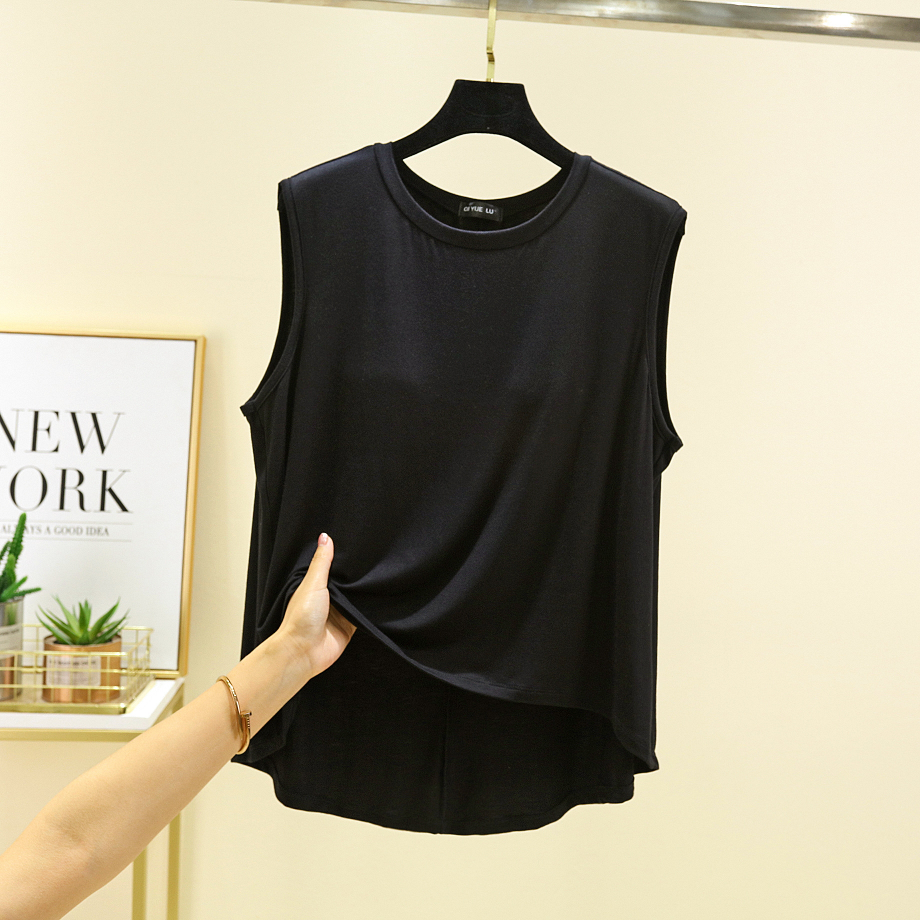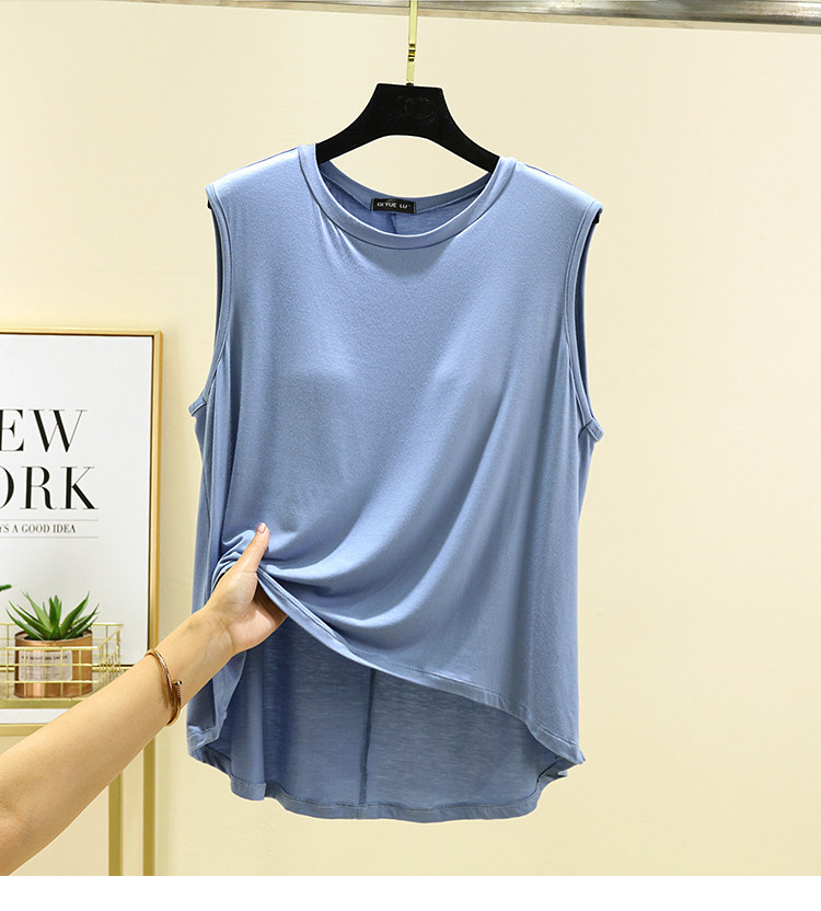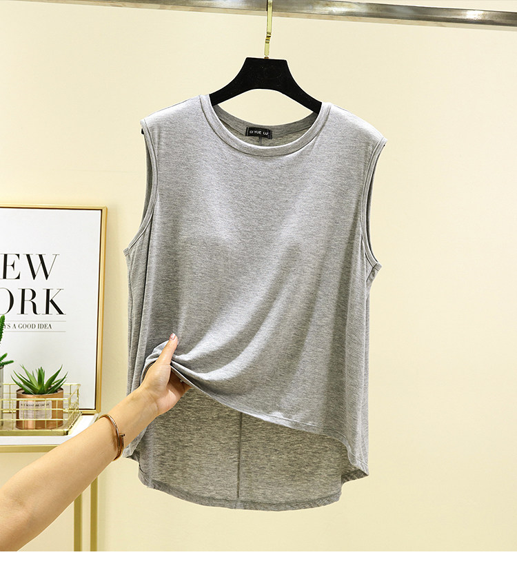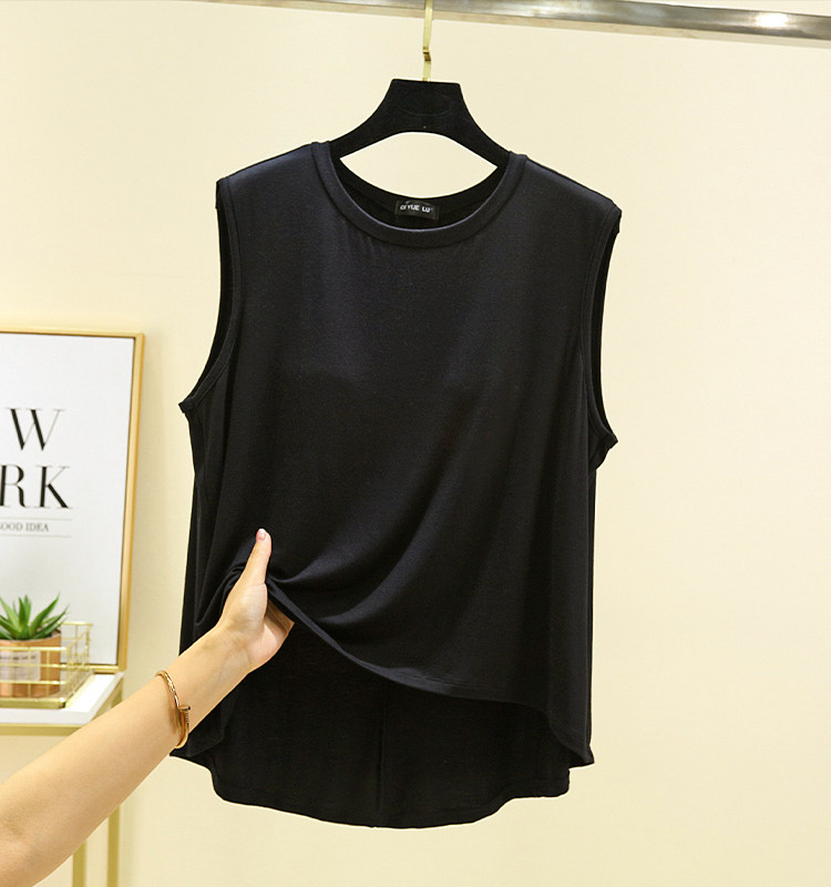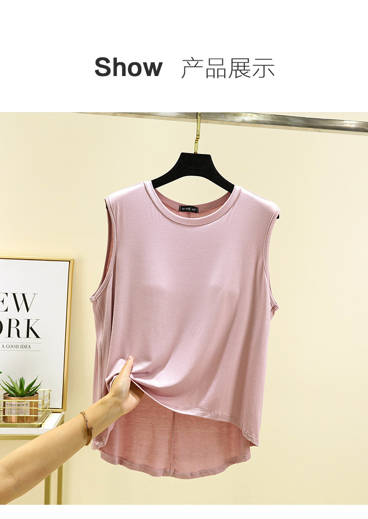 가슴 패드가있는 모달 조끼 여성용 여름 얇은 홈 슬링 탑 캐주얼 루즈한 아우터 착용 민소매 티셔츠스토어 가기