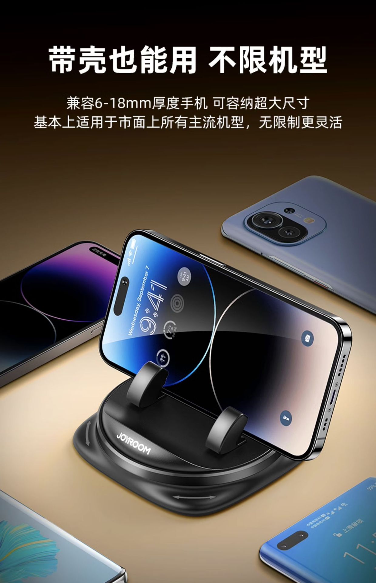 3.创新型弹簧结构自动卡位,兼容所有手机带壳同时牢牢抓住手机