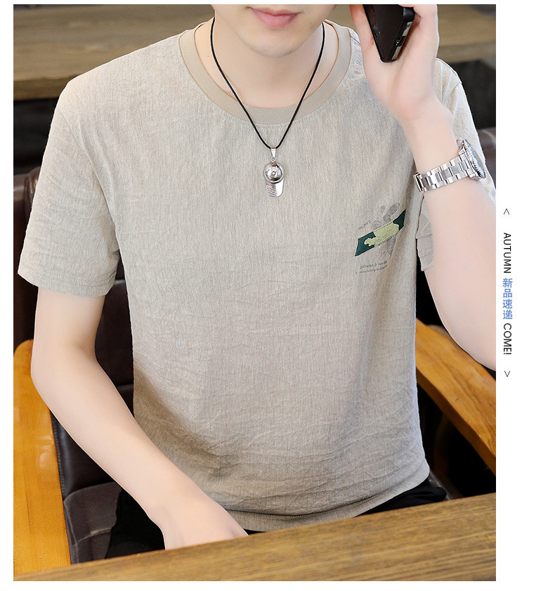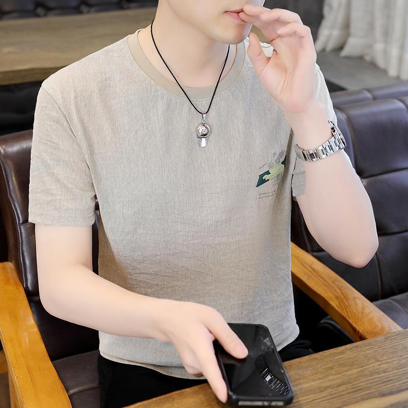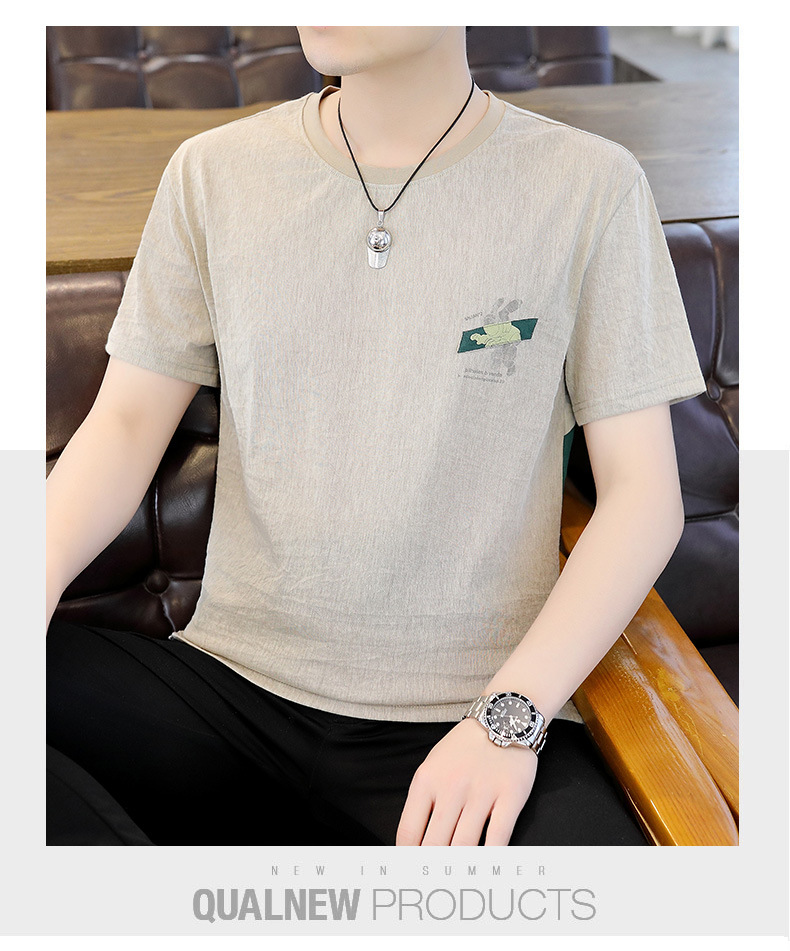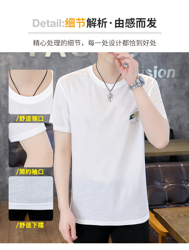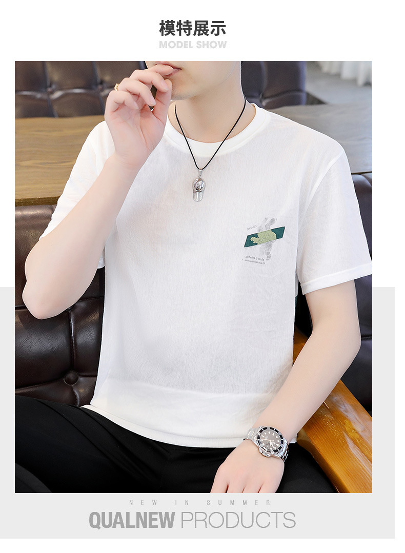 면과 린넨 반팔 티셔츠 남성용 여름 얇은 트렌디 라운드 넥 아이스 실크 트렌디 브랜드 반팔 셔츠 남성용 2023 새로운 블라스트 티셔츠스토어 가기
