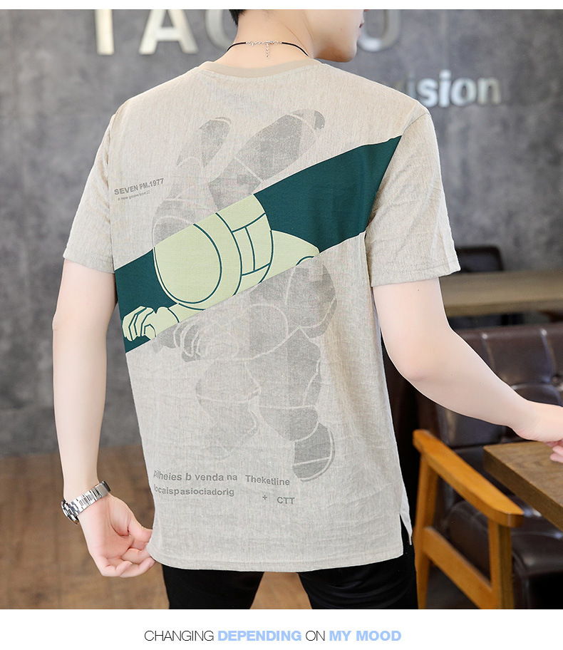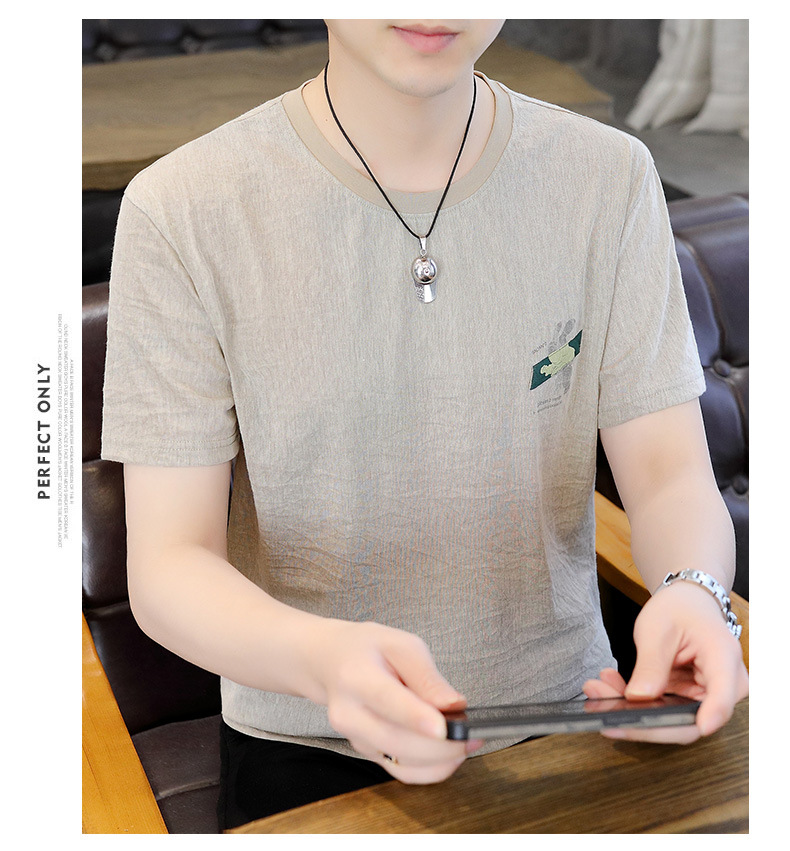 면과 린넨 반팔 티셔츠 남성용 여름 얇은 트렌디 라운드 넥 아이스 실크 트렌디 브랜드 반팔 셔츠 남성용 2023 새로운 블라스트 티셔츠