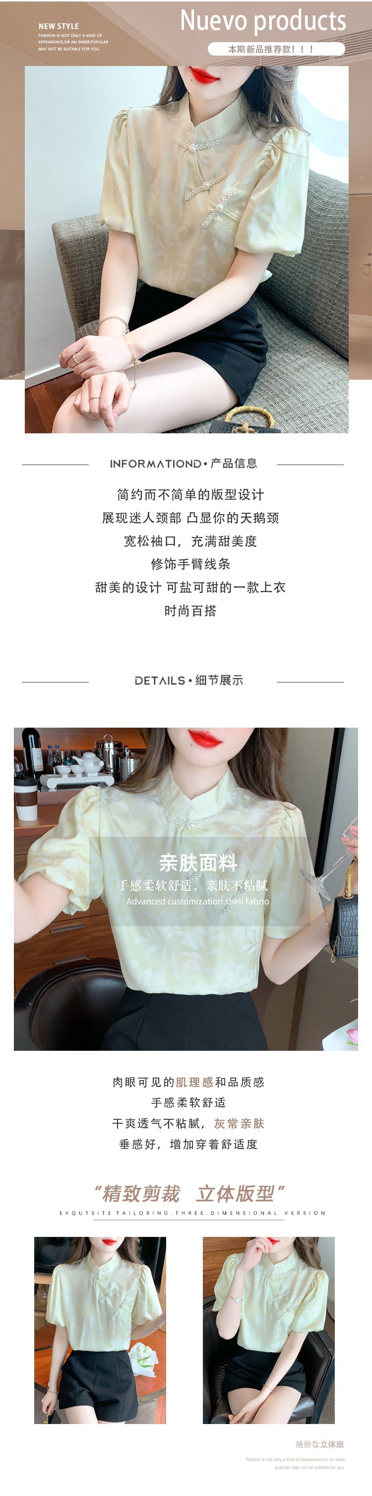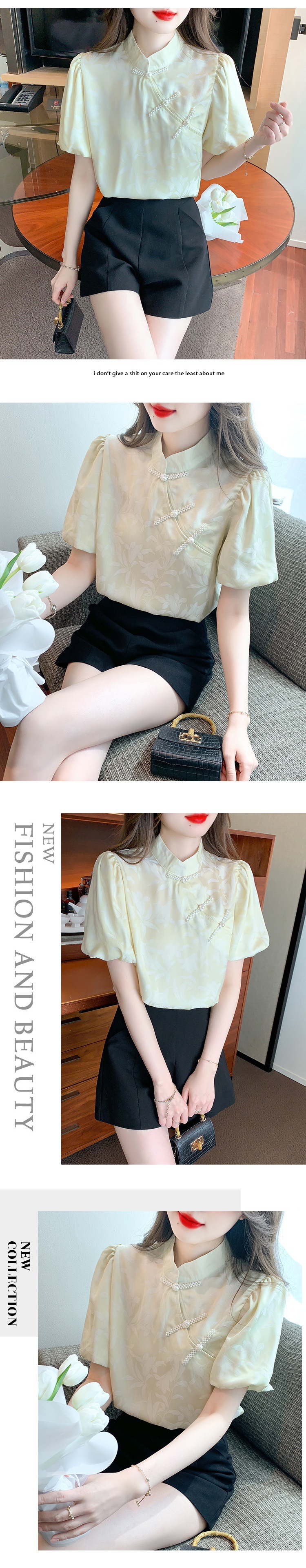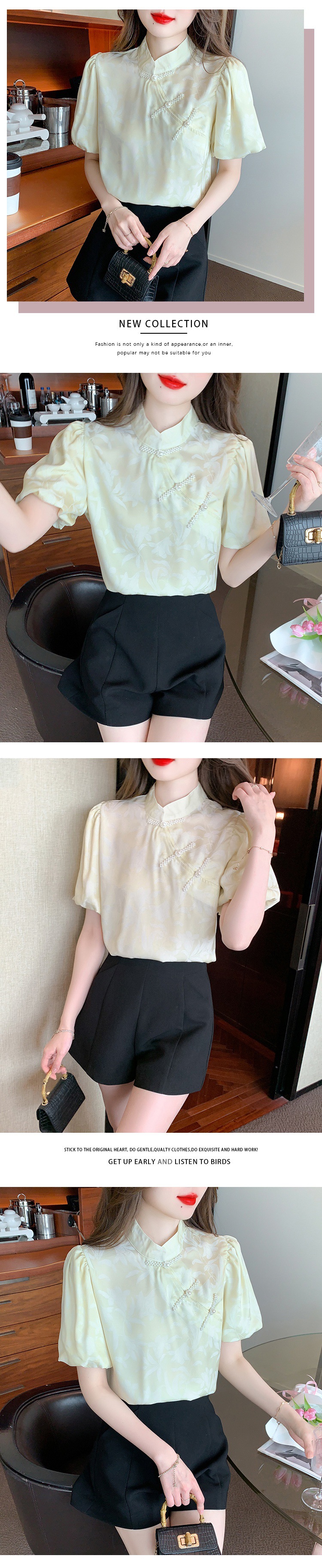 진짜 샷! 2023 여름 새로운 국가 스타일 단색 랜턴 소매 짧은 소매 달콤한 레이스 셔츠/쉬폰 셔츠스토어 가기
