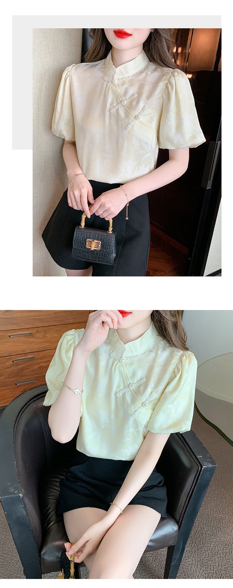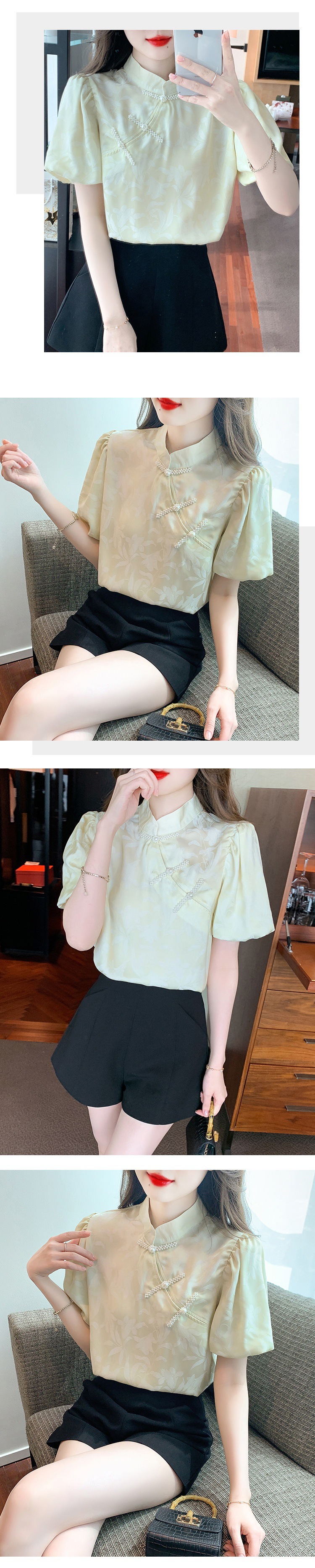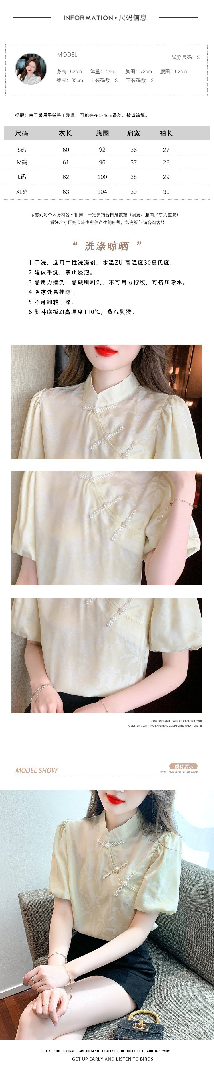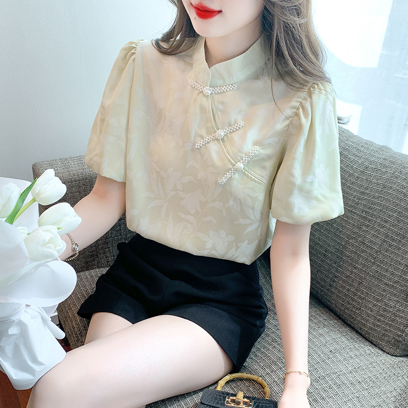 진짜 샷! 2023 여름 새로운 국가 스타일 단색 랜턴 소매 짧은 소매 달콤한 레이스 셔츠/쉬폰 셔츠스토어 가기