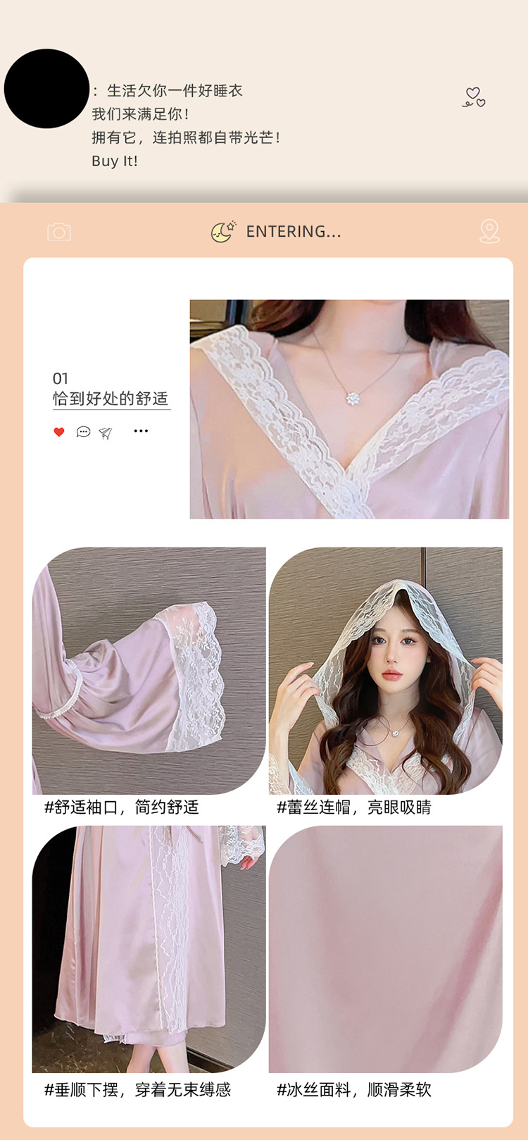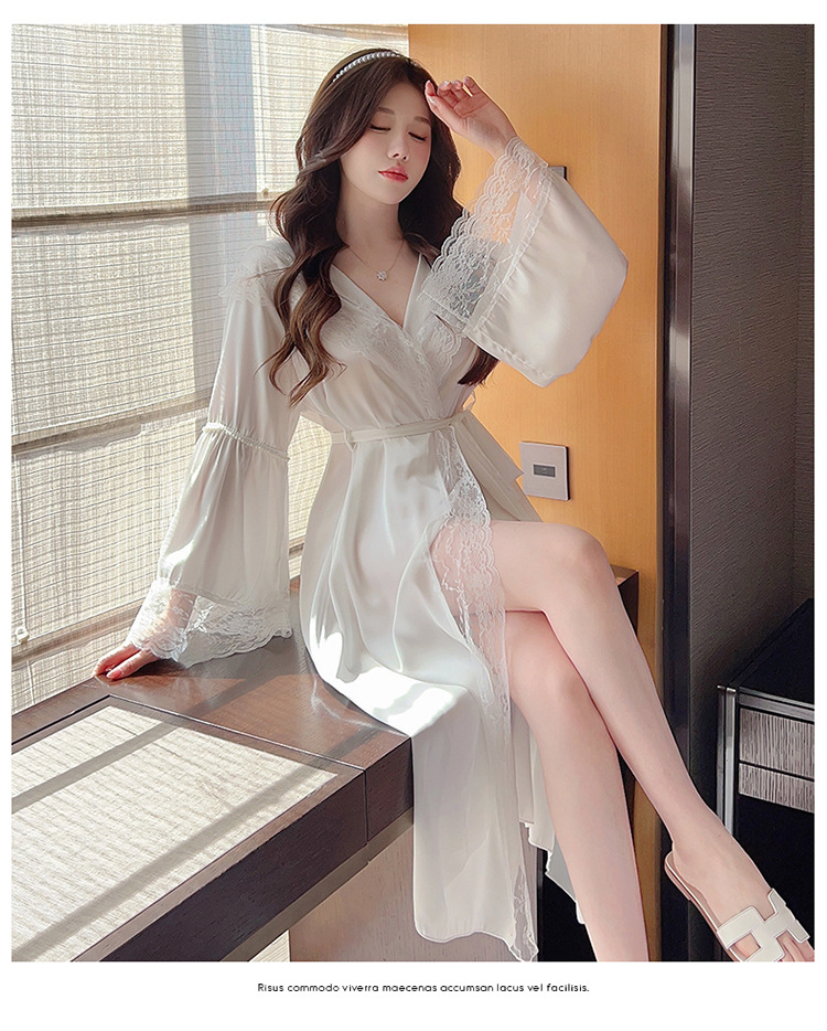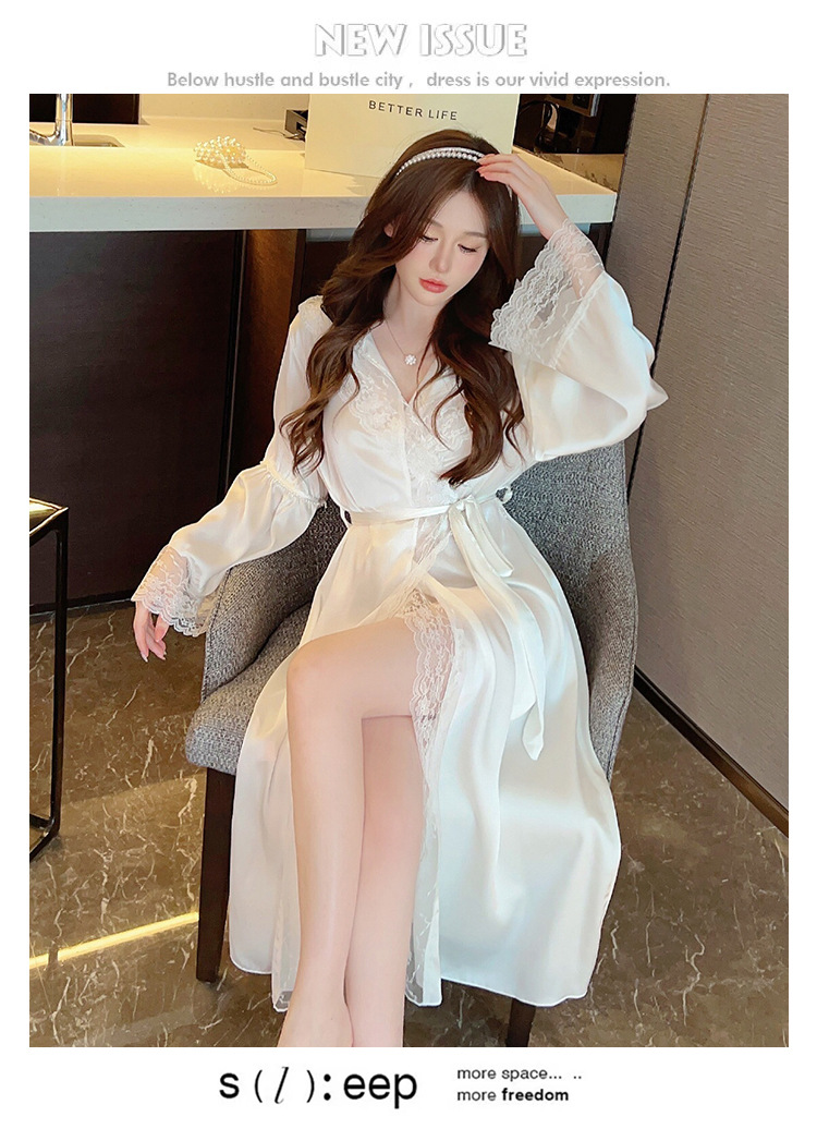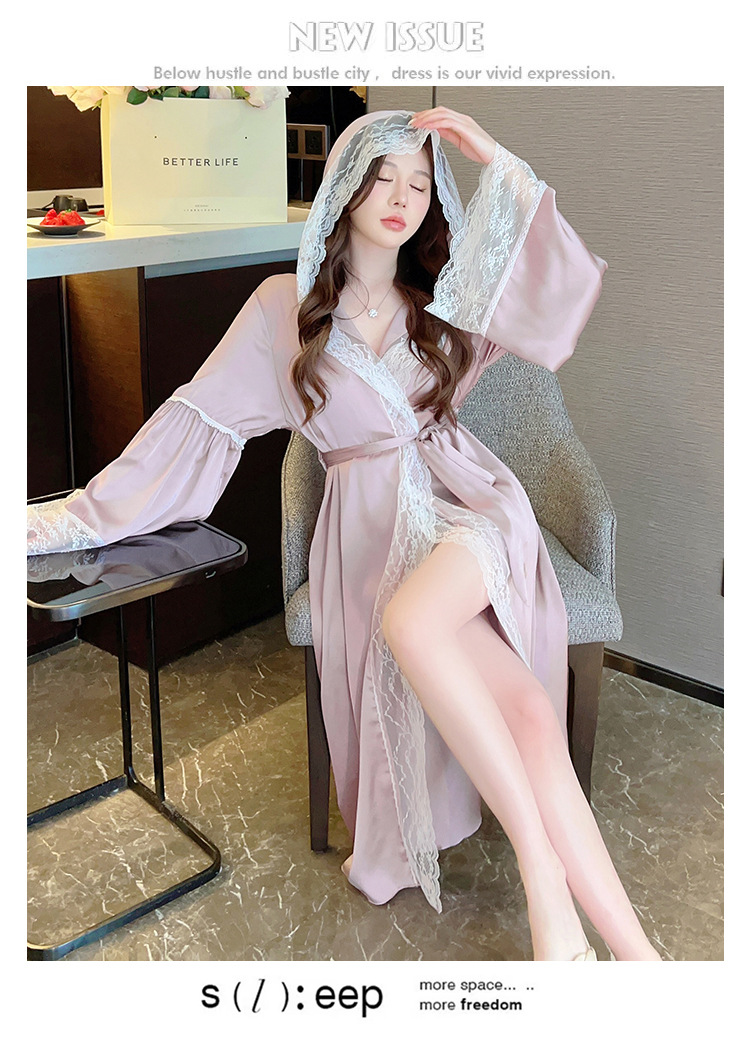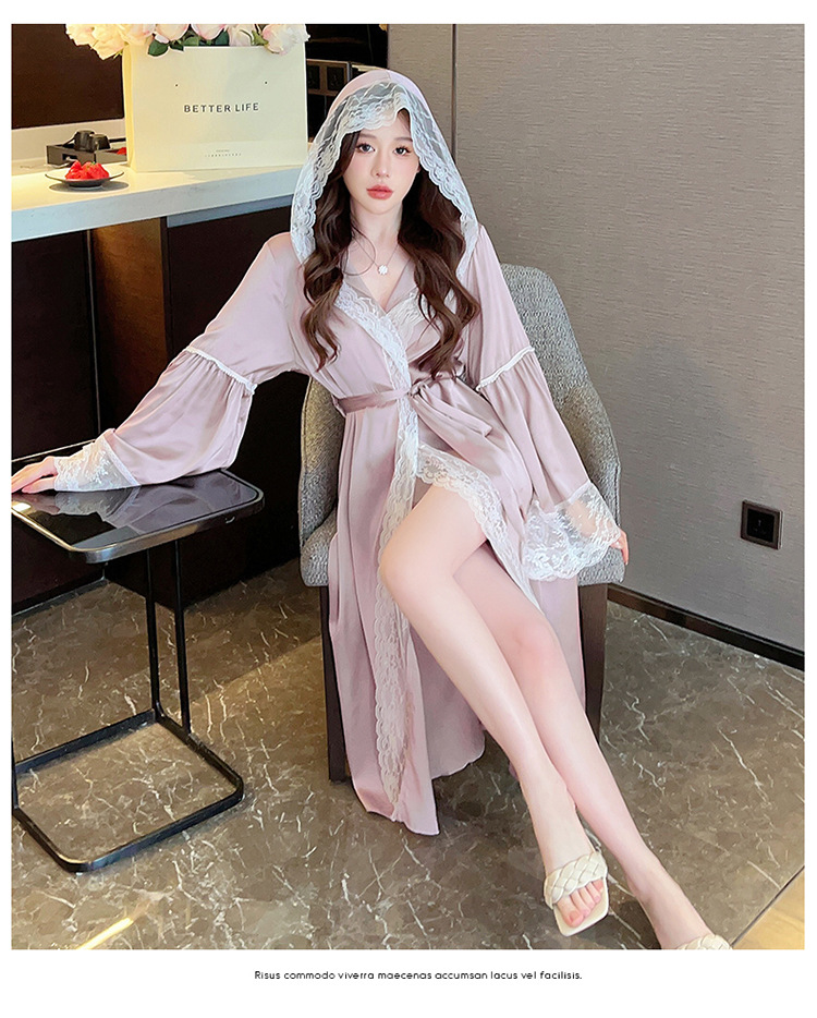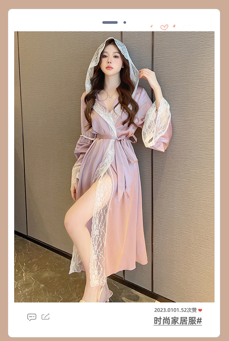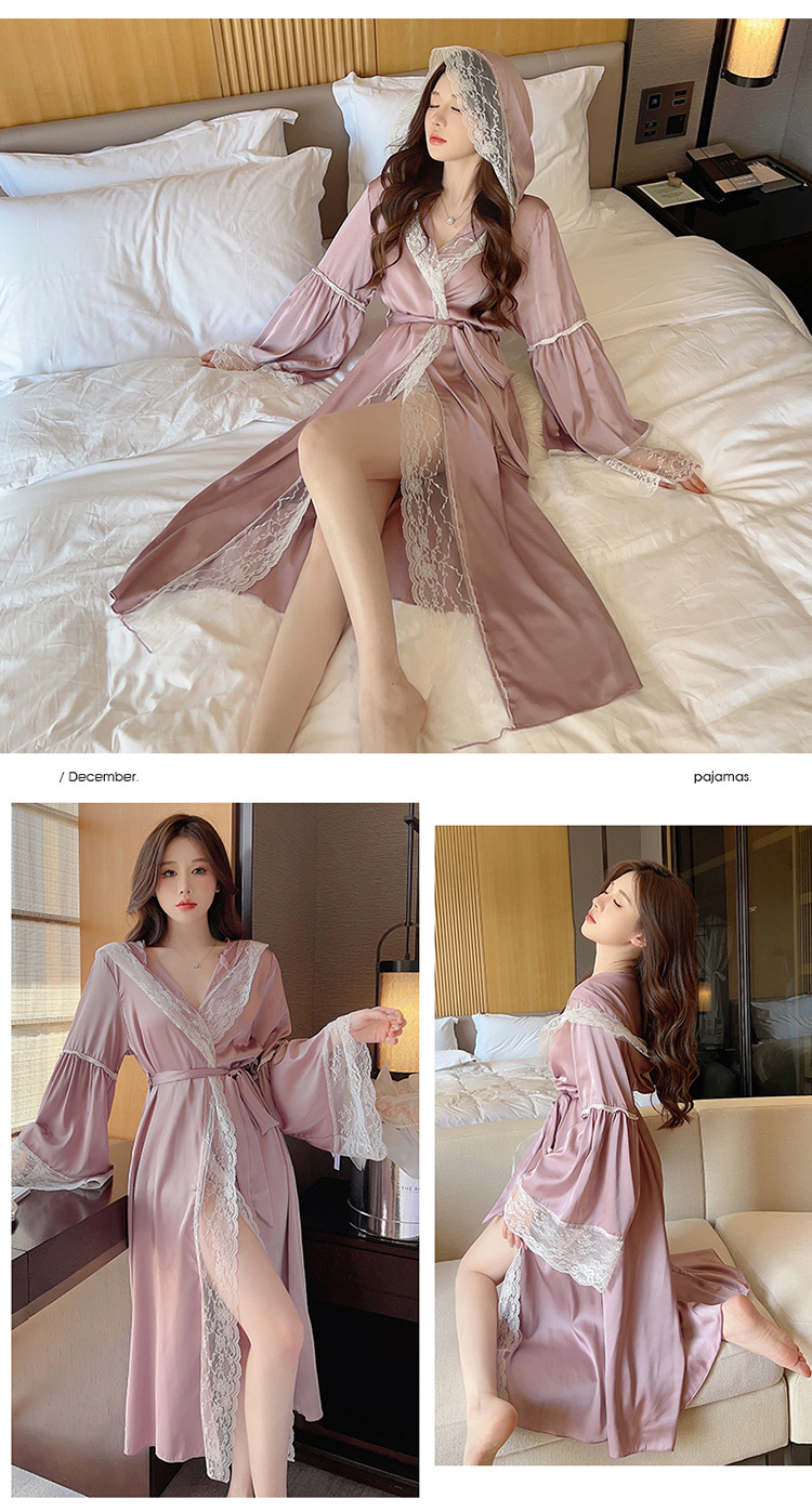 2024 여성의 섹시한 여왕 스타일 잠옷 흰색 여름 새로운 얼음 실크 후드 잠옷 스트랩 여성 홈스토어 가기