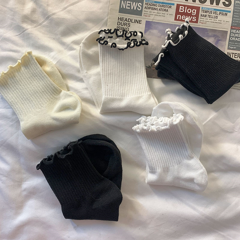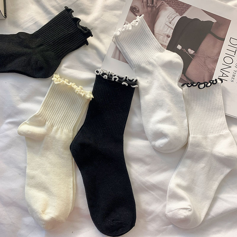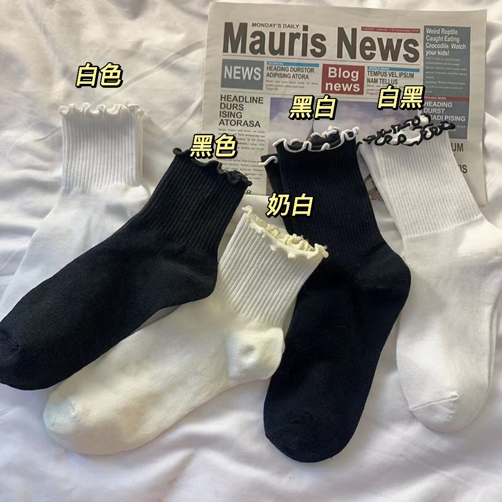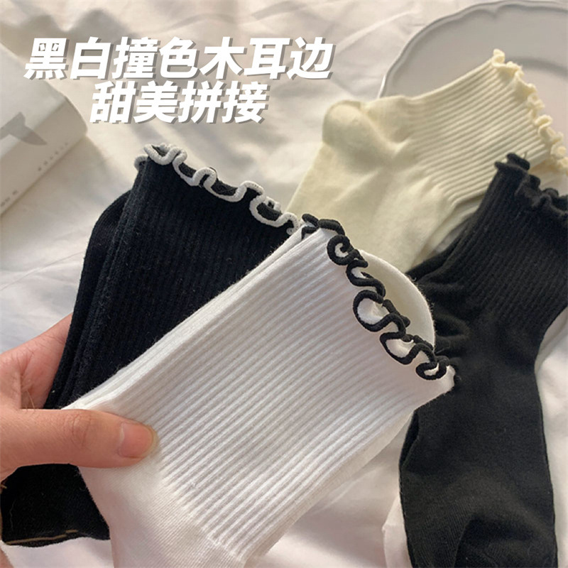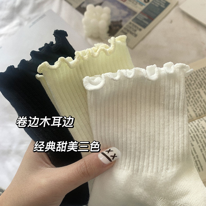 화이트 jk 귀 양말 여자의 봄 여름 가을 일본 스타일 귀여운 소녀 레이스 중간 길이 양말 간단한 로리타 양말