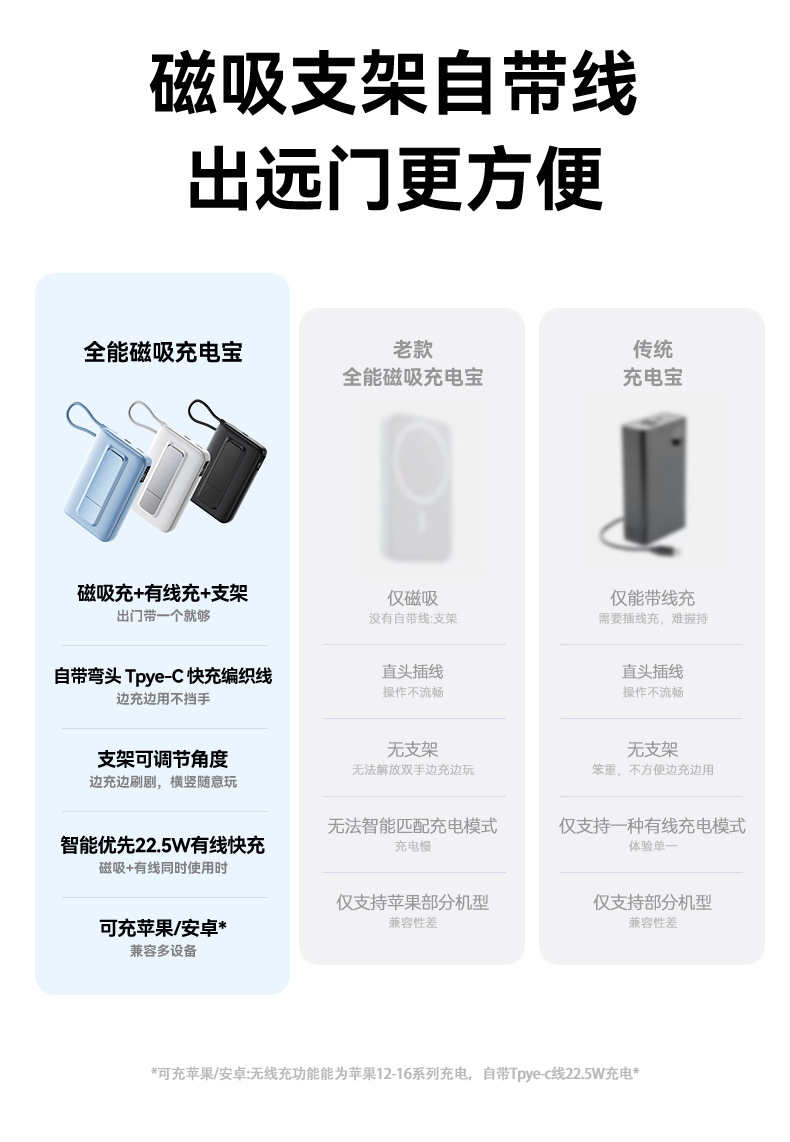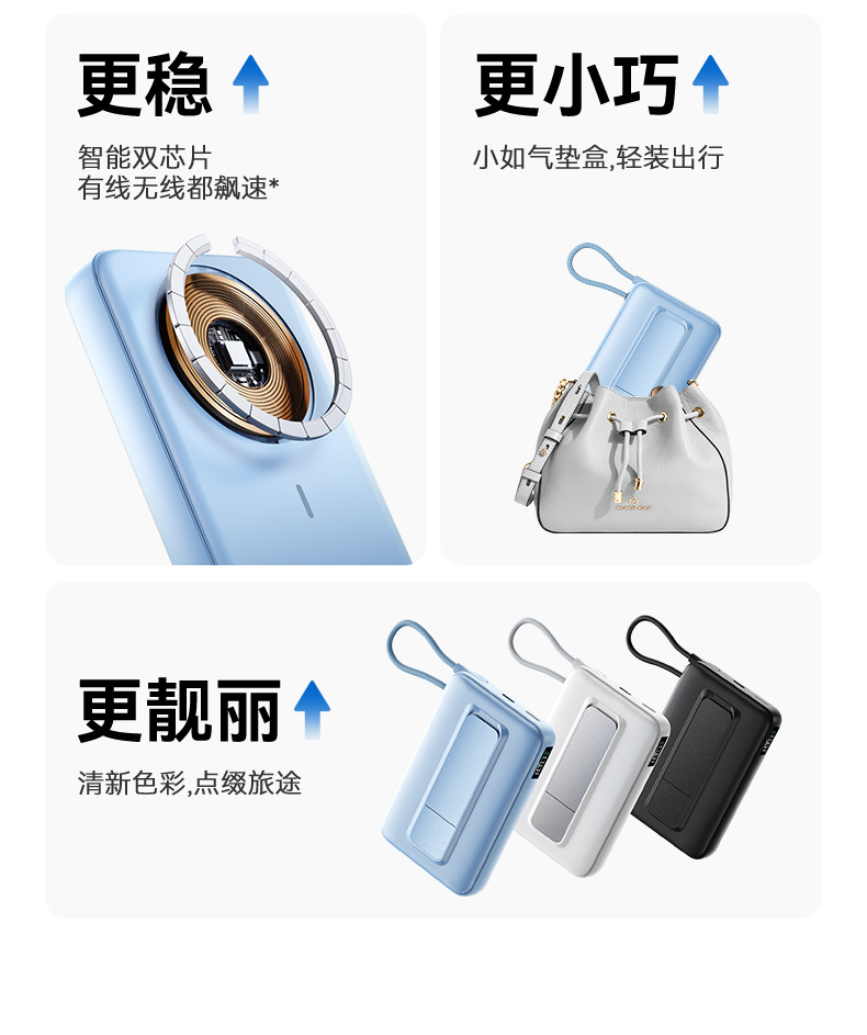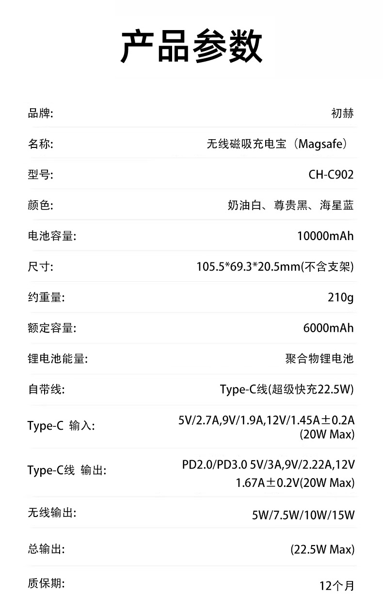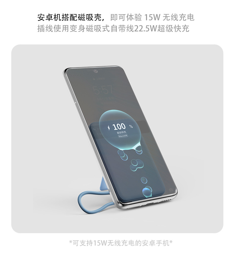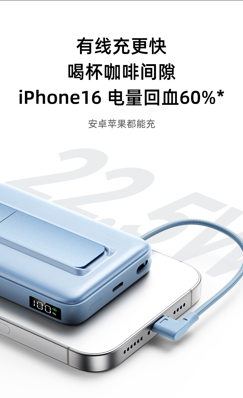 4. 双口设计,双向充电Type-C是22.5W/Type-C线是22.5W;