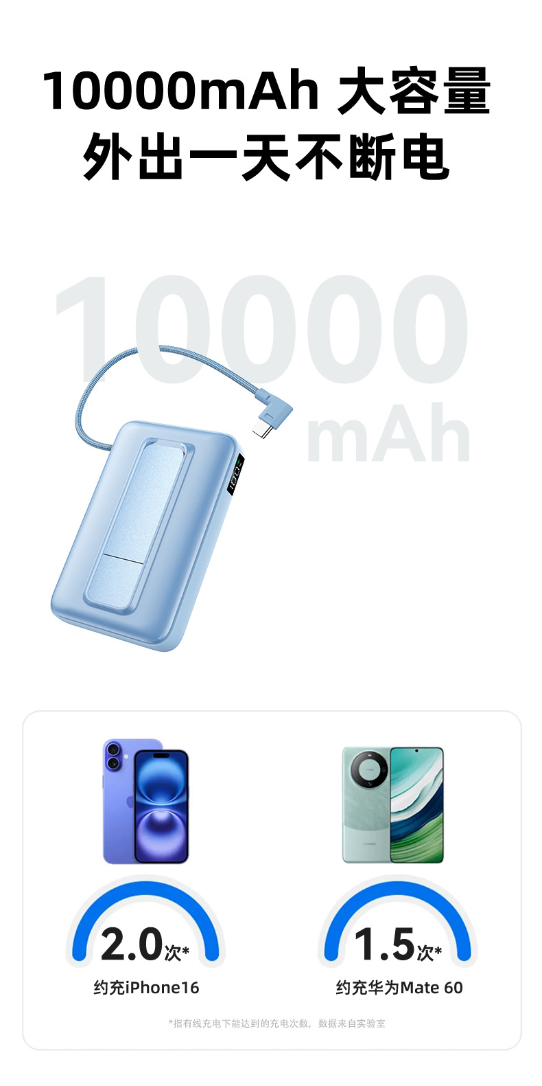 7. 10000mAh容量,支持手机充电约2次;