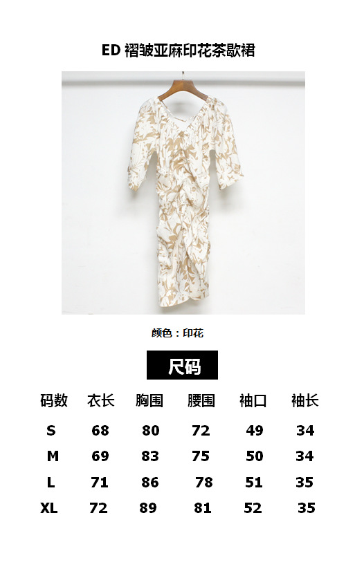 【특가】ED 플리츠 린넨 프린트 티 브레이크 드레스 프린트 린넨 원피스 슬림핏 와이드 슬리브 브이넥 원피스