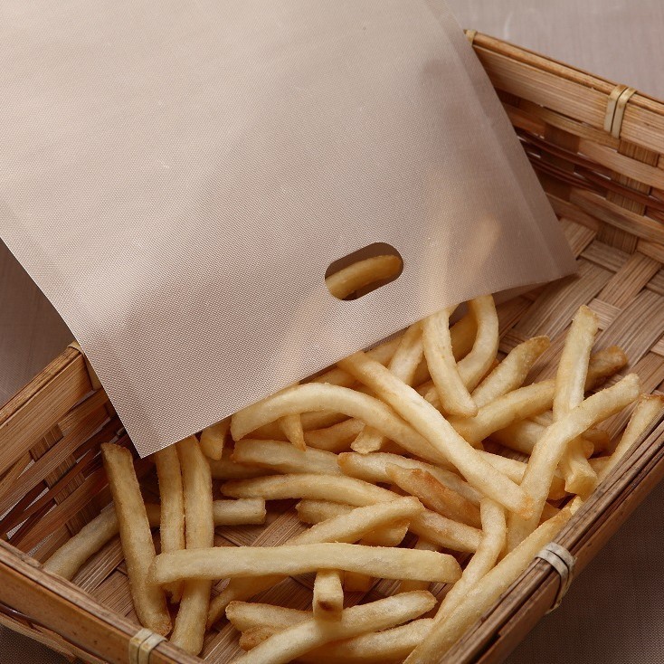 氟龙烤面包袋,是食品级铁氟龙高温布的深加工衍生产品,采用优质玻璃纤维布基材,经的工艺技术涂覆优质铁氟龙树脂,生产多种厚度、宽度和颜色的铁氟龙高温布,然后用先进的分切技术与高温热压工艺,做成各种尺寸,多种颜色的烤面包袋。