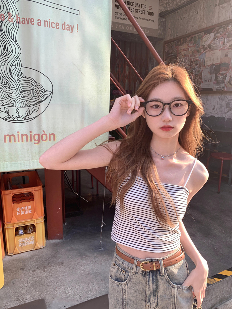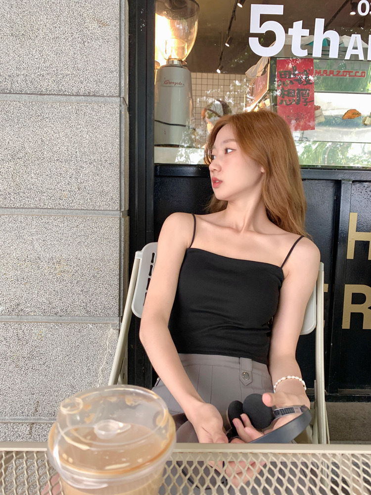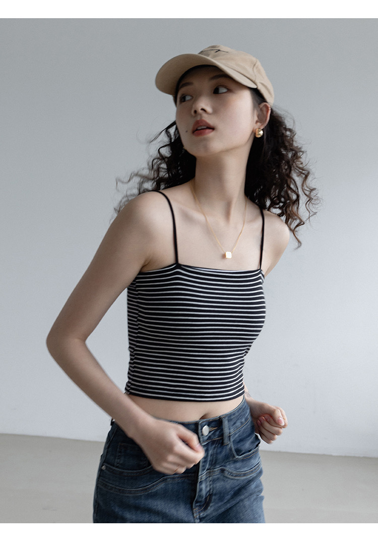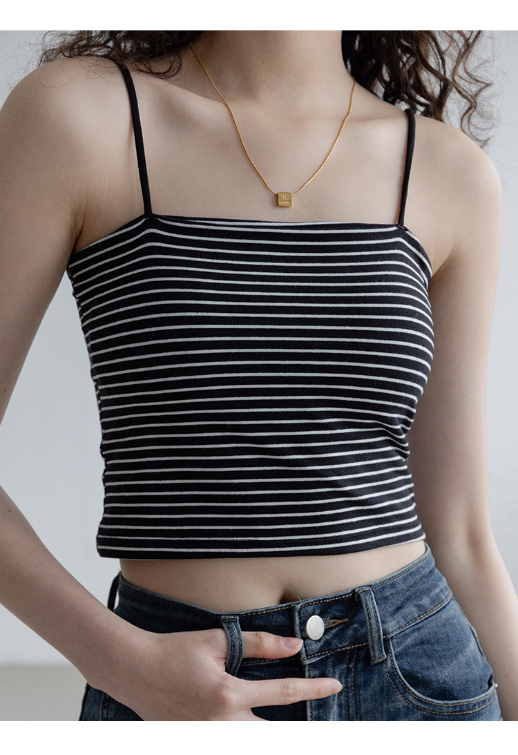 달콤한 소녀 퓨어 코튼 카미솔 여성 벨트 가슴 패드 내부 착용 외모 착용 원피스 스트라이프 슬림핏 한국식 베이스 카미솔 속옷스토어 가기
