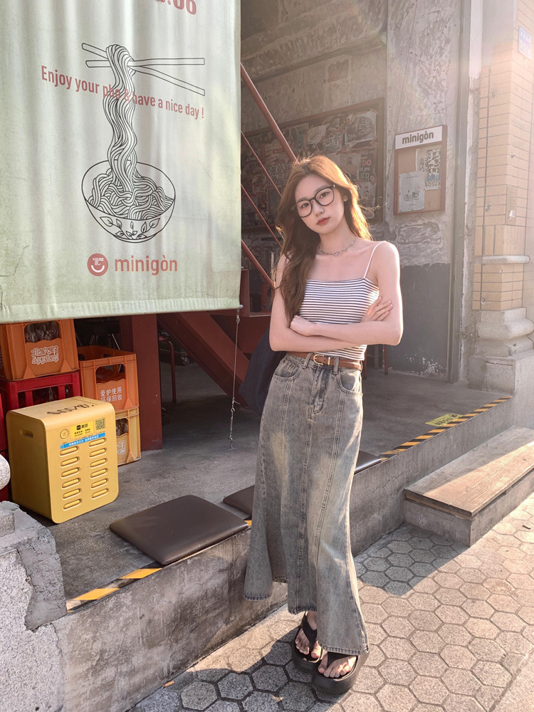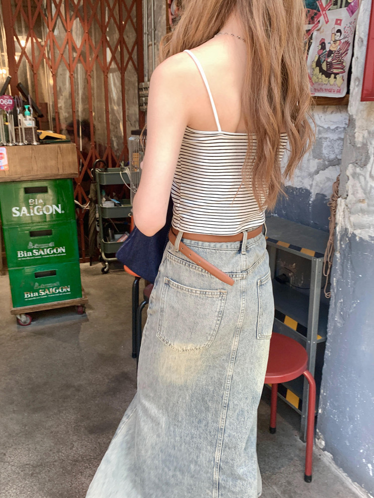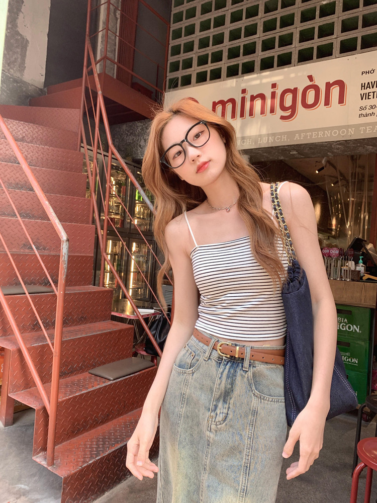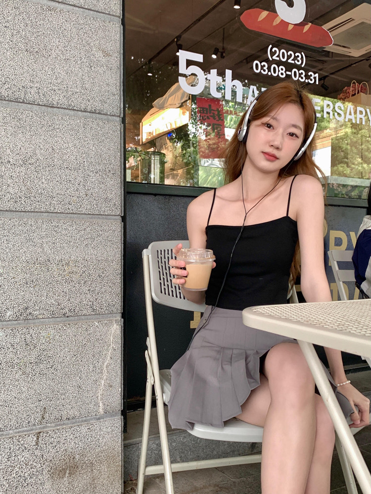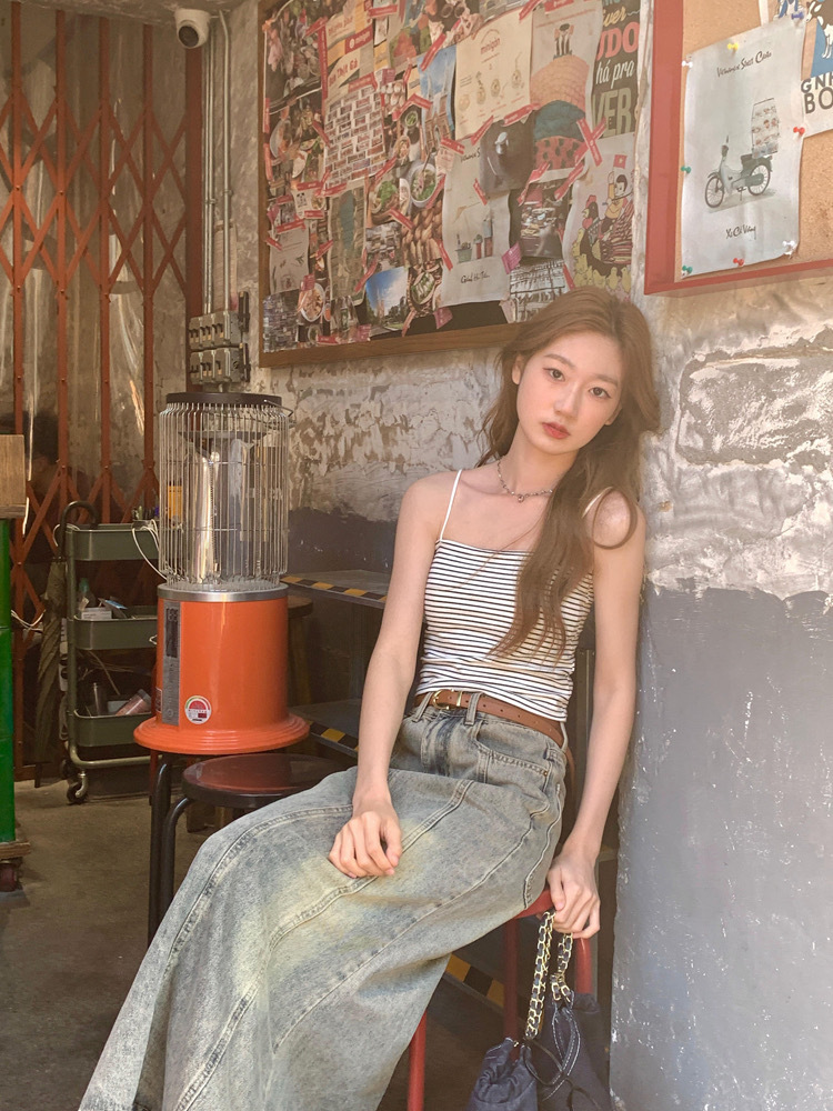 달콤한 소녀 퓨어 코튼 카미솔 여성 벨트 가슴 패드 내부 착용 외모 착용 원피스 스트라이프 슬림핏 한국식 베이스 카미솔 속옷스토어 가기