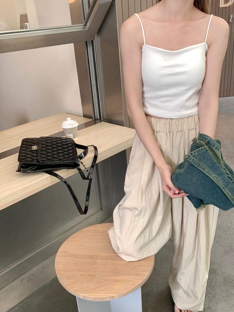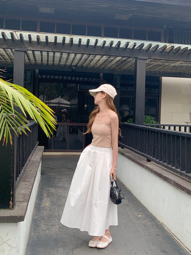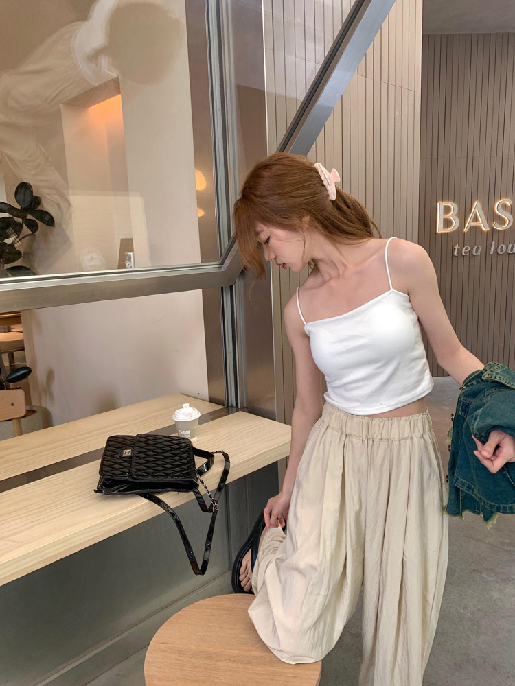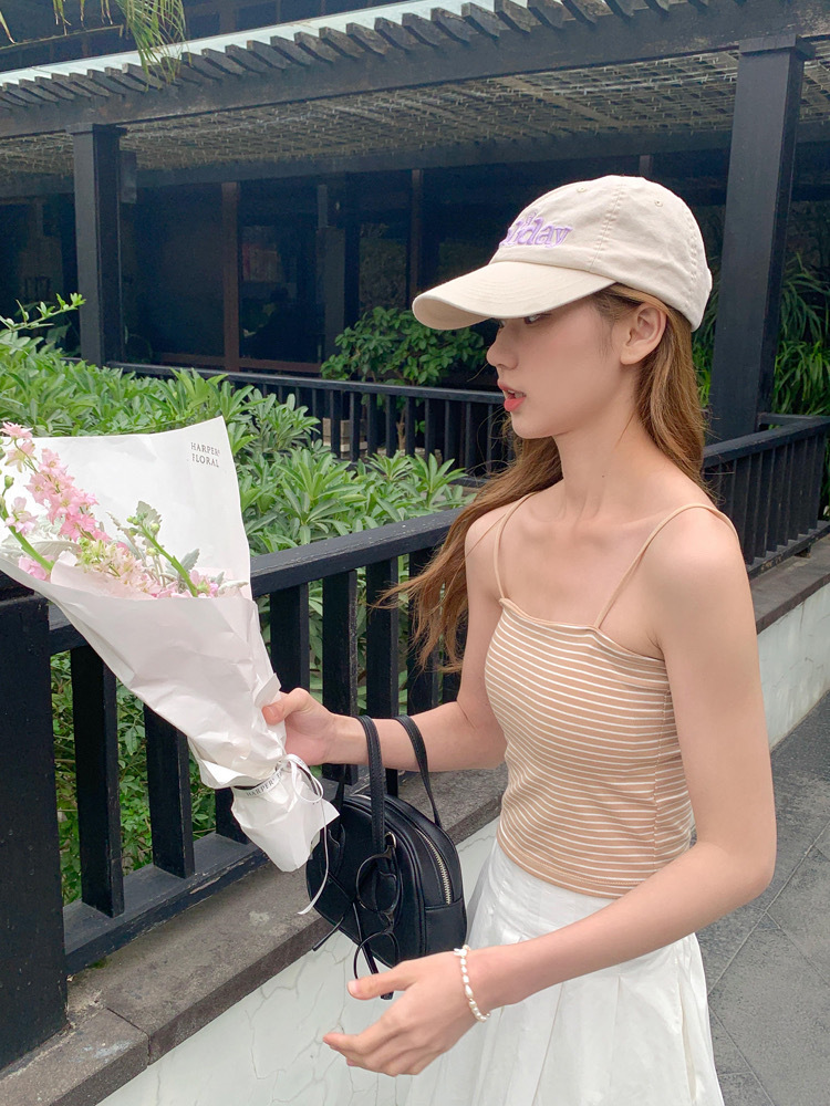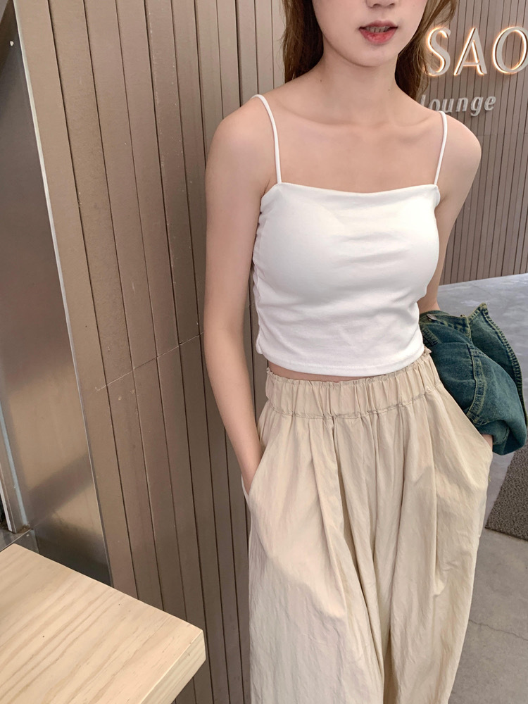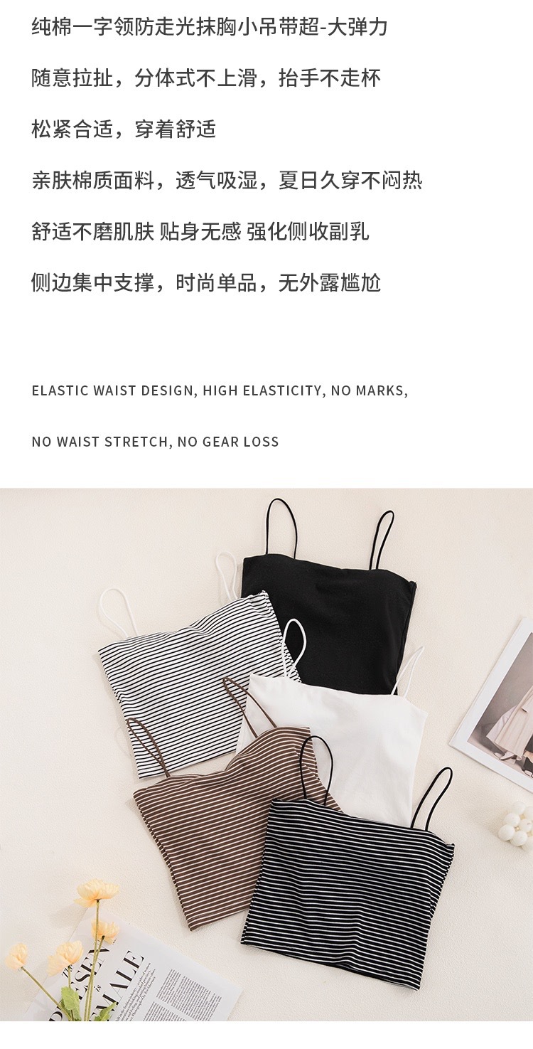 달콤한 소녀 퓨어 코튼 카미솔 여성 벨트 가슴 패드 내부 착용 외모 착용 원피스 스트라이프 슬림핏 한국식 베이스 카미솔 속옷