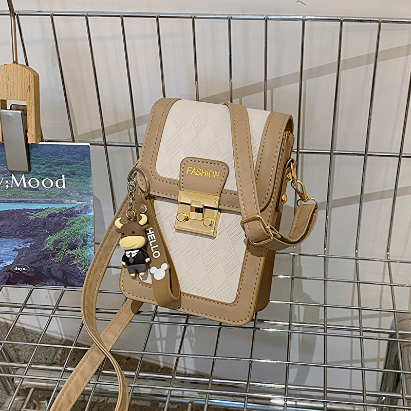 신선하고 달콤한 웨스턴 스타일 여름 신상품 여성용 싱글 숄더 휴대폰 가방 심플 스티칭 컬러 대비 크로스 바디 여성용 스몰 스퀘어 백스토어 가기