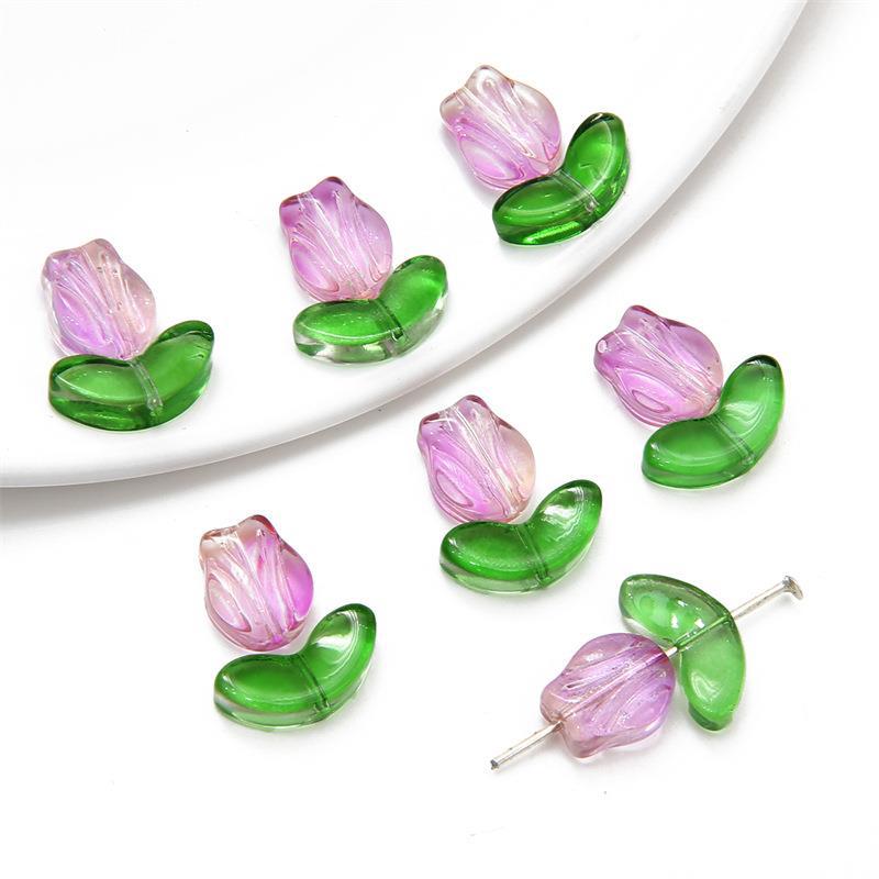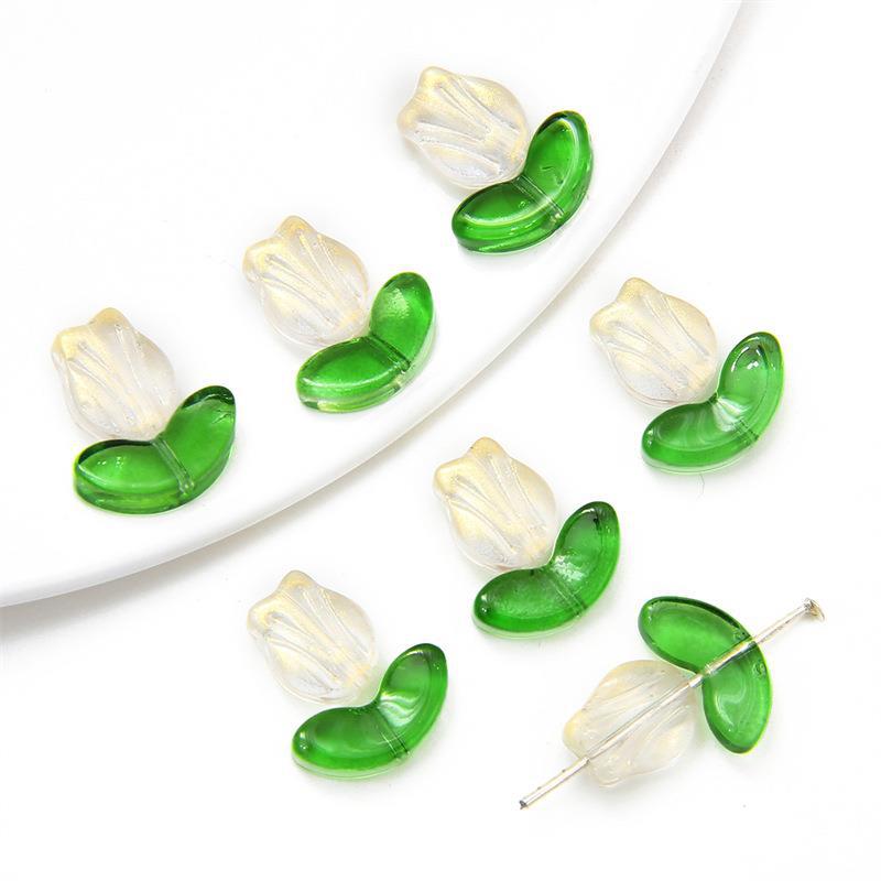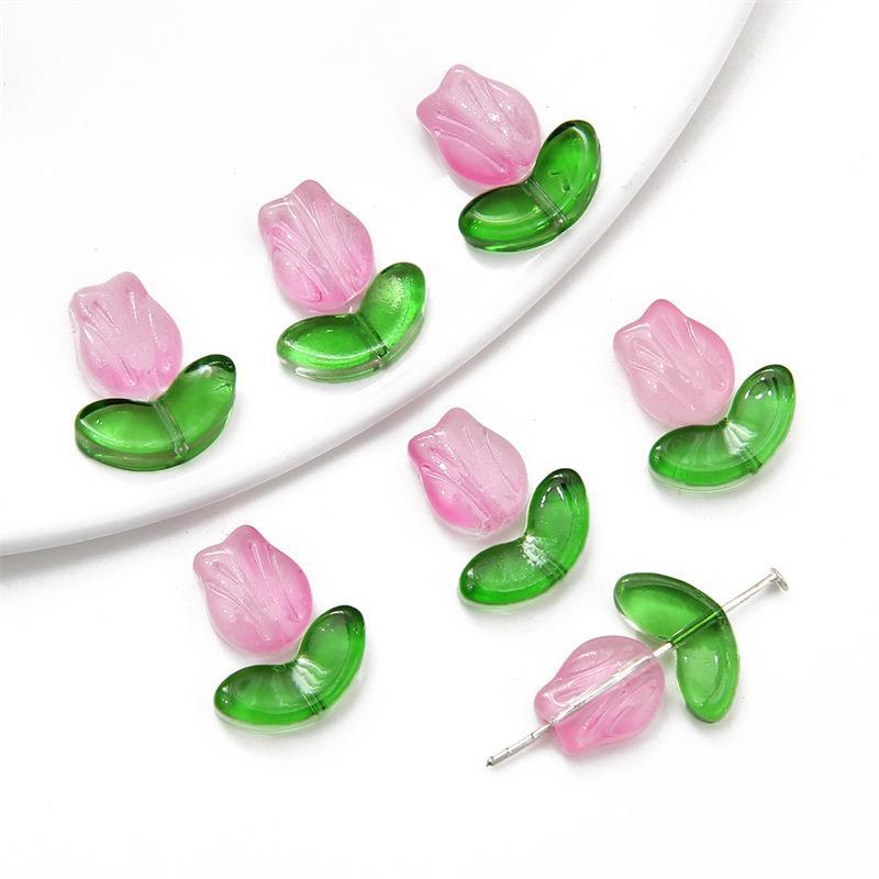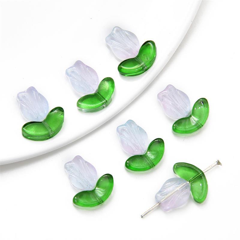크로스 보더 핫 세일 컬러 유리 튤립 꽃잎 손 구슬 재료 DIY 팔찌 귀걸이 보석 액세서리 도매스토어 가기